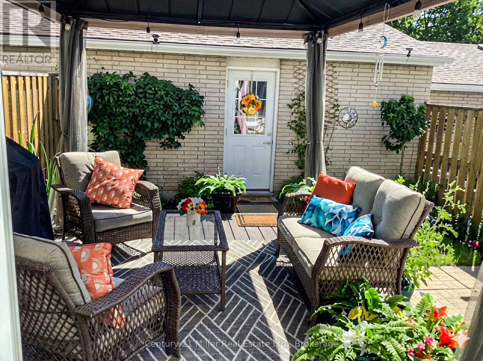 Welcome to Forest Heights - a rarely offered townhome with a private double-car garage, quietly tucked into a serene enclave of architecturally distinctive homes in Burlington's sought-after Brant Hills neighbourhood. Ideal for first-time buyers or empty nesters, this home delivers the perfect balance of low-maintenance living and everyday comfort. Step inside to a sun-filled kitchen featuring gleaming counters, a stainless-steel induction stove (2023) and new stainless-steel dishwasher (2025) - a welcoming space for both daily living and entertaining. The adjacent living room invites cozy evenings by the fireplace, complemented by a stylish custom mantel installed in 2024. The dining room offers a seamless walk-out to a newer composite deck complete with gazebo, lighting, and gas BBQ hookup - perfect for relaxed summer dinners and weekend gatherings. Surrounded by garden space, the fully fenced backyard is ideal for gardeners and outdoor enthusiasts alike and provides direct access to your private double garage. Upstairs, you'll find three generously sized bedrooms and two full bathrooms, including a spacious primary retreat with a recently updated ensuite featuring a new vanity and quartz countertops. The lower level adds even more versatility with a large recreation room, and a thoughtfully designed laundry area and a built-in folding table, plus a sizeable finished storage room. Enjoy resort-style living with access to the indoor pool, or host celebrations in the recently updated party room (2023). This is a home that truly offers comfort, convenience, and community - an exceptional opportunity in one of Burlington's most established neighbourhoods. Condo fees include: windows, doors and roof are included in exterior maintenance, water, cable ,common elements, building insurance, parking, snow removal, lawn maintenance. (id:64974)
