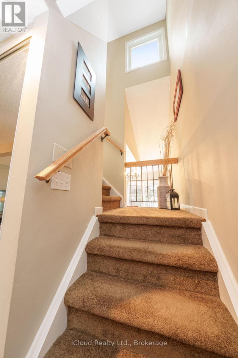 Whether you're downsizing or starting a young family, this home offers warmth, comfort, and a welcoming atmosphere in a highly desirable, family-friendly community. Its contemporary architecture was ahead of its time when built in 1979, blending timeless design with functional living for all generations. Abundant natural light fills the main living spaces, highlighted by a feature window on the second floor above the staircase. As you reach the upper landing, the open view to the eat-in kitchen and partially vaulted ceiling creates an airy, spacious feel. The cozy family room features plush broadloom, double-aspect windows, and a wood-burning fireplace-ideal for relaxing evenings or hosting gatherings. There's also space for a small dining area, conveniently located next to the kitchen. The kitchen offers updated cabinetry, task-focused valance lighting, and a bright eat-in area with direct access to the private, fenced backyard. With no direct neighbours behind, the yard provides a peaceful and practical outdoor retreat. The main-floor powder room adds a playful touch with a beach-inspired décor, while the second-floor main bath includes a soothing jet tub for relaxing at the end of the day. Each bedroom is comfortably sized, offering warm broadloom and generous windows that welcome plenty of natural light. The basement includes a separate utility room with laundry, storage shelving, a newer sump pump and electrical panel. The remaining space is an open canvas-ready to be transformed into a recreation area, home office, or media room. (id:64974)