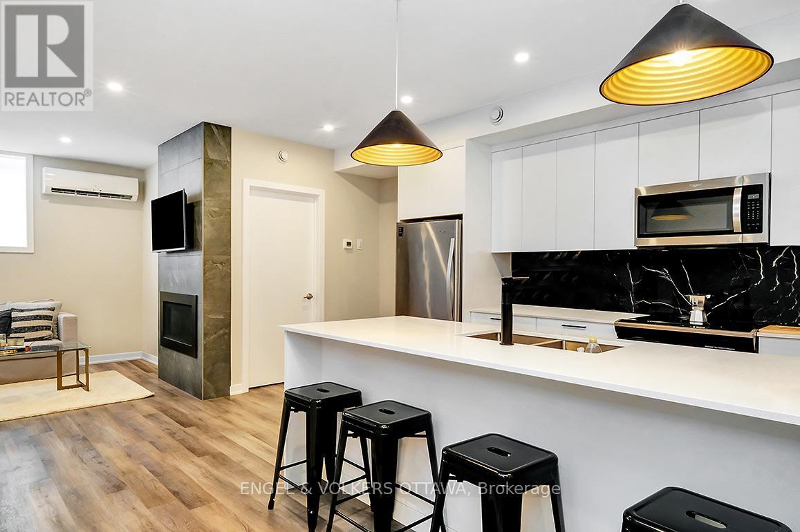Bright and spacious 1 bed 1 bath lower level apartment located in the hub of Westboro. Open concept living/dining/kitchen with gas fireplace, stainless steel appliances, and quartz counter tops. 3pc bathroom with glass shower. Spacious primary bedroom. In-unit washer and dryer with storage space. Each unit has their own entrance and heat pump for heating and cooling. Steps to shops, restaurants, Superstore, LCBO, farmers market, LRT, Ottawa River Parkway and everything Westboro has to offer. (id:64974)