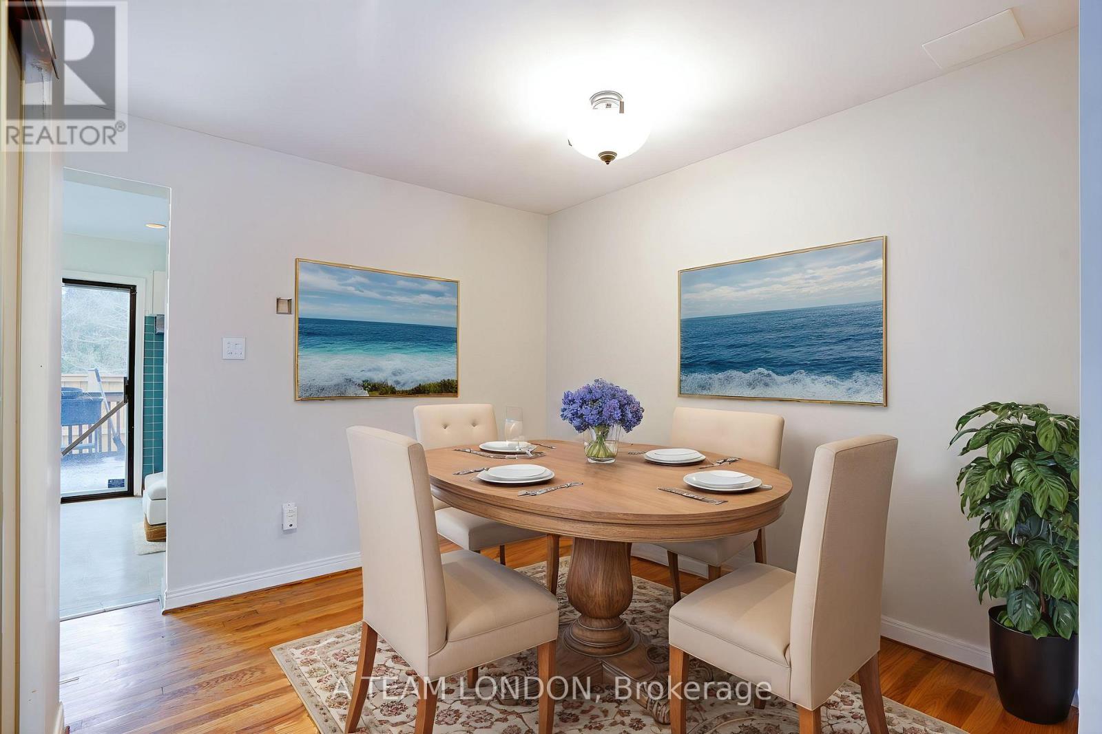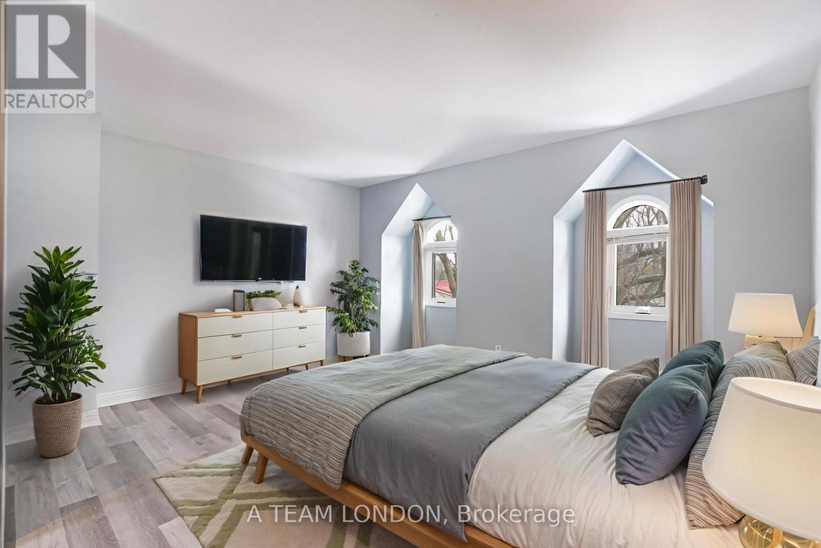 Freehold downtown townhouse in sought-after Woodfield District, in Downtown London and minutes from Western University. This versatile property offers a spacious 3-bedroom, 2-bathroom main unit plus a separate 1-bedroom, 1-bathroom lower suite, ideal for multi-generational living or added rental income (easily converted back to a single-family layout). The lower tenant provides helpful supplemental income that can assist in offsetting monthly ownership costs such as the mortgage and utilities. Ideal for first time buyers, investors, and families with students. With its close proximity to Western and major amenities, this property is also a great option for student rentals and consistent long-term rental demand. Enjoy a bright eat-in kitchen with patio door to the deck, hardwood floors, dining area, and many updated windows throughout. The third-floor primary suite features a private deck and a 4-piece ensuite, while second-floor laundry adds everyday convenience. Complete with a rooftop patio and 2 dedicated parking spaces, this is a rare opportunity to own a high-performing multi-unit property in one of London's most desirable neighbourhoods. Vacant possession of upper level, lower suite currently rented month-to-month at $1,300. Neighbouring unit available MLS #X12702784. * Some photos are digitally staged (id:64974)