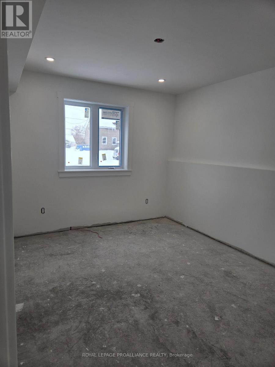 Brand 2 bedroom unit, currently finishing construction, and ready for mid March occupancy. This isn't your average basement suite is bright, high-ceilinged home designed for those who appricate a quiet, tucked-away feel without sacrificing luxury. As a brand-new build, you'll be the very first to enjoy its pristine finishes and modern feel. The layout is centered around open-concept; seamlessly integrating the kitchen, dining and living areas. The space feels incredibly airy thanks to the walk-out feature in the living room, which opens directly onto a private 12 ft x 13 ft concrete patio. This oversized outdoor area is ideal for a patio set and potted greenery, offering a solid, low-maintenance space to enjoy the outdoors. The suite is completed with 2 bedrooms, a sleek 4-piece bathroom, and a dedicated laundry room. This unit is just moments from the Quinte Wellness Centre and Riverside Park. You are within a quick drive to Walmart and city's main shopping district, while the immediate access to the 401 and the industrial park makes for an effortless commute. Your rental experience is made easy with water costs included and two assigned parking spaces located right on site. If you're looking for a fresh, modern home with a private outdoor walkout, this suite is a must see. (id:64974)