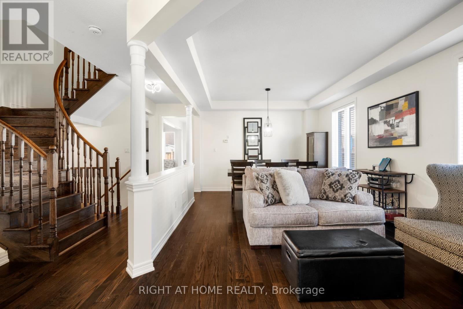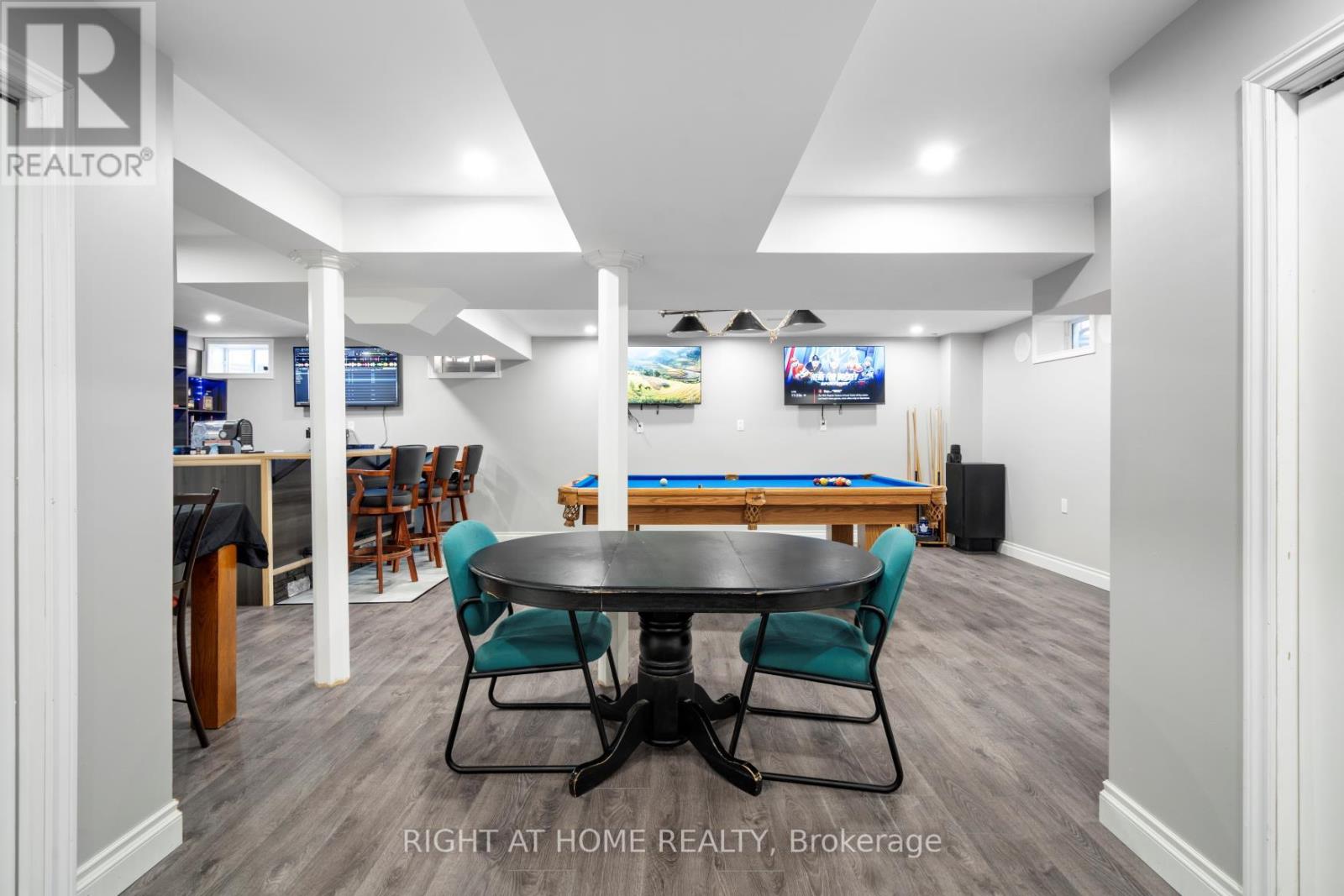 Welcome to 4 Bill Hutchinson Crescent, Bowmanville! This beautifully maintained 4-bedroom, 5-bathroom home was built in 2019 and offers exceptional living space across a thoughtfully designed layout including a finished basement. Step inside to discover 9-foot ceilings and hardwood flooring throughout. A spacious foyer welcomes you with an abundance of natural light. The open-concept living and dining areas are perfect for both entertaining and everyday living, with large windows and a seamless flow. The chef-inspired kitchen is bright and functional, featuring stainless steel appliances, ample counter space, generous cabinet storage, and a large breakfast area with walkout to the backyard. Adjacent is the inviting family room, complete with a cozy gas fireplace and expansive windows. Upstairs, the luxurious primary suite is a true retreat with two closets and a spacious 5-piece ensuite. The second bedroom includes its own private ensuite, while the third and fourth bedrooms are bright, generously sized, and share a Jack-and-Jill bathroom. The fully finished basement adds even more living space, including a large rec room, TV lounge, stylish wet bar, additional bathroom, and storage nook perfect for entertaining or relaxing. Additional features include: Double car garage with interior access, Driveway parking for 4 vehicles, Stone walkway leading to a charming covered front porch, New backyard patio with a screened-in gazebo! Located in a family-friendly neighborhood close to shopping, schools, parks, and major highways (407, 418 & 401), and just minutes from the future GO Train station this is a home that truly checks all the boxes! (id:64974)