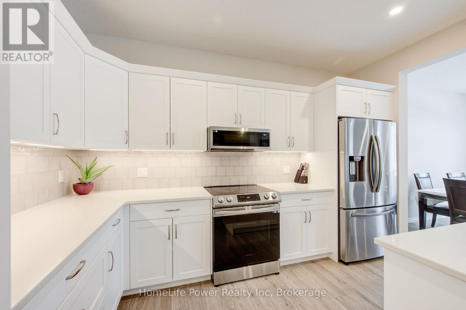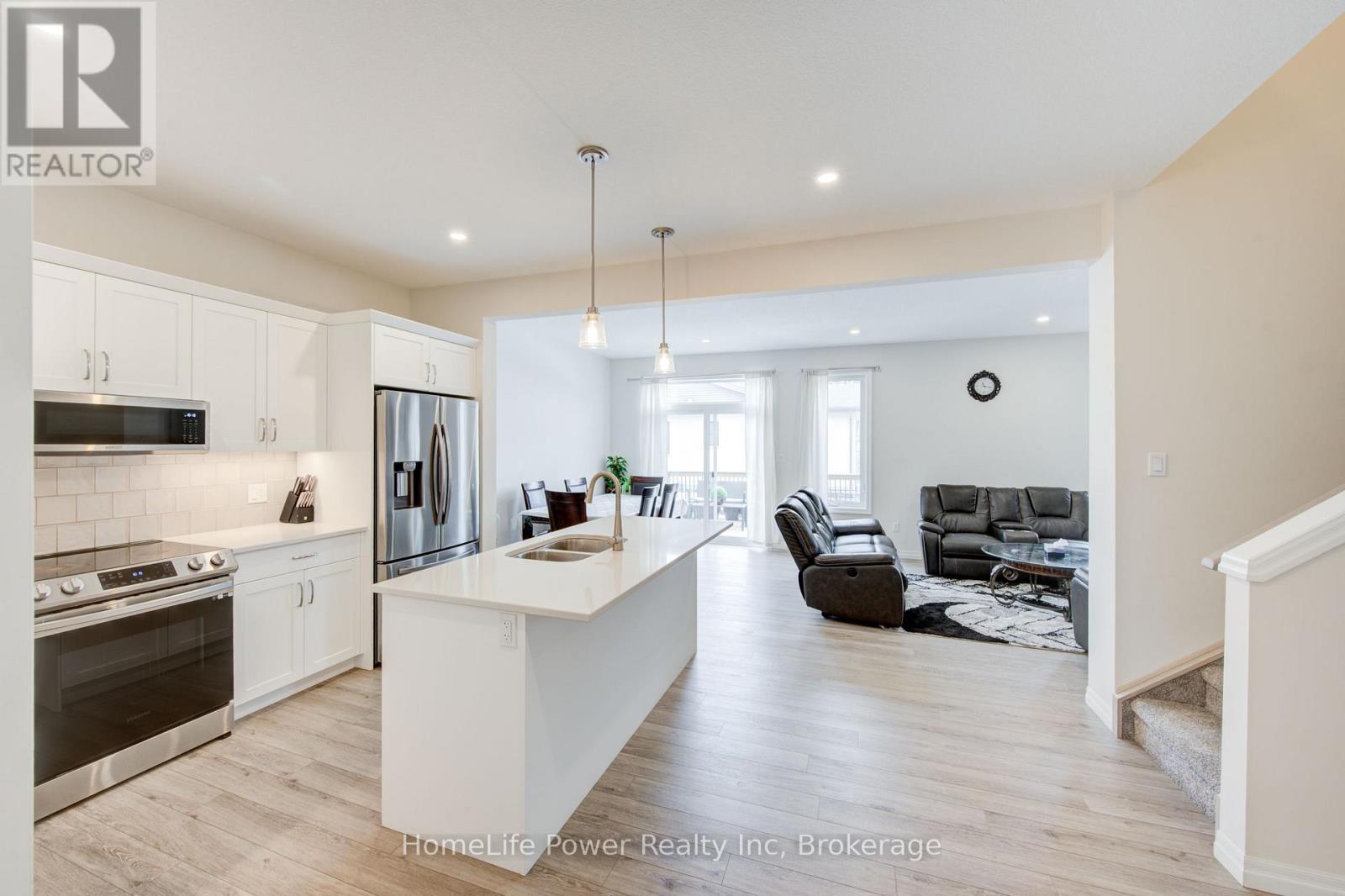Presenting Stunning Bright Spacious 4 Braun Ave, Previously Being Used as MODEL HOME By BUILDER! Built by Quality Builder Hayhoe Homes. This 2 Storey End Unit Town has approx. 2,198finished sq. ft. with single car garage and is the perfect home designed for small to big families in mind. Offering an open concept main floor with 9' ceilings, spacious foyer, powder room, large open concept kitchen/dining/great room with electric fireplace and patio door to rear deck. The designer kitchen features gorgeous quartz counter tops, tiled backsplash, island and breakfast bar. The second level features 4 spacious carpeted bedrooms with the primary suite having a 3 piece ensuite bath and large walk-in closet, second floor laundry for stacked washer/dryer and 4 piece main bath. The finished basement features a large family room, bathroom and plenty of space remaining for storage. Just minutes to parks, trails, shopping, restaurants and grocery stores. (id:64974)