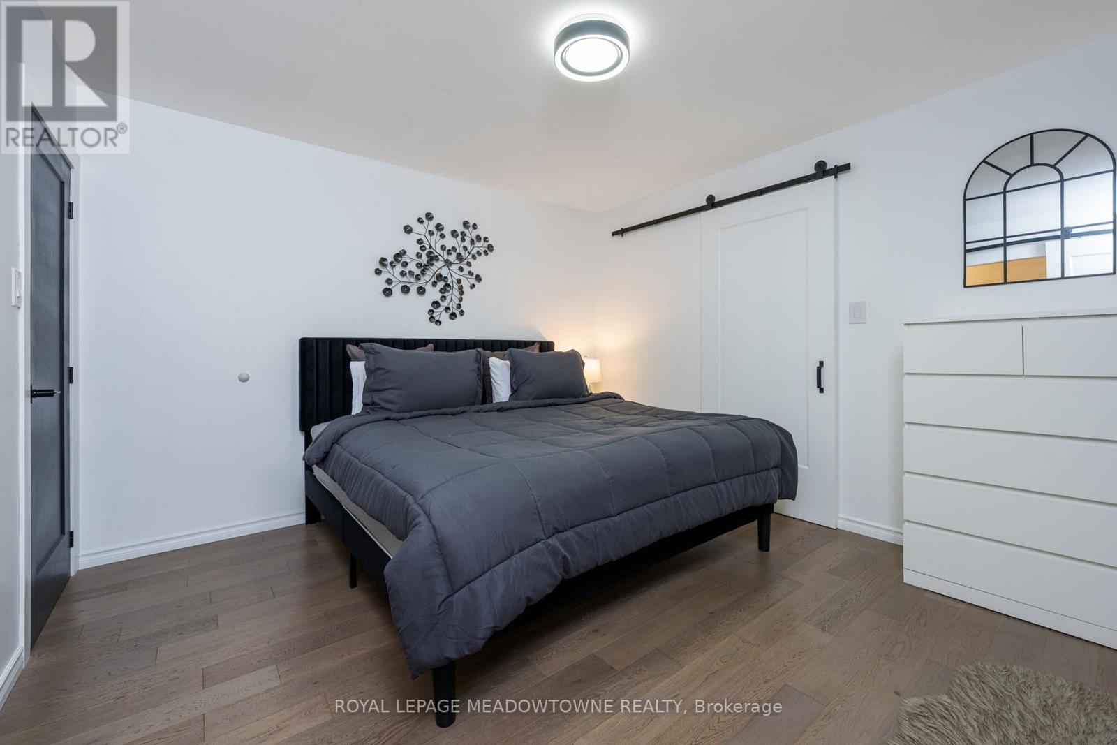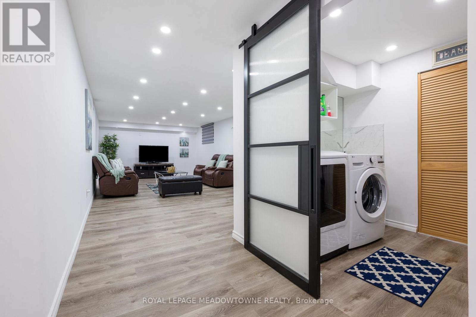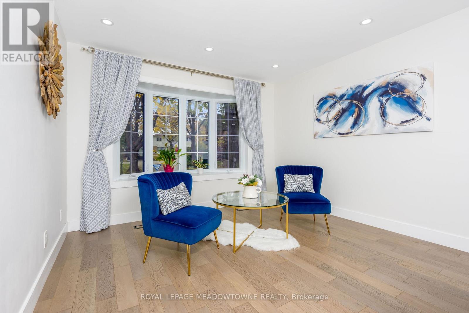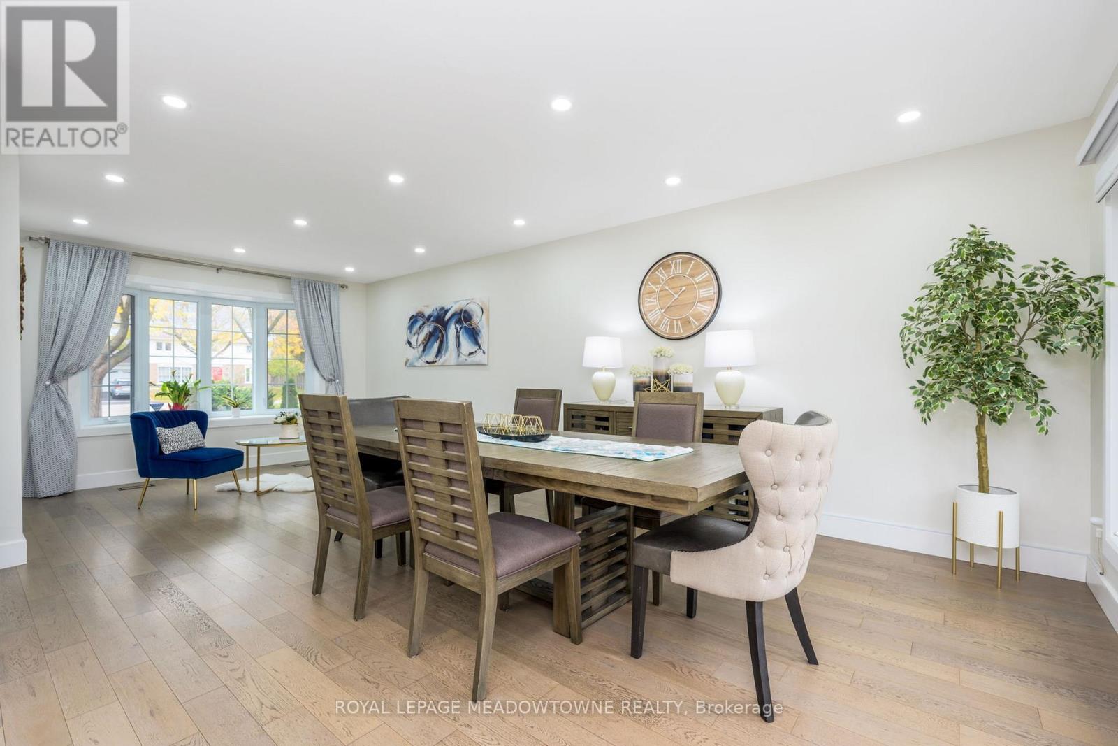 Tucked away in the center of mature Georgetown is the stunning Chipper Court. This quiet, private cul-de-sac combines the walkable convenience of restaurants, shopping & schools but the utmost privacy of large lots, mature tree cover and stunning ravine views. When you enter the foyer, you'll be immediately stunned by this extensively renovated bungalow - smooth ceilings, pot lights and engineered hardwood run throughout the main floor as you flow through the family friendly layout. The dining room and kitchen have breathtaking ravine views through the oversized picture windows flooding the space with natural night. The brand-new kitchen showcases new cabinetry, an oversized island, stainless steel appliances quartz countertops & a skylight above the stove. Bonus space continues in the family room addition with electric fireplace surrounded in stone and two separate walk-outs to the huge deck that spans the entire back of the home. The main floor is completed by a separate wing of the home featuring 3 great sized bedrooms, all with oversized windows. The primary holds a sunken walk-in closet and an elegant 3-piece ensuite with standing glass shower, storage pantry and floating vanity. This wing is completed by an equally stunning 4-piece bathroom with oversized tiles, pantry storage and floating vanity. Downstairs in the finished basement you'll find bonus living space with the rec room, 4th bedroom featuring pot lights and luxury vinyl flooring. The basement has been thoughtfully designed with multiple, extensive storage areas, a rough-in for a wet bar and the potential to add a third bathroom next to the 4th bedroom. Outside offers a rare, flat lot with something for the entire family. Enough space for the kids to play and enjoy the outdoors, beautiful outdoor eating areas and lounge space will offer breathtaking sunset views over the ravine - everyone will love the outdoor living features of this property just as much as the indoor highlights. New furnace (2026) (id:64974)