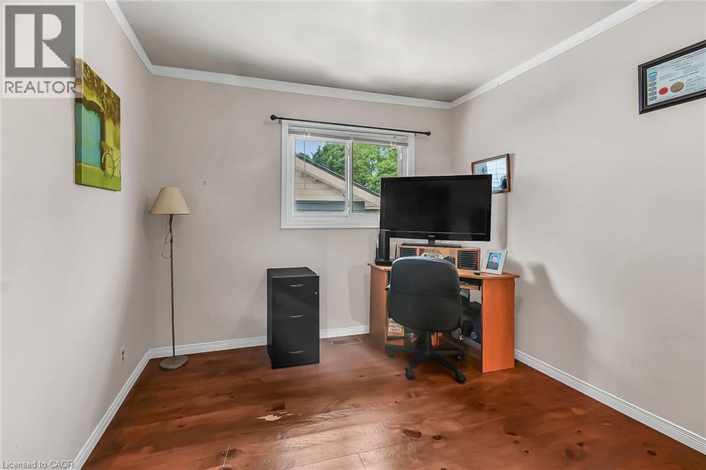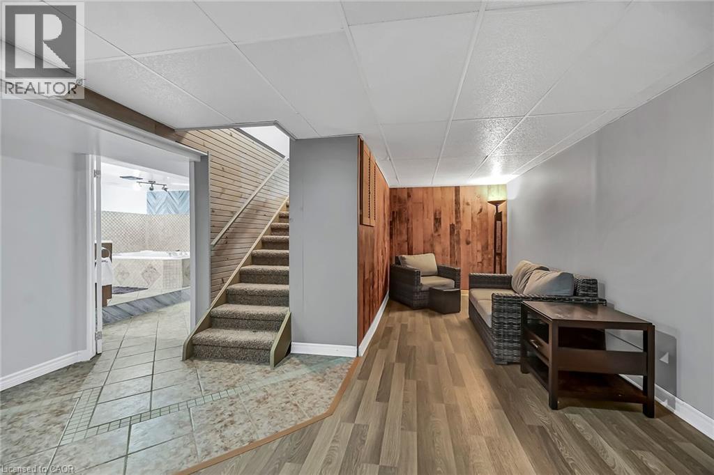 This one will surprise you!! Incredible fully renovated one storey bungalow on large lot (almost 1/3 acre) in quiet area of town, with a bonus detached garage/man cave, and beautiful entertaining area in the back yard. Immaculately maintained, this home offer 3 main level bedrooms plus one in the lower level, two full baths, a large family/games room on grade (used to be an attached garage) plus beautiful living spaces including large living room and dining room on the main plus a rec room downstairs. Family room features pine tongue & groove ceiling with exposed beam look, gas fireplace and garden door to the quality built covered rear patio area featuring stamped concrete, privacy wall, and exterior lighting. Hardwood floors, cove mouldings, & bright vinyl windows through out the home. Lower level bath includes a two seater jacuzzi soaker tub. The yard is fully fenced and includes a quaint garden shed. The Bonus is the oversized two car garage with two roll up doors, concrete floor, large windows, woodstove, wood ceiling and 200 amp electrical. Natural gas is available at the garage as well. As far as mechanicals go - no worries here. Beautiful metal shingle roof with 50 year transferrable warranty, natural gas furnace with newer central air conditioning, 200 amp hydro and vinyl windows. Lots of parking - two separate parking areas - one by the house, and one by the shop. No disappointments here! Potential for a two family situation! This one wont last. (id:64974)