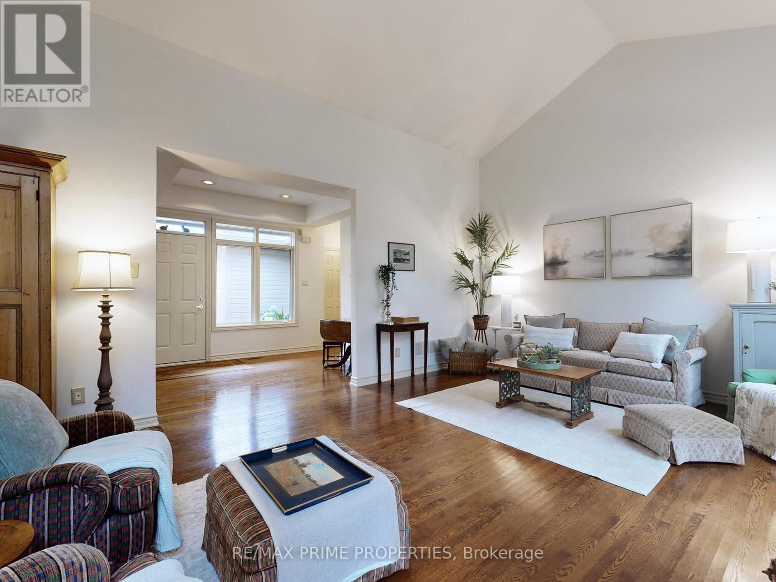 Swan Lake Living. This is what people come here for. Set in Markham's most loved adult lifestyle community, this 2,000+ sqft bungalow gives you the space you want, without the upkeep you don't. Comfortable, easy to live in, and designed for real life whether that means quiet mornings, hosting family, or heading out to enjoy everything the community has to offer. The great room is the heart of the home, with a vaulted ceiling, a striking fireplace, and French doors that fill the space with natural light and connect seamlessly to the outdoors. The kitchen is bright and functional, with crisp white cabinetry, opulent quartz counters, new stainless steel appliances, and a skylight that keeps the space bright all day long. There's a formal dining room complete with French doors and a walk-out to a private patio perfect for summer dinners or a quiet glass of wine. The main floor offers three bedrooms, including a spacious primary suite with a renovated 5-piece ensuite and its own walk-out to the private patio. Hardwood floors run throughout, and the main floor laundry with direct access to the double car garage makes day-to-day living easy. The finished basement adds even more flexibility, with a large rec room, an additional bedroom and bathroom, and plenty of storage ideal for guests, hobbies, or additional living space. When you move into Swan Lake, your to-do list will get a whole lot shorter! Maintenance fees cover the essentials (and then some): Exterior maintenance, lawn and garden care, and snow cleared right to your door. Also included is 24-hour gatehouse security, High-speed internet, cable TV, and water. You'll also enjoy full access to resort-style amenities, including indoor and outdoor pools, a gym, tennis and pickleball courts, bocce. There are social events when you want them, and privacy when you don't. Lock it up and travel, or settle in and enjoy. (id:64974)