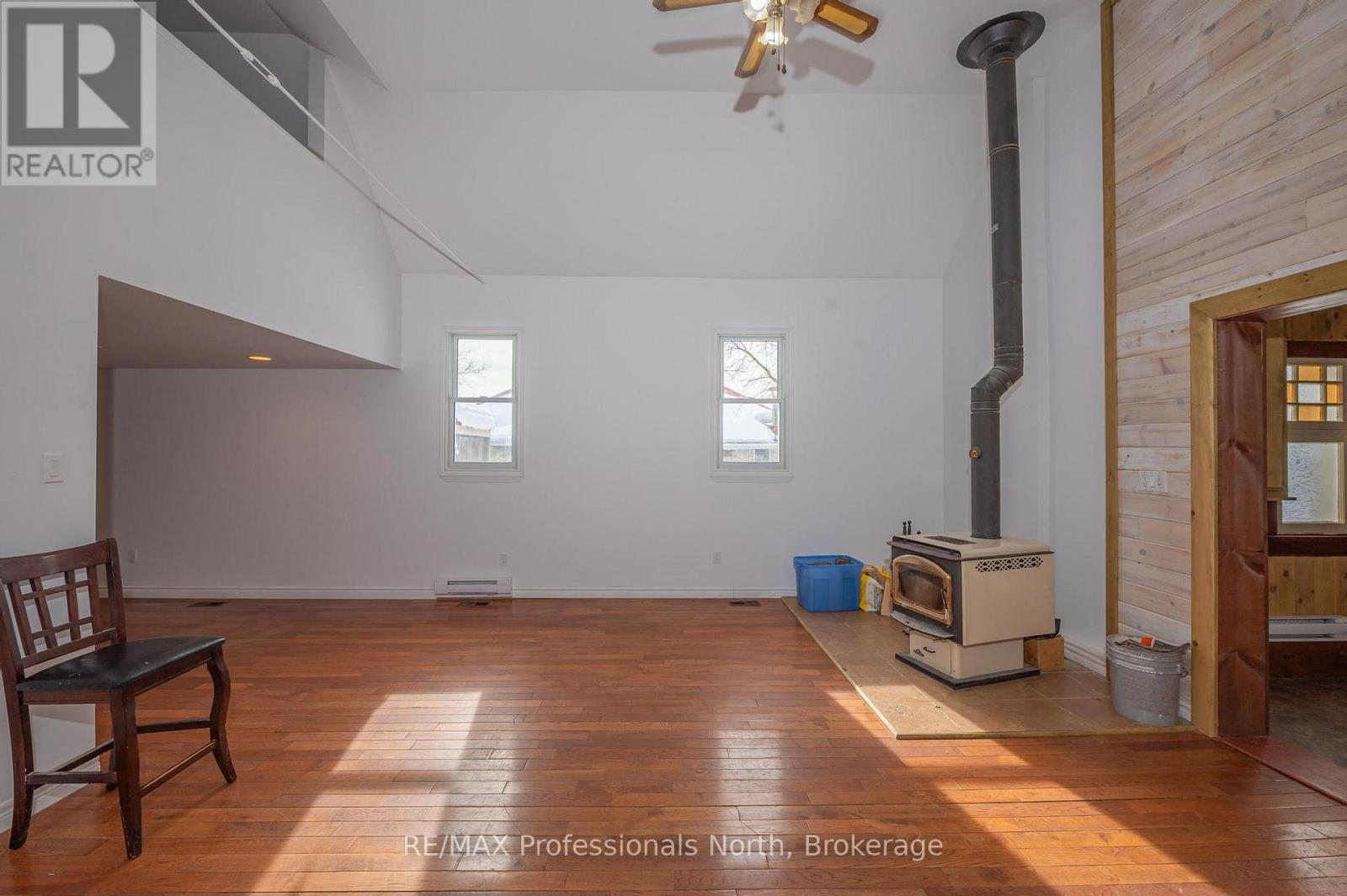 AVAILABLE NOW !!! This special unique home in the charming Village of Kinmount, it is ready for you to move in right away. At one time this was a quaint Church but has been lovingly renovated into a wonderful, maintenance free 2 bedroom home. You will love the open living space with soaring cathedral ceilings and hardwood flooring. A super efficient wood stove warms the entire area, the updated 3 piece washroom contains the main floor laundry, and the renovated kitchen features a small eat-in area. A huge primary bedroom is separate from the main living areas, and the second bedroom overlooks the massive living space of the Great Room. Enjoy the bright, easy to maintain gardens in the summer! All of the local shopping and parks are steps away. Don't miss out on your opportunity to own this VALUE-PRICED home. (id:64974)