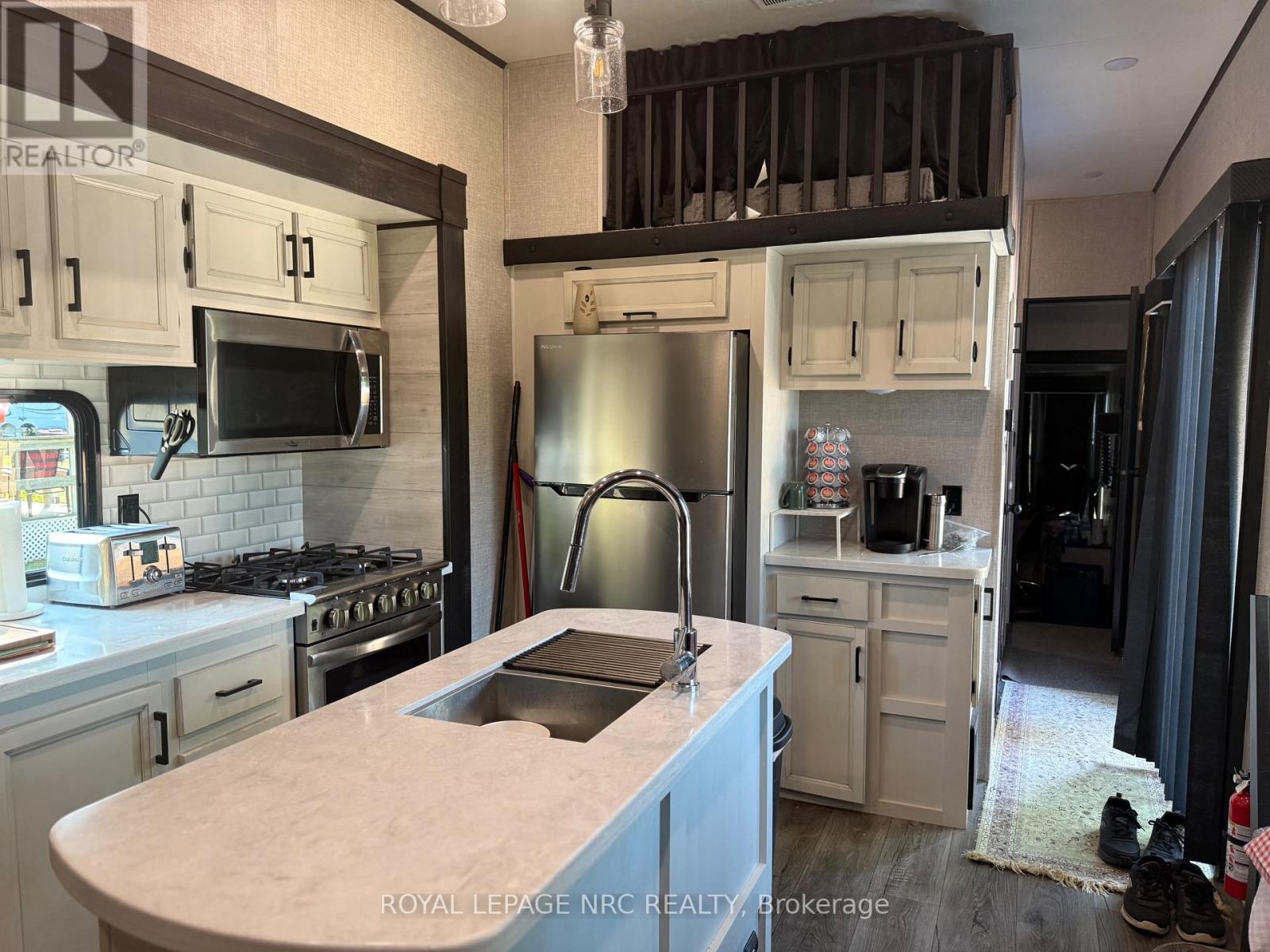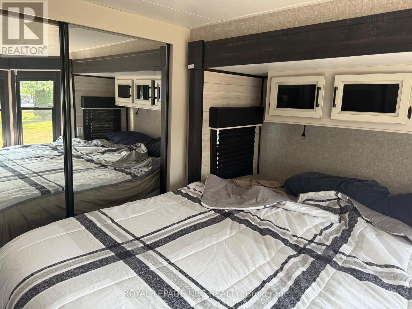 Enjoy nature , boating, fishing in a friendly community. This seasonal trailer is only 2 years old, with 3 bedrooms, full bath, kitchen with stone counters and full size appliances, spacious living room, and master with king size bed. Enjoy the large new deck that's ideal for entertaining and bbqs on those summer nights. New shed 2022. Park amenities include indoor pool, hot tub, dock. See supplements for further pics and park details (id:64974)