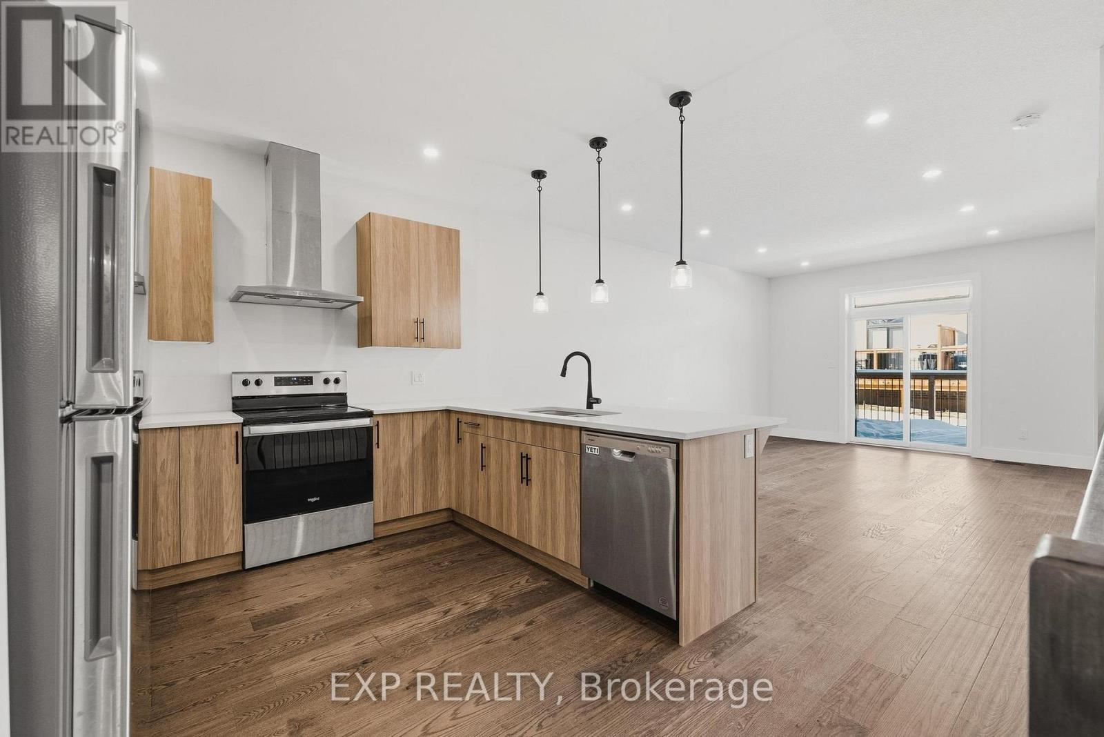 Welcome to 4 Elgin Street W in Norwich - an impressive bungalow-style townhouse that effortlessly combines contemporary finishes with the warmth of small-town living. This stylish 2-bed, 1-bath home is set on a peaceful street, providing a sense of privacy while remaining only 20 minutes from Woodstock and 30 minutes from London. Inside, you'll find 9-ft ceilings, a generous front foyer with direct access to the garage, and a flexible front bedroom that works beautifully as a guest room, home office, or nursery. The bright, open-concept main level features a designer kitchen with quartz countertops, custom cabinetry, stainless steel appliances, and a central island that flows into an inviting living area. Step out from the living space onto your private deck - perfect for unwinding after a long day or hosting friends on the weekend. The primary bedroom offers dual closets, plenty of natural light, and convenient access to a spa-like 4-piece cheater ensuite. The lower level includes a bathroom rough-in and presents endless opportunities to create additional living space tailored to your needs. Ideally located near Norwich's top amenities, schools, and parks, this home delivers comfort, convenience, and enduring appeal. A standout opportunity to own a luxury bungalow townhouse in one of Oxford County's most sought-after communities. (id:64974)