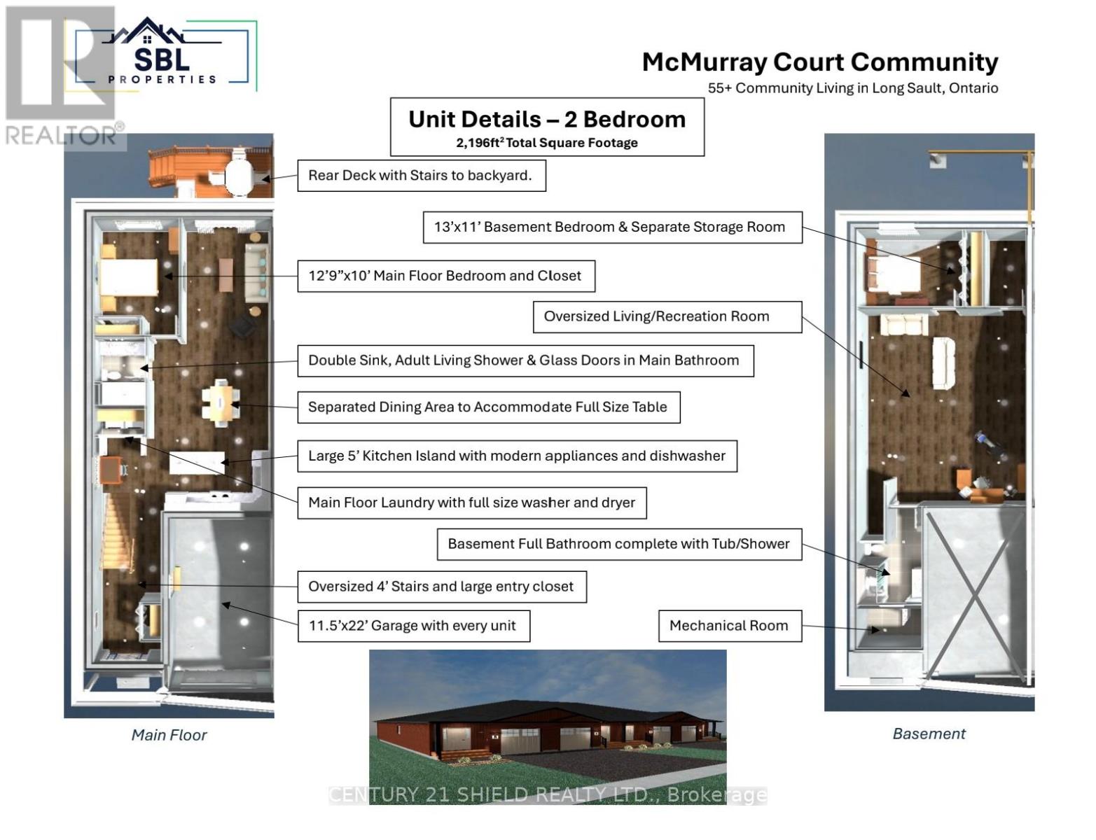 Stylish, Spacious & Maintenance-Free Living in Long Saults Premier 55+ Community. Welcome to easy living in the heart of Long Sault, one of Eastern Ontario's best-kept secrets, nestled along the shores of the stunning St. Lawrence River. Known for its scenic trails, waterfront parks, and small-town charm, Long Sault is the perfect blend of tranquility and convenience just minutes from Cornwall and an easy drive to Ottawa or Montreal. This beautifully designed 2-bedroom bungalow is part of a thoughtfully developed 55+ community by SBL Properties and features 1,100 sq. ft. of main floor bright, open-concept living space plus fully finished basement for a total of 2200sqft. The main floor offers a spacious primary bedroom, a full bathroom, and a modern kitchen with high-end finishes, opening to a private rear deck ideal for morning coffee or quiet evenings. The attached garage adds everyday convenience, and the ICF construction makes each home up to three times more energy and sound efficient than traditional builds. The fully finished basement offers even more living space with a second bedroom, a second full bathroom, and a large rec room perfect for guests, hobbies, or relaxation. Enjoy maintenance-free living, with lawn care and snow removal included, so you can focus on what matters most whether its a walk through the Long Sault Parkway, a ride along the bike trails, or time spent with family and friends. We are currently in the construction phase, with landscaping and driveways to be completed as progress continues. First finished units will be ready by the end of April. Monthly lease also includes additional services: annual spray down of the exterior and decks, eavestrough cleaning, spring garden bed renewal, and fall HVAC maintenance (including furnace filter replacement, AC cleaning, water heater testing, and HRV unit service).All designed to keep your home running smoothly, looking beautiful, and stress-free year-round. (id:64974)