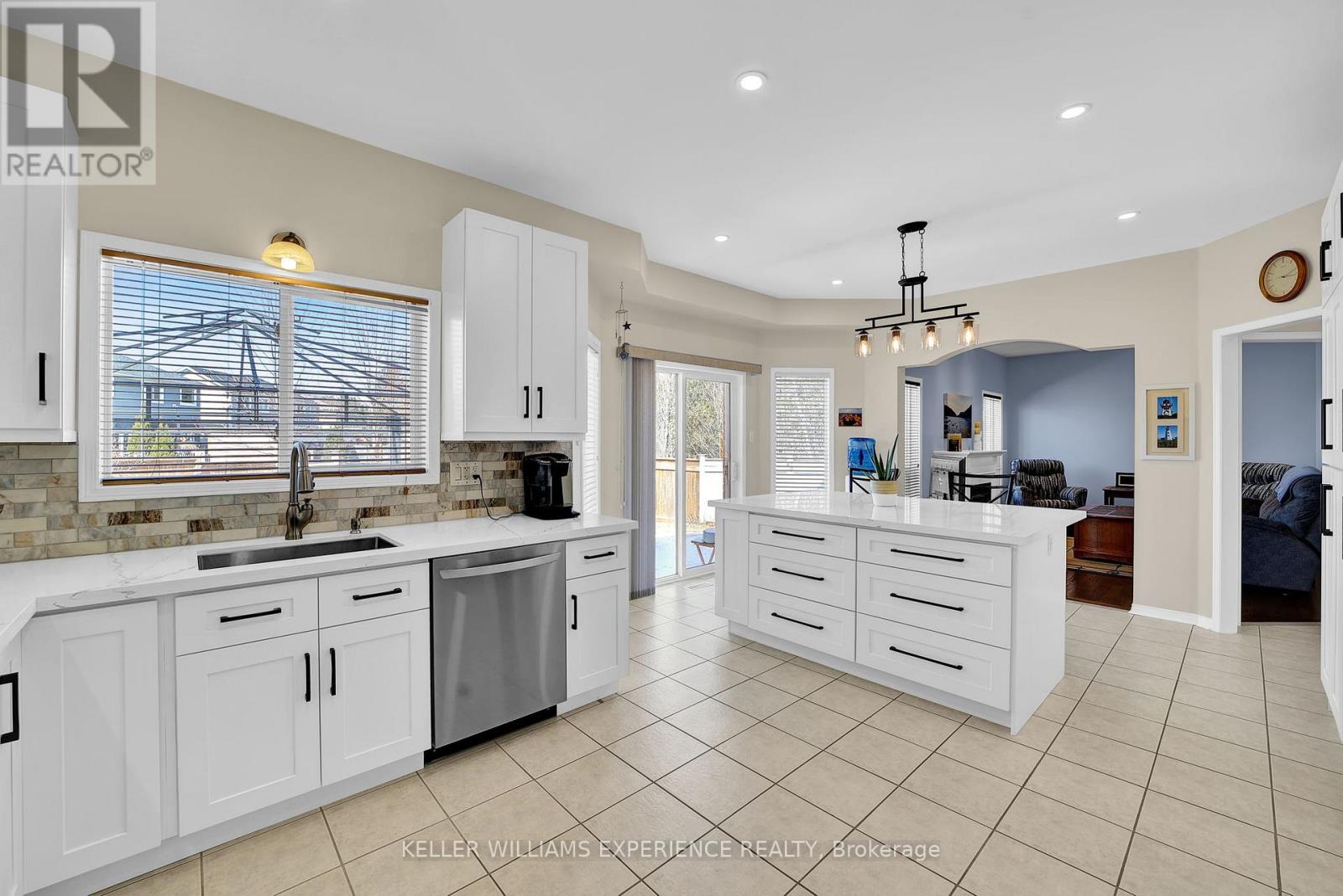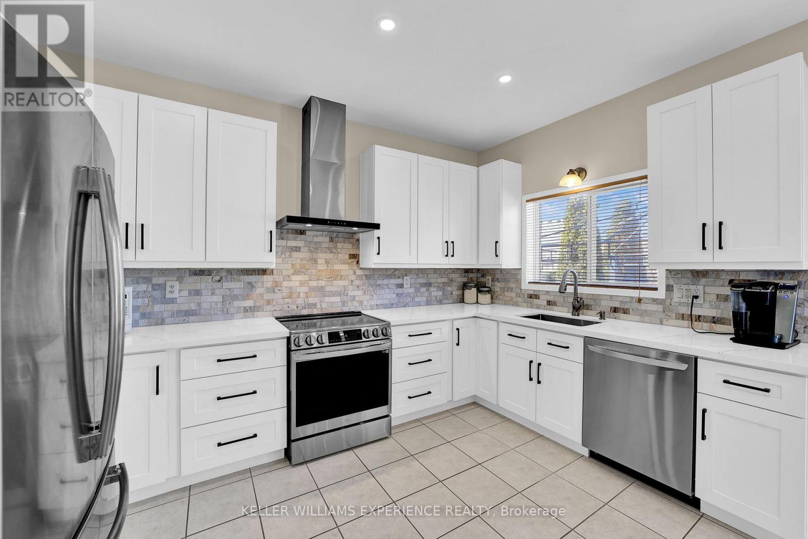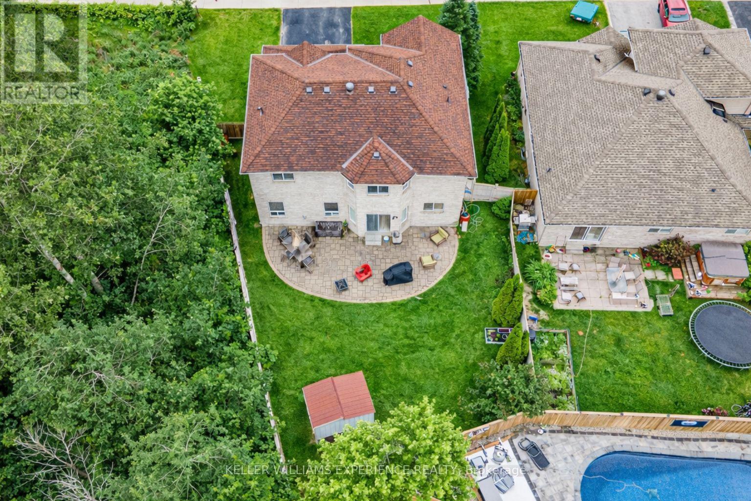 Discover this exceptionally well-maintained, all-brick family home at 4 Gold Park Gate in Angus. Boasting over 2800 sq. ft. of fully finished living space on great lot. This spacious and bright home features a double-door entry, 9-ft ceilings, and a formal living and dining room with hardwood floors and pot lighting. The beautifully renovated eat-in kitchen (2022) showcases quartz counters, a stylish backsplash, new appliances, pot lighting, a breakfast bar, and a walkout to a stone patio and fenced yard with a garden shed. The cozy family room offers a gas fireplace and hardwood flooring. A main floor laundry with garage access and a powder room add convenience. Upstairs, the refinished primary suite includes a walk-in closet, an ensuite with a new vanity and shower, and a relaxing corner jet tub. Three additional generously sized bedrooms complete the second floor. The finished basement features a large rec room, a 2-pc bath, and ample storage. Upgrades include new garage doors (2021), central air (2024), and a water softener. (id:64974)