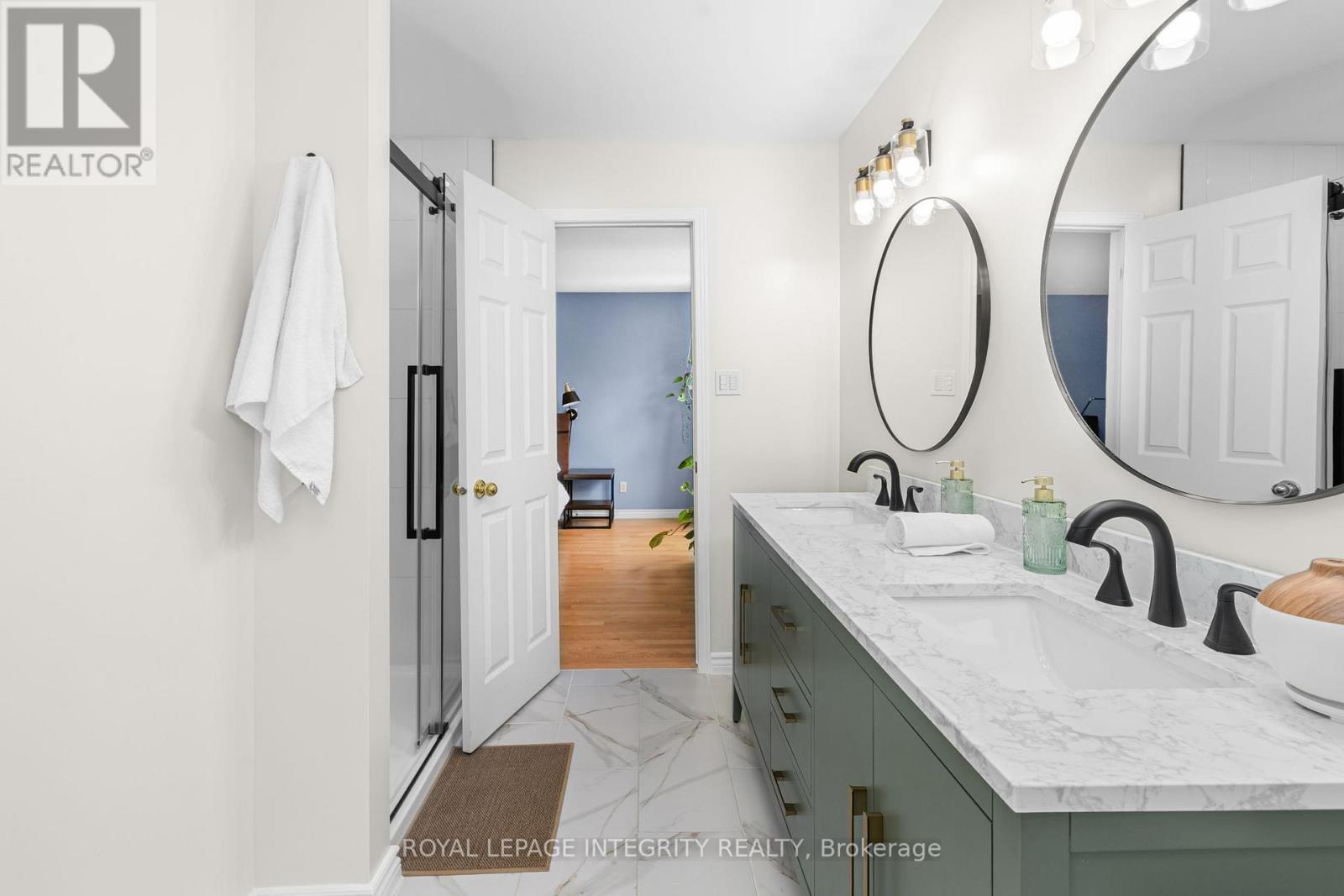 A private backyard retreat in a beautifully updated family home all while tucked away on a quiet street, 4 Hackett offers the perfect blend of space, privacy, and thoughtful updates. With no rear neighbours and direct access to McCarthy Woods along the creek, this home provides a peaceful setting where you can truly unwind and enjoy your surroundings. Inside, the home offers four spacious bedrooms and three and a half bathrooms, creating plenty of room for a growing family or for hosting guests. The main floor flows naturally for everyday living, with bright living spaces that feel both comfortable and welcoming.Over the past several years, the home has seen a number of meaningful updates that enhance both style and functionality. The main floor and basement bathrooms were beautifully updated in 2023, while the primary ensuite received a full renovation in 2025, creating a private retreat for the homeowners.The finished walkout basement, adds even more living space and provides a versatile area for entertaining and a private sauna offering the perfect place to unwind at the end of the day. (id:64974)