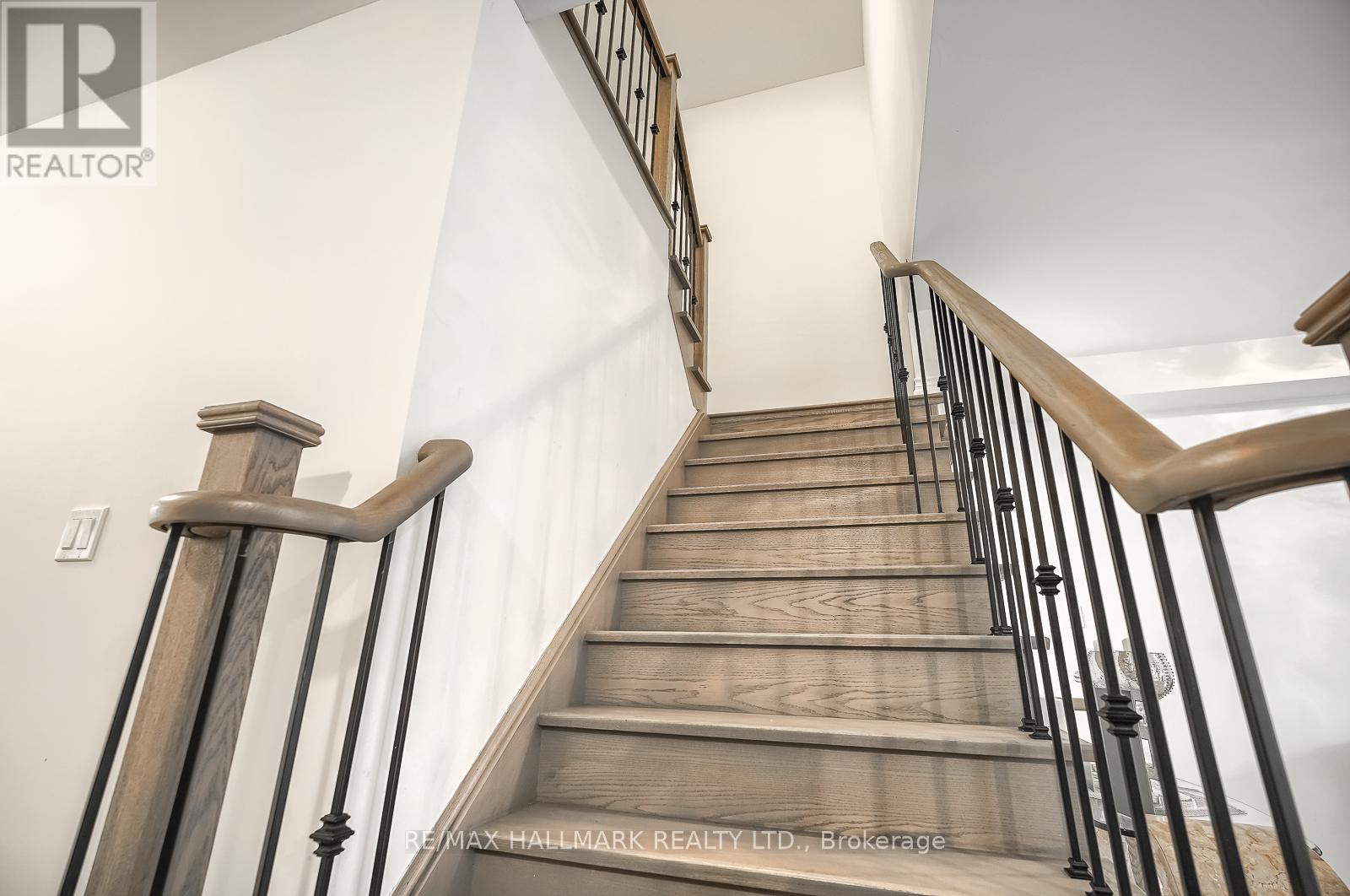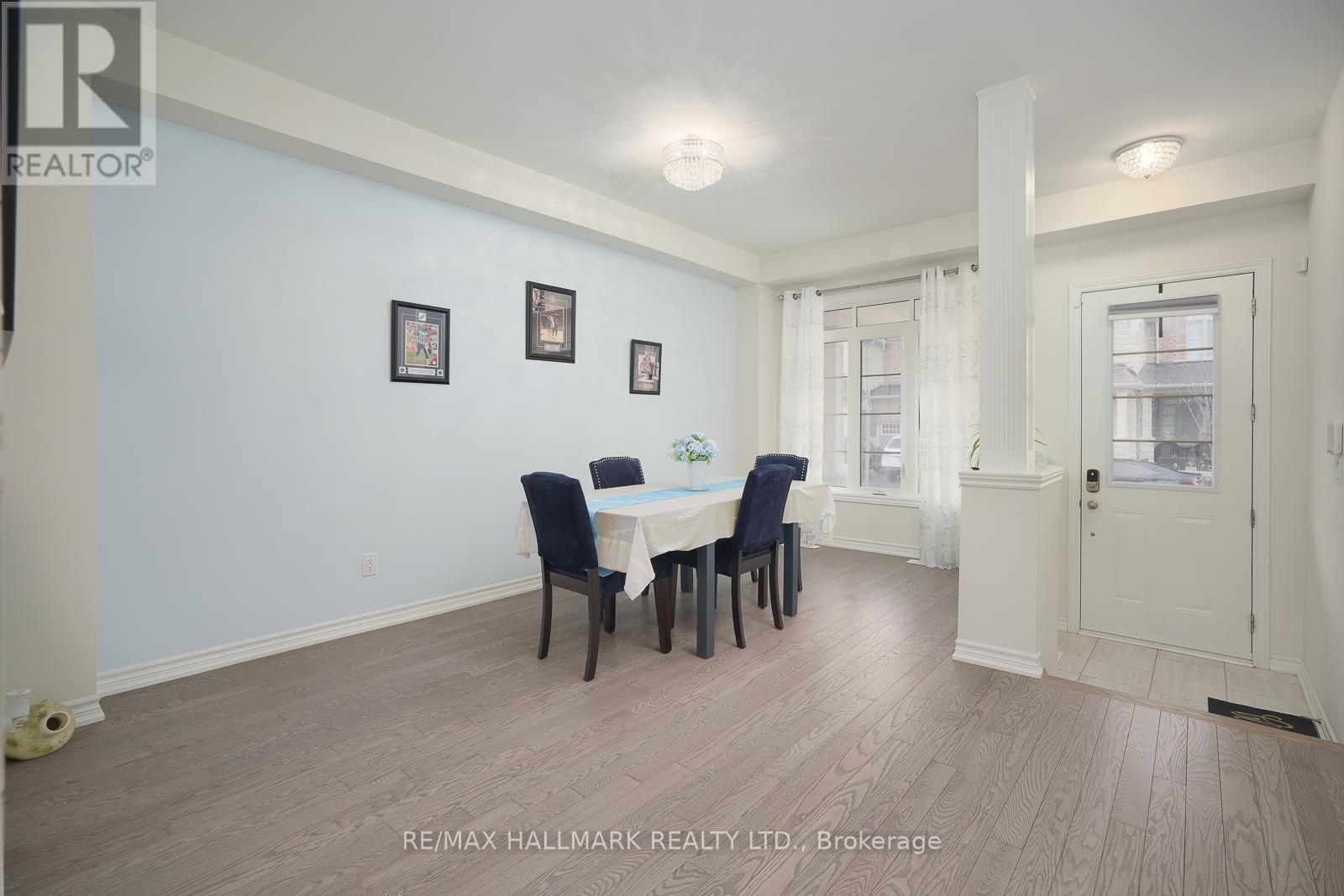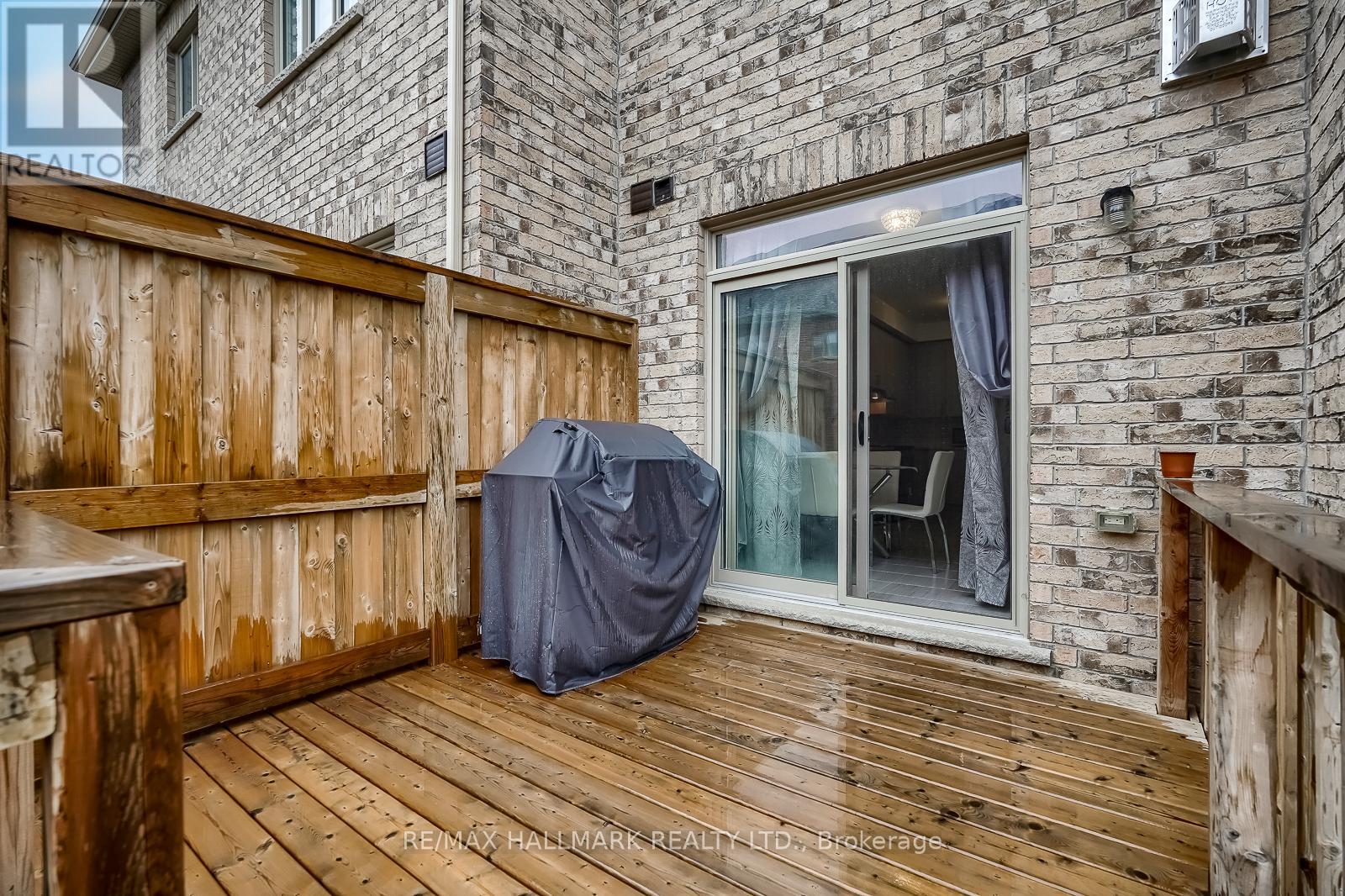 Beautiful brick and stone townhome nestled in a safe, family-oriented neighborhood in North Ajax. This inviting home features a charming covered front porch and a thoughtfully designed layout with 3 spacious bedrooms and 3 bathrooms. The bright and spacious main floor offers a welcoming living room with a cozy gas fireplace and a comfortable family area, creating the perfect space for both everyday living and entertaining. The modern, family-sized kitchen features granite countertops, stainless steel appliances, a center island, and a sun-filled breakfast area with a walkout to the backyard deck-ideal for outdoor dining and relaxing. Hardwood flooring throughout the main floor adds warmth and elegance to the space. Upstairs, the king-sized primary bedroom includes a walk-in closet and a luxurious 5-piece ensuite complete with a glass shower. Enjoy the spacious backyard with a wood deck, perfect for hosting family and friends. The unfinished basement offers excellent potential to customize to your needs. Ideally located in desirable North Ajax, close to schools, parks, playgrounds, shopping, and transit, making it a wonderful place to call home! (id:64974)