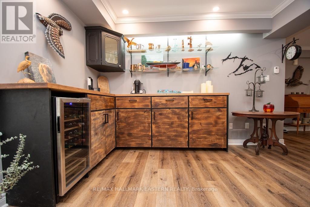 Nestled in the community of prestigious Port 32 in the quaint town of Bobcaygeon awaits your new home. The character and quality is evident from the moment you pull into the custom stone driveway, view the breathtaking perennial gardens, and enter the stunning front entry. This split level gem offers hardwood floors throughout the main level, lovely propane fireplace in the cozy living room, gorgeous custom kitchen with Corian counters, heated floors in the primary bathroom and so much more. The lower level boasts new flooring, propane fireplace, new cabinetry in your oversized family room, ideal for entertaining family and friends. Walkout to your lovely back yard and enjoy barbecuing or hosting on your private patio. Recent updates also include newer furnace and air conditioning (2021); solar tubes on main floor. Make living "the dream" your reality at Port 32. (id:64974)