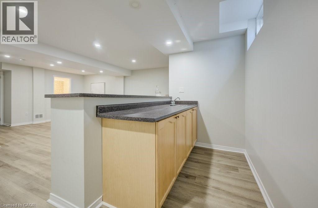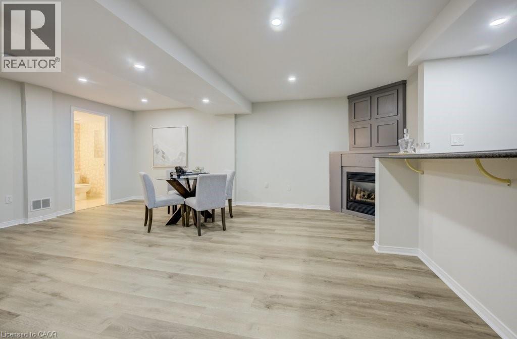 Open House Sat/Sun 2-4 (March 14/15).WORTH THE BUY. This move-in ready freehold end-unit townhome with combined 2,000 sq ft of indoor living space and an oversized pie-shaped backyard is a rare find. Newly painted, and carpet-free throughout, with exception of new carpeted stairs for added safety. Main floor opens with spacious foyer, open-concept kitchen with quartz countertop and stainless-steel appliances. New sliding doors lead to the backyard, creating a seamless indoor-outdoor flow. Upstairs, three spacious bedrooms, and two modern full baths, perfect for family or for professionals that desires extra space. The furnished multi-purpose basement with wet bar, corner gas fireplace, and powder room – whether for entertainment, to relax, use as a gym, perfect spot for podcast or home office. The enclosed oversized backyard has a deck and two large sheds – for additional storage and potential workshop for hobbies or projects. Whether you are a pet lover or garden enthusiasts or both, you will love the spacious yard space. Attached garage with built-in shelves and side door. Newly paved private driveway that can park two vehicles. For additional convenience motion-detection lights front and back of house, programmable light switches with dimmers, doorbell with camera, wired smoke detectors and keyless entry. This spacious, furnished home set on a private street and sought after neighbourhood offers privacy, functionality, and convenience - just minutes from schools, parks, golf course, shopping and Hwy 401. (id:64974)