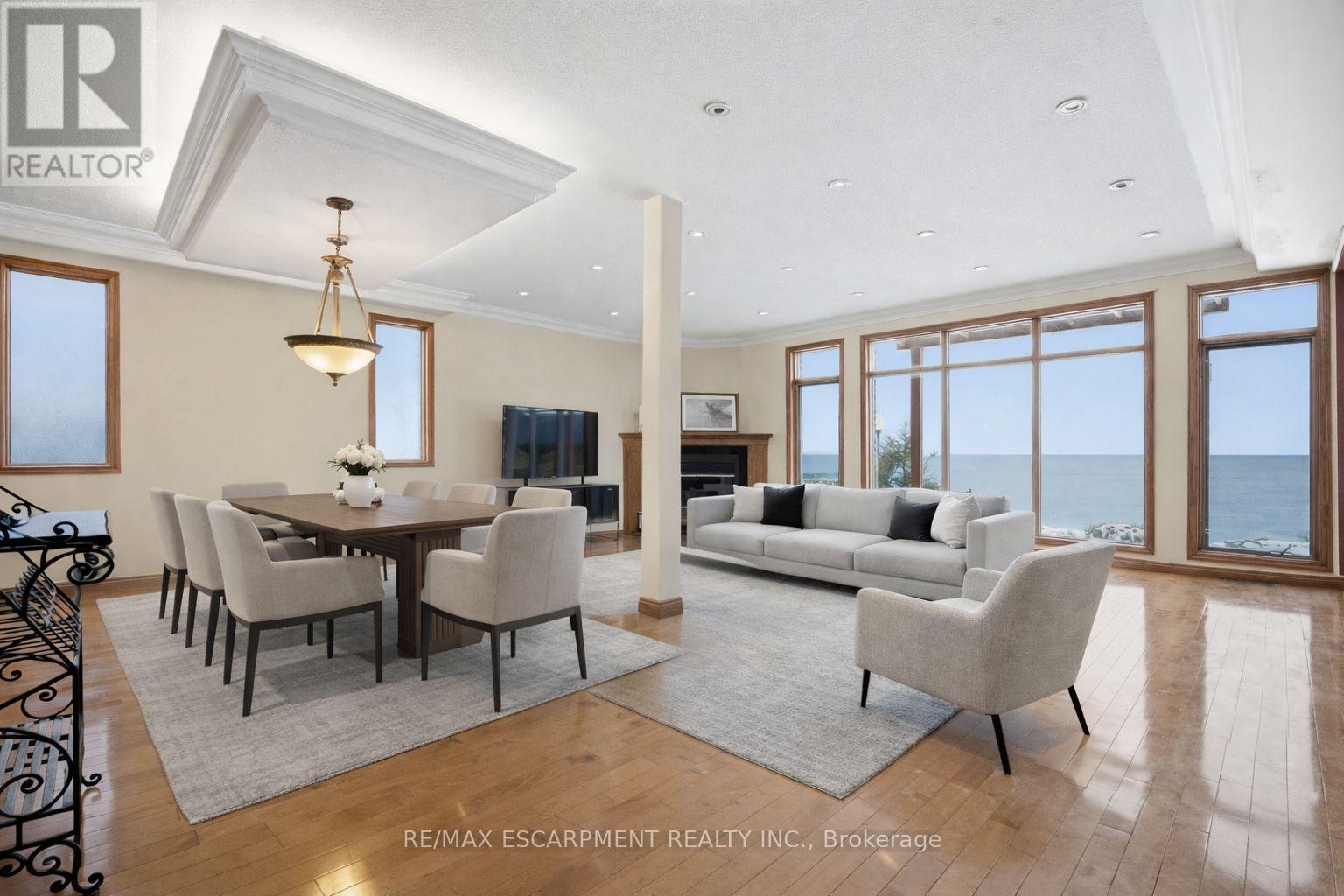 Welcome to 4 Lakeside Dr, Stoney Creek, a rare opportunity to own a custom-built waterfront home (2002) with 50 feet of direct frontage on Lake Ontario. From the moment you walk through the front door, you are greeted by breathtaking, unobstructed lake views, setting the tone for this exceptional property. This beautifully maintained home offers 4 spacious bedrooms on the upper level plus an additional 5th bedroom in the finished basement, making it ideal for families or multi-generational living. Designed with comfort and style in mind, the home features no carpet throughout, ensuring a clean, modern feel. Enjoy stunning panoramic views of Lake Ontario and the Toronto skyline, creating a truly one-of-a-kind backdrop for everyday living and entertaining. Whether watching the sunrise over the water or city lights at night, this property delivers a lifestyle that is both peaceful and impressive. A rare blend of custom craftsmanship, prime waterfront frontage, and unforgettable views, 4 Lakeside Dr is lakefront living at its finest. Luxury Certified. (id:64974)