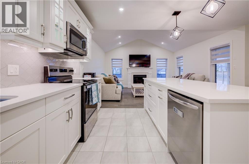 Prepare to be impressed by this stunning 2020-built home at 4 Livingston Drive in the charming community of Tillsonburg. Offering 1,768 sq ft above grade plus a fully finished 517 sq ft basement, this beautifully maintained property sits on a 50 x 115 ft lot and showcases a perfect blend of style and modern upgrades. A striking open-to-above foyer welcomes you into a bright, open-concept living space featuring a cozy gas fireplace and soaring cathedral ceilings. The kitchen is a true highlight with brand new stainless steel appliances (stove, fridge, microwave hood fan), quartz countertops, tile backsplash, crisp white cabinetry, and an oversized island—ideal for entertaining. Enjoy California blinds in all above-grade bathrooms and brand new zebra blinds throughout the rest of the above-grade home. Upstairs offers three spacious bedrooms and a large family bath, including a primary suite with walk-in closet and a private ensuite with double vanity, soaker tub, and separate shower. The finished basement adds valuable living space with vinyl plank flooring, a bedroom, and a stylish 4-piece bathroom—perfect for guests or extended family. Step outside to a covered deck, ideal for relaxing or entertaining. Complete with a brand new front-load washer and dryer, this home is truly move-in ready. Don’t miss this exceptional opportunity—book your private showing today! (id:64974)
