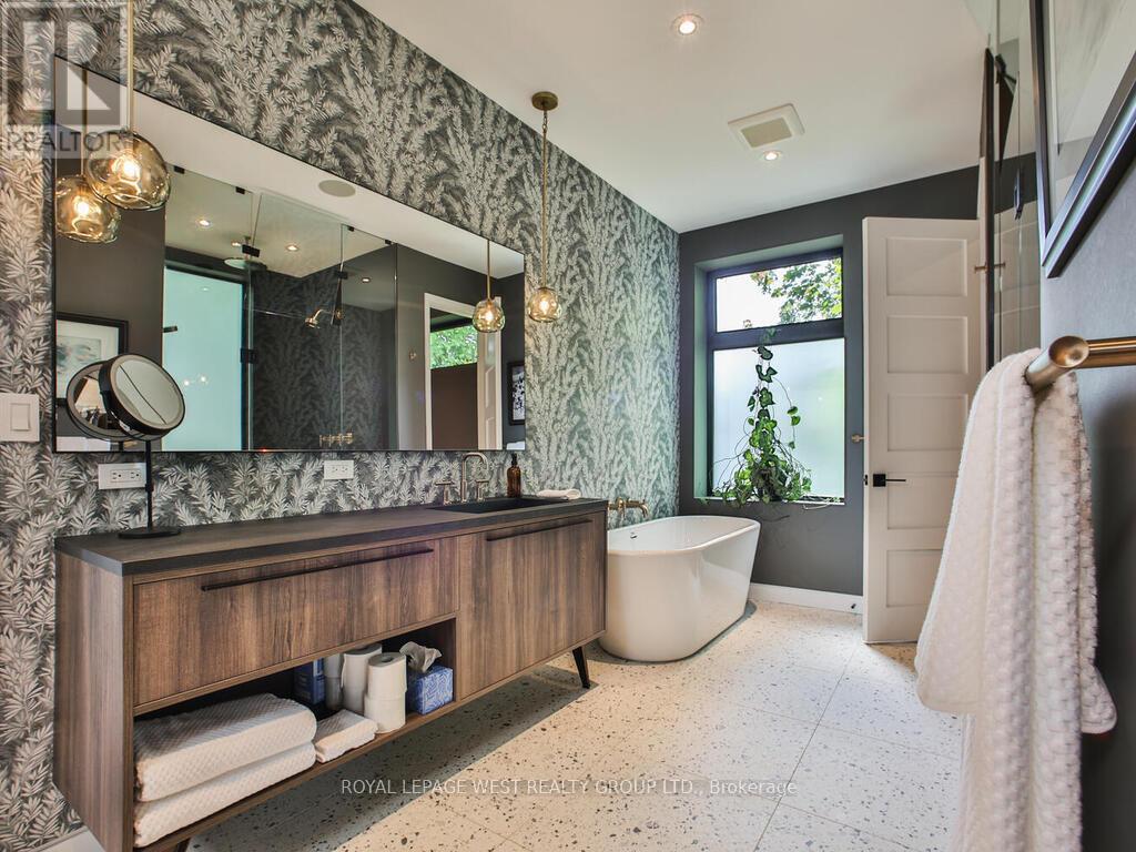 Contemporary meets Mid-Century Modern in this unique, custom-built Bone Structure home, featuring every designer detail. Radiant heated floors throughout. Sleek Scavolini kitchen and cabinetry. Entertain effortlessly in the gourmet kitchen equipped with a professional range featuring a steam oven and warming drawer, touch-open panels concealing the fridge and freezer, and custom solid-slab Laminam porcelain countertops and backsplash.This home offers four generously sized bedrooms. The large primary suite features tranquil views of the pool and garden, along with a luxurious ensuite complete with a deluxe soaker tub and a glass-enclosed shower with multiple shower heads.The expansive living and dining areas are ideal for both family gatherings and elegant entertaining. Just outside you enter a private garden oasis with a salt-water pool complete with automation and swim jets, or unwind in the large six-person Beachcomber hot tub. Lighting, whole-home audio, security, and window coverings are all controlled via touchscreen panels or remotely through a smartphone app. A full-home backup generator powers the entire house, including heating, air conditioning, pool, and hot tub.This property has a 79 Walk Score; (id:64974)