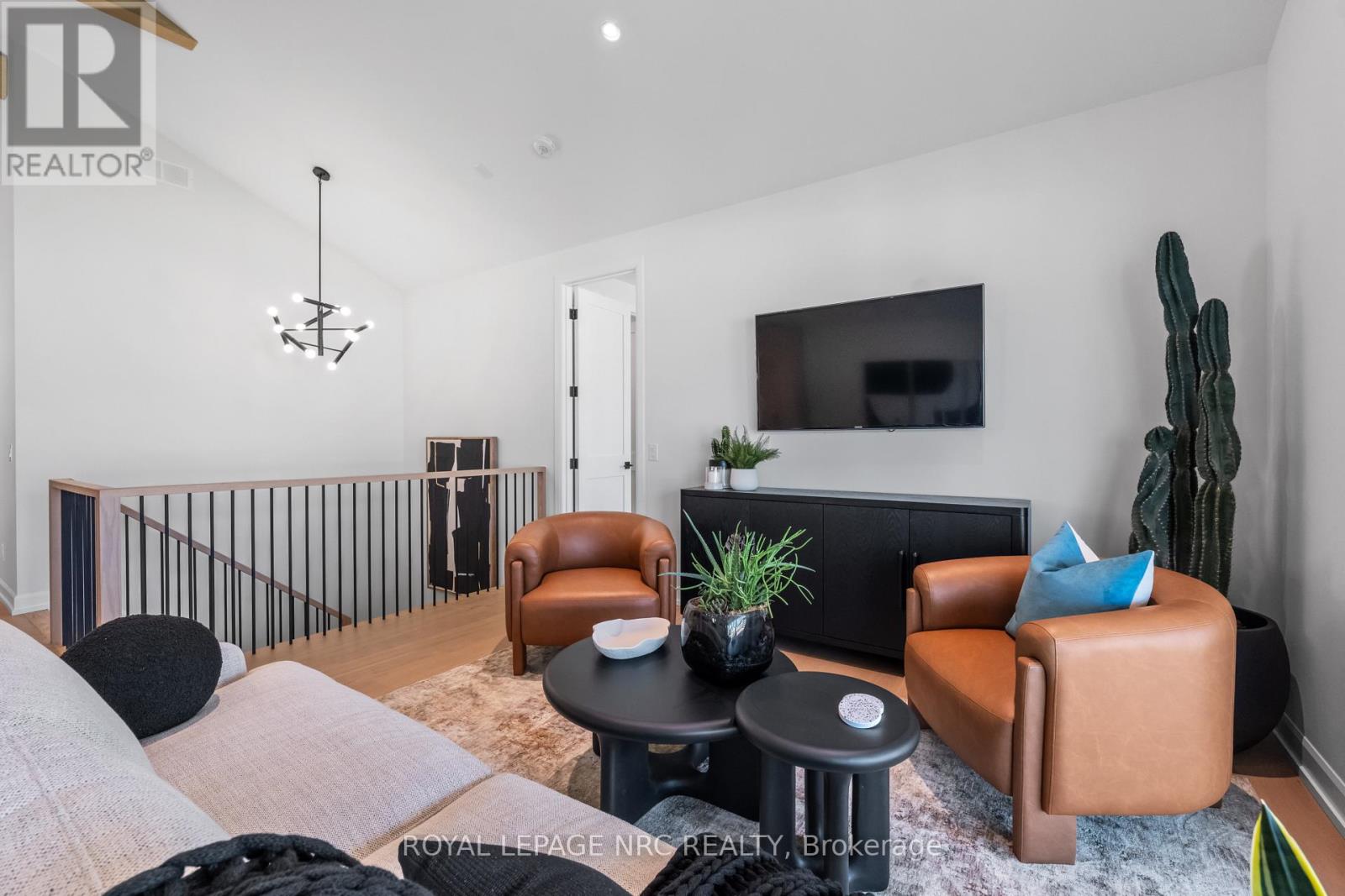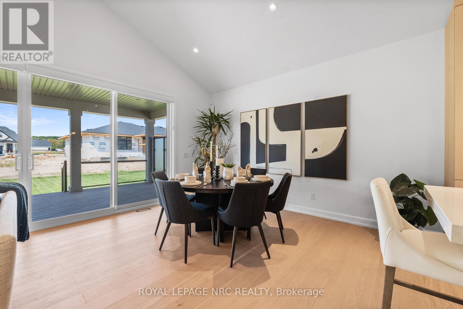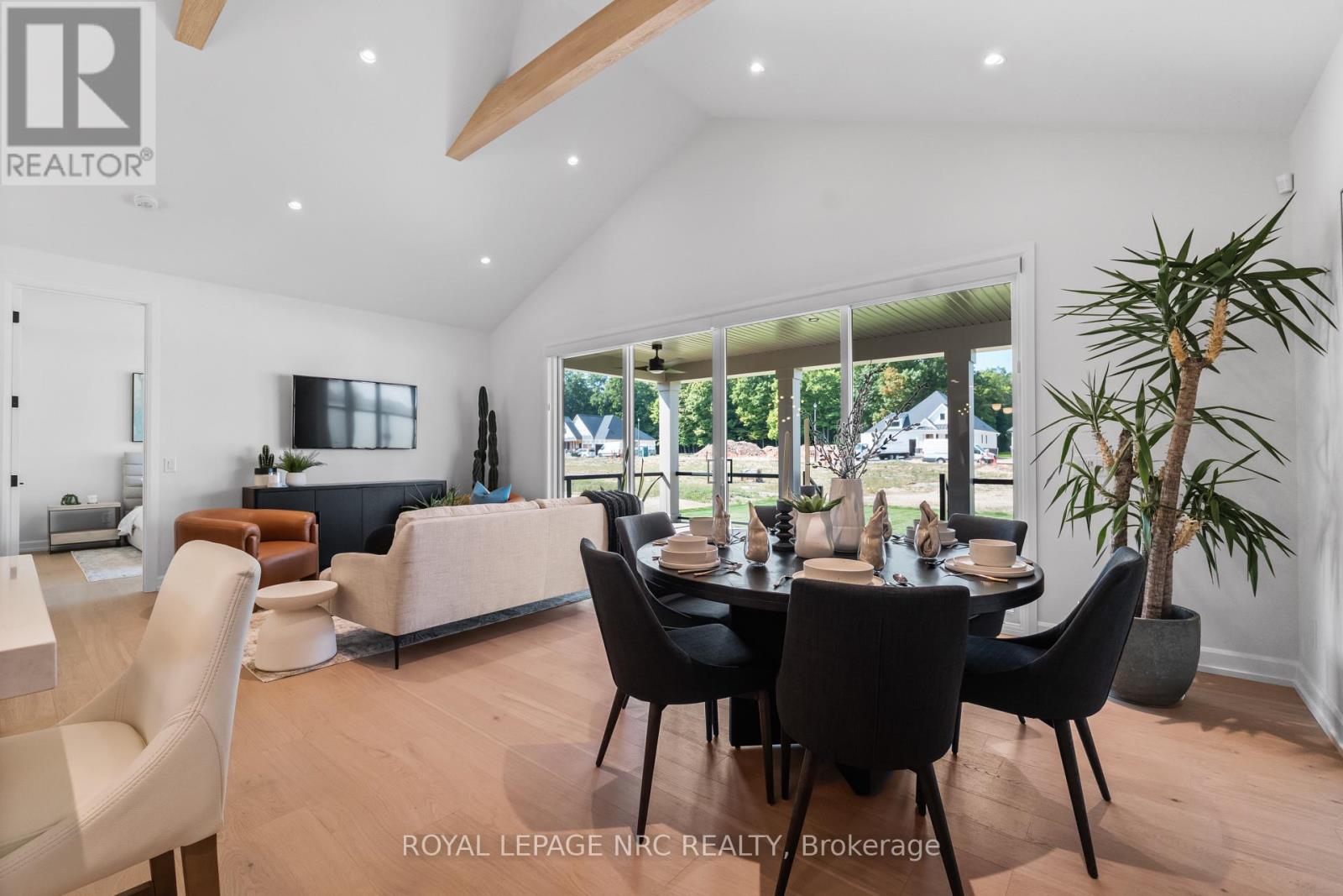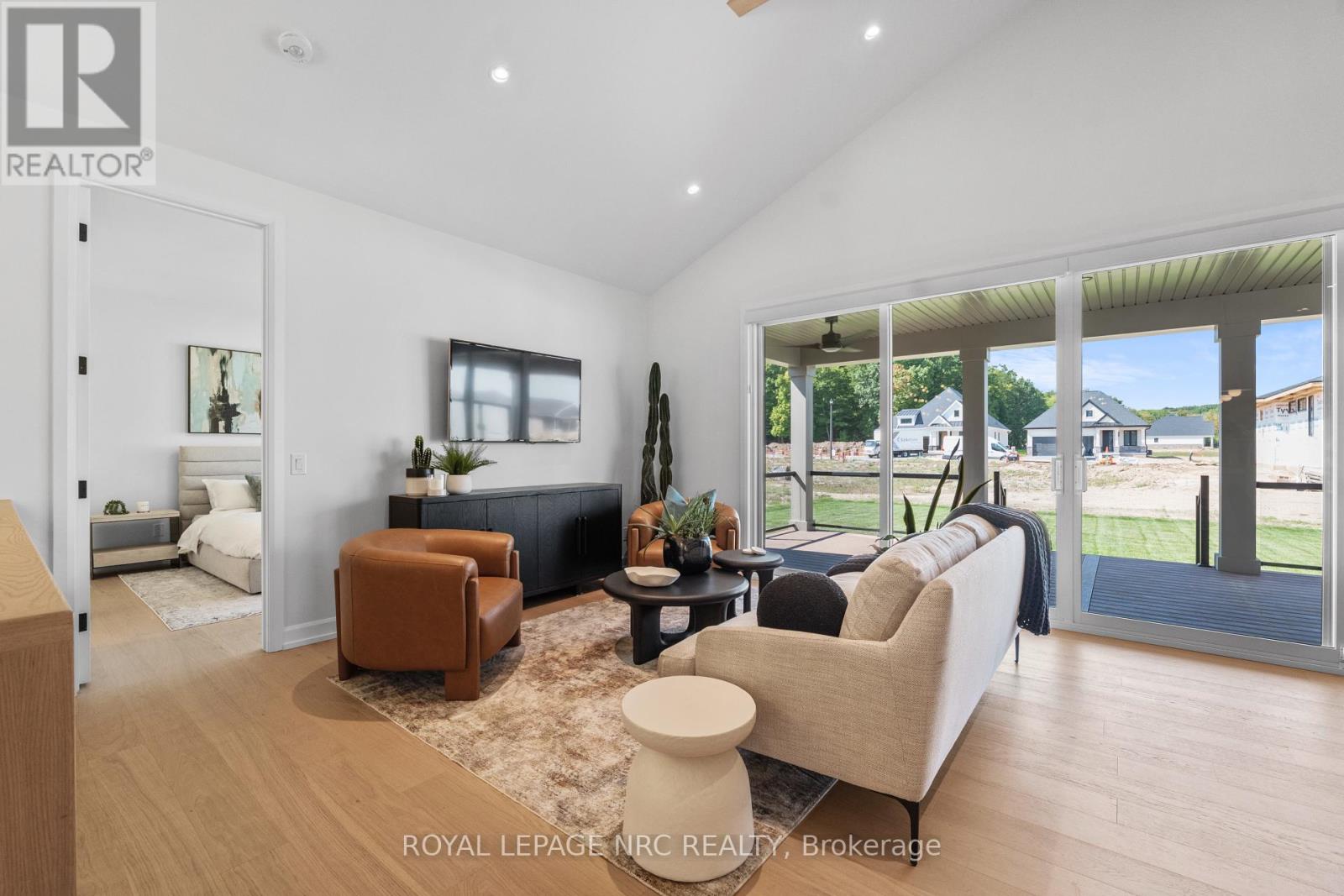 Welcome to 4 Page Street, a luxurious 2+2 bedroom, 3 bathroom bungalow crafted by Rinaldi Homes! Thoughtfully designed with upscale finishes and meticulous attention to detail, this new home delivers an elevated living experience with a seamless blend of style, comfort, and functionality. The main living area features stunning 16' sliding glass doors, a soaring vaulted ceiling in the great room/kitchen/dining area, enhanced by striking faux wood beams and an abundance of natural light (9' ceiling in all other areas of the main floor). Wide-plank engineered white oak hardwood & luxurious 12'x24' tile flow throughout, complementing the custom kitchen featuring upgraded cabinetry, quartz counters, an oversized island with, premium Bosch appliances (with gas range), and perfectly curated lighting. The primary suite is a true retreat, offering a spa-like ensuite with a rain shower, heated floors, & quartz counters, plus a custom walk-in closet. Triple-glazed windows, solid interior doors, & refined trim details elevate the home's everyday feel. The finished basement expands the living space, featuring a spacious family room with a linear gas fireplace, 2 additional bedrooms, a 4 piece bathroom, a home gym (or office) with glass barn doors, and luxury vinyl flooring throughout. An Open stair design, upgraded railings, and thoughtful lighting create a space that feels anything but secondary! Step outside to enjoy a covered TREX composite deck with privacy glass, a gas BBQ line, & a lush green lawn. The landscaping package also includes an interlocking stone driveway, a full irrigation system & manicured gardens. The exterior exudes timeless curb appeal by combining stone detailing with James Hardie board-and-batten siding. Rinaldi's Forest Park community is the quiet, upscale setting you have been waiting for. Only minutes to the Steve Bauer Trail, Fonthill Band Shell, local wineries, golf courses, boutique shops, and everyday amenities. Forget compromise - it's all here! (id:64974)