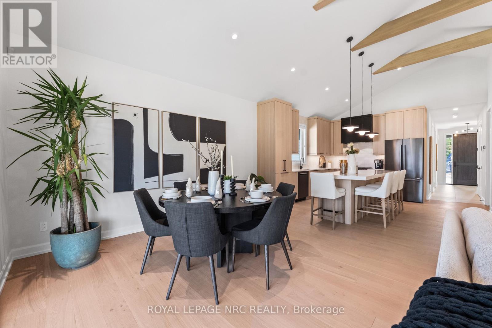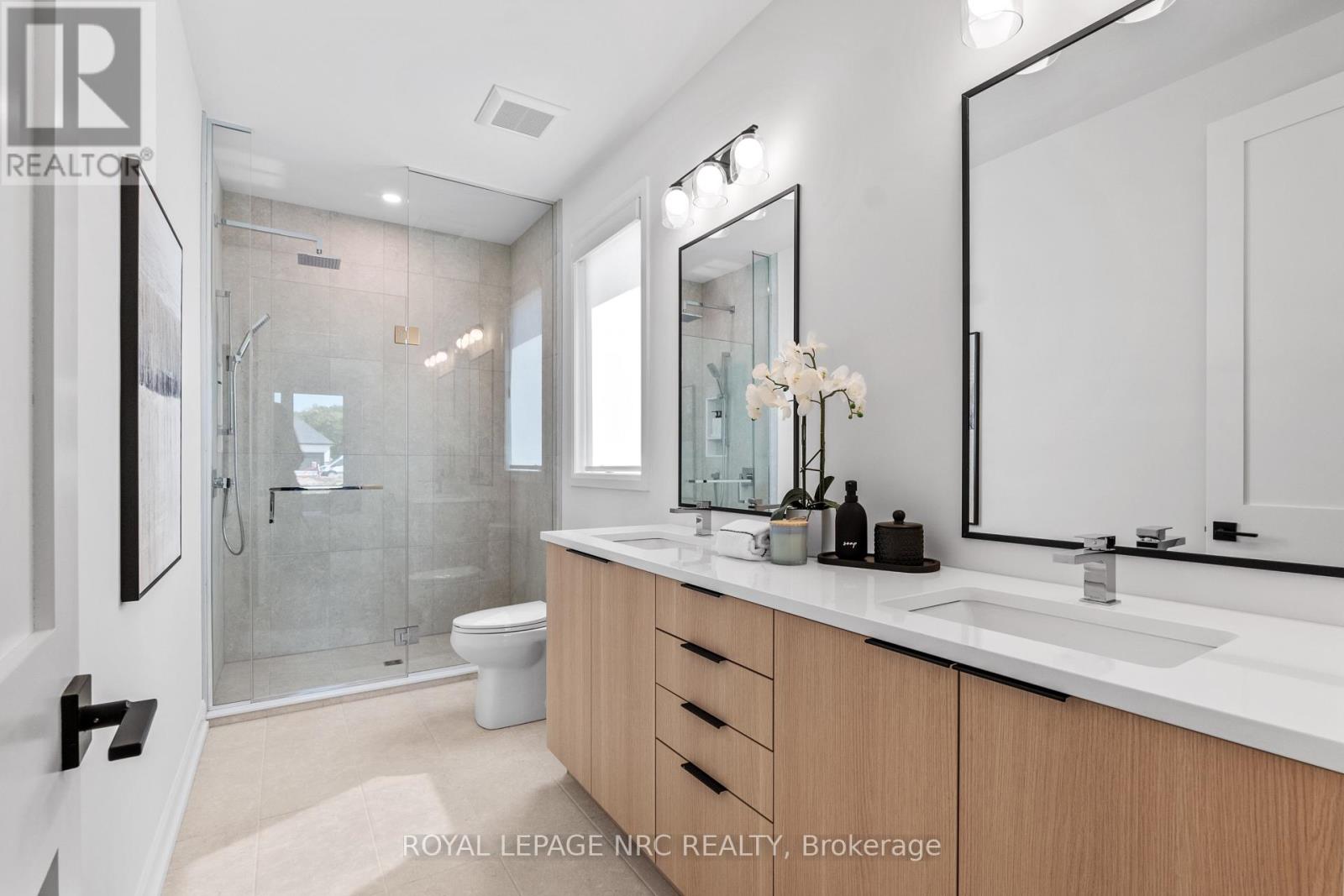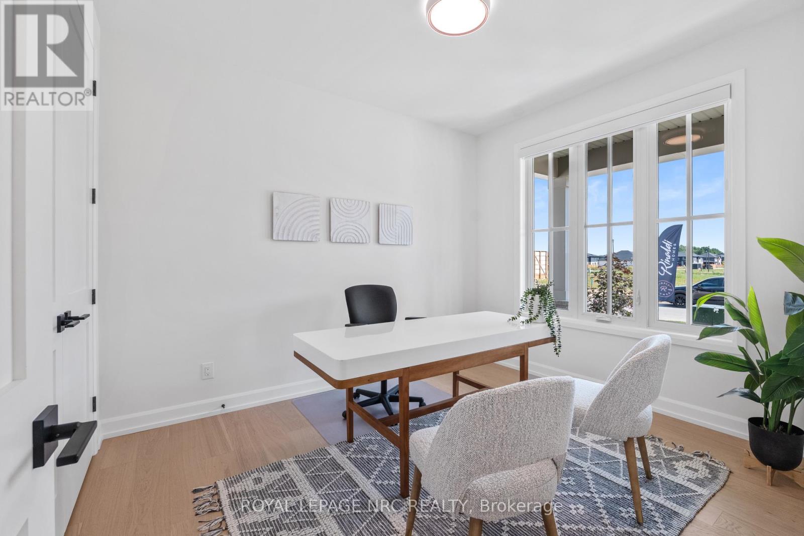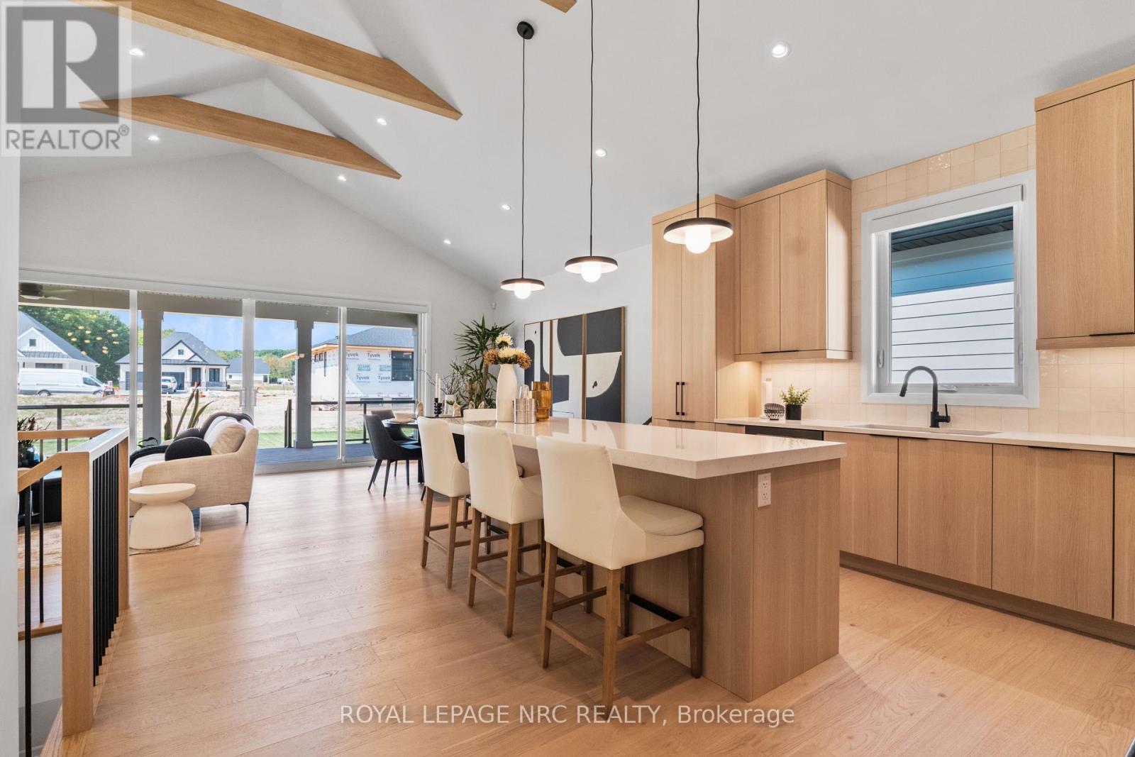 Welcome to 4 Page Street, a luxurious 2+2 bedroom, 3 bathroom bungalow crafted by Rinaldi Homes! Thoughtfully designed with upscale finishes and meticulous attention to detail, this new home delivers an elevated living experience with a seamless blend of style, comfort, and functionality. The main living area features stunning 16' sliding glass doors, a soaring vaulted ceiling in the great room/kitchen/dining area, enhanced by striking faux wood beams and an abundance of natural light (9' ceiling in all other areas of the main floor). Wide-plank engineered white oak hardwood & luxurious 12'x24' tile flow throughout, complementing the custom kitchen featuring upgraded cabinetry, quartz counters, an oversized island with, premium Bosch appliances (with gas range), and perfectly curated lighting. The primary suite is a true retreat, offering a spa-like ensuite with a rain shower, heated floors, & quartz counters, plus a custom walk-in closet. Triple-glazed windows, solid interior doors, & refined trim details elevate the home's everyday feel. The finished basement expands the living space, featuring a spacious family room with a linear gas fireplace, 2 additional bedrooms, a 4 piece bathroom, a home gym (or office) with glass barn doors, and luxury vinyl flooring throughout. An Open stair design, upgraded railings, and thoughtful lighting create a space that feels anything but secondary! Step outside to enjoy a covered TREX composite deck with privacy glass, a gas BBQ line, & a lush green lawn. The landscaping package also includes an interlocking stone driveway, a full irrigation system & manicured gardens. The exterior exudes timeless curb appeal by combining stone detailing with James Hardie board-and-batten siding. Rinaldi's Forest Park community is the quiet, upscale setting you have been waiting for. Only minutes to the Steve Bauer Trail, Fonthill Band Shell, local wineries, golf courses, boutique shops, and everyday amenities. Forget compromise - it's all here! (id:64974)
