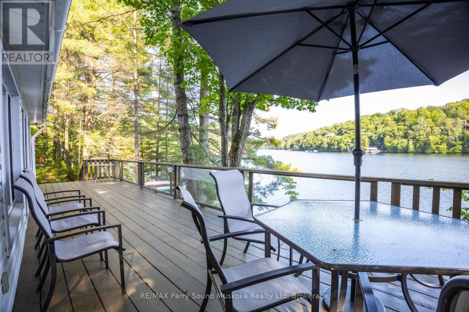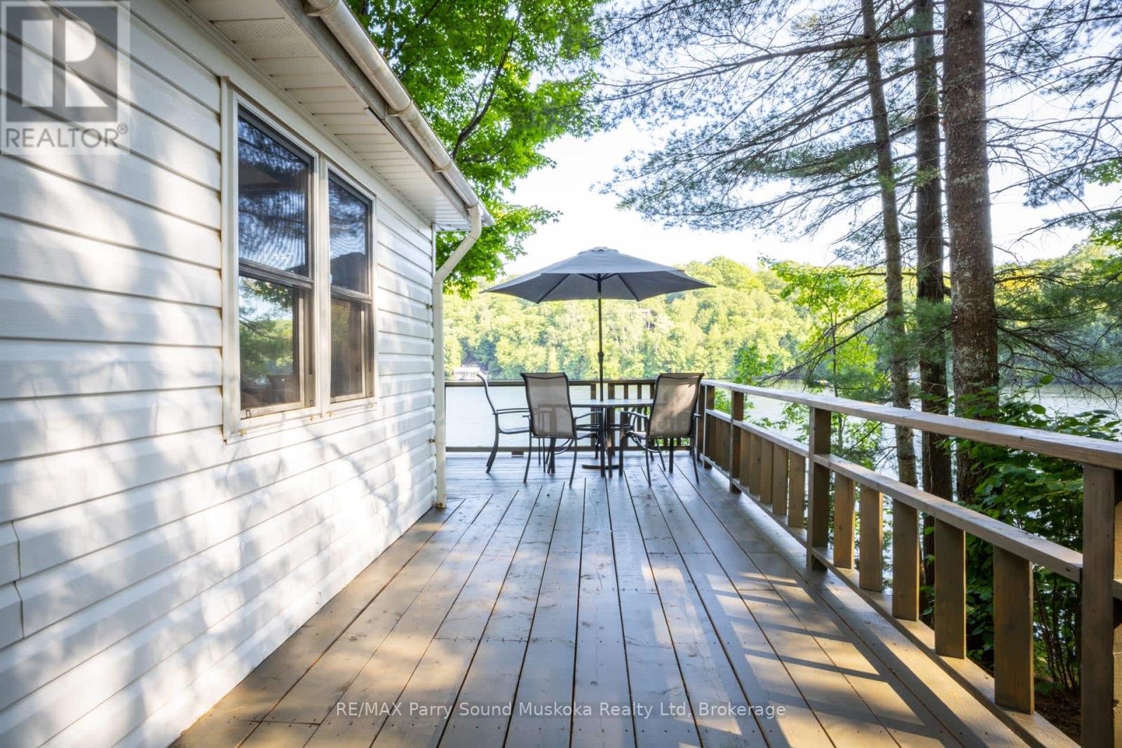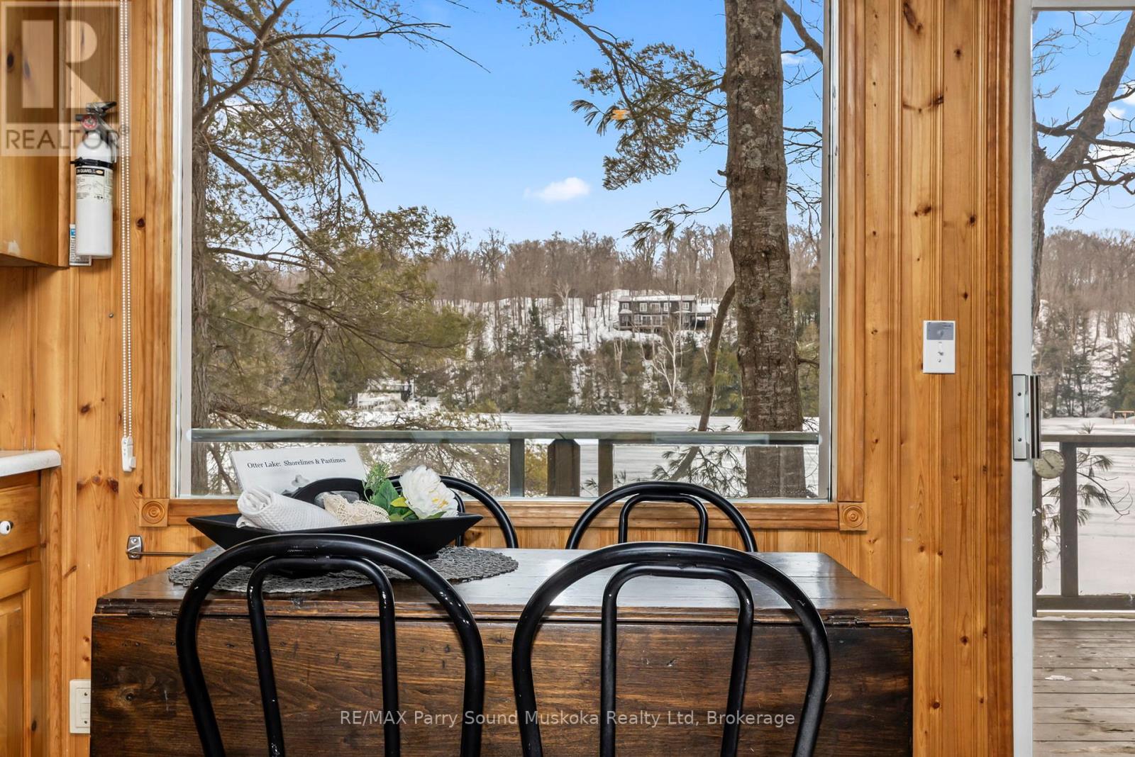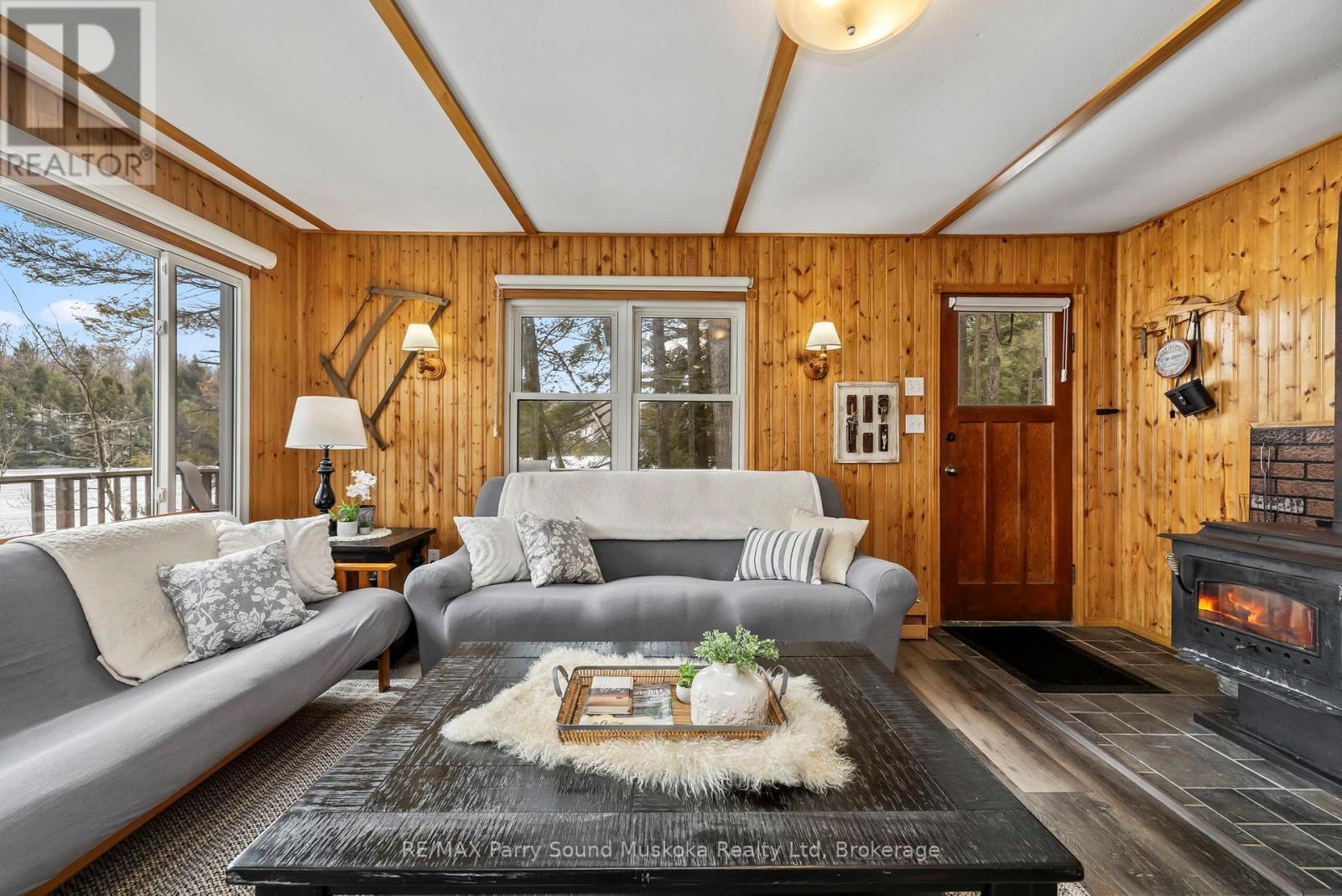 Welcome to charming 4 Post Lane in Seguin Township. Offered for the first time, this cozy 2-bedroom, 1-bath seasonal cottage sits on the desirable long arm of Otter Lake and captures the true spirit of cottage living. Nestled among mature trees and natural rock, the property offers beautiful panoramic lake views from both inside the cottage and the outdoor spaces. The open-concept living, dining, and kitchen area is bright and welcoming, with windows that showcase stunning morning sunrises over the water. A spacious deck extends the living area outdoors, while the dock enjoys sun all day until evening - perfect for relaxing, reading, or enjoying morning coffee by the lake. Otter Lake is known for its crystal-clear, spring-fed water, ideal for swimming, canoeing, kayaking, fishing, boating, and water skiing. With the cottage set close to the shoreline, you'll feel completely connected to the water. A cherished family retreat for many years, this special property is a turnkey investment and ready for new owners to begin creating their own unforgettable cottage memories. (id:64974)