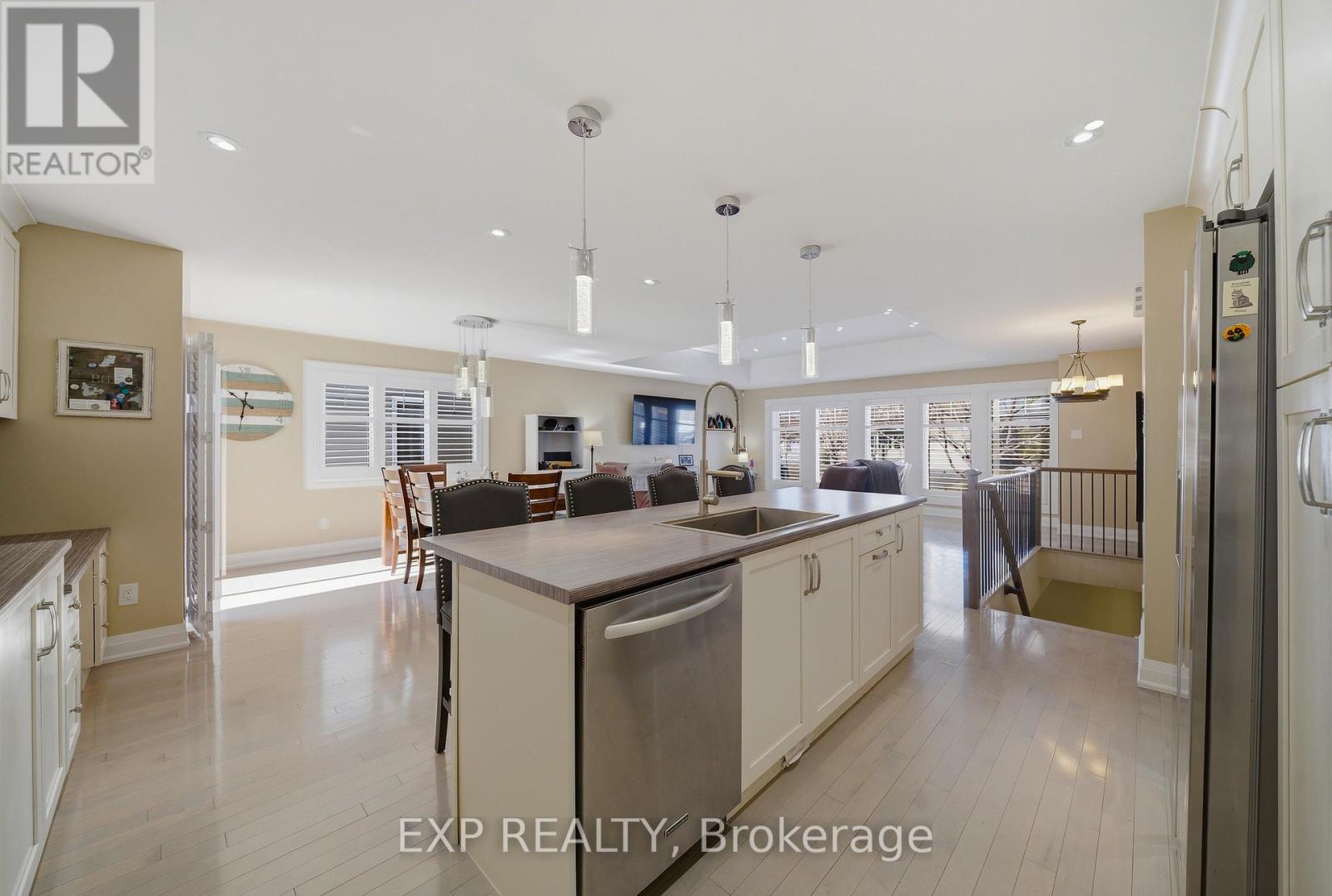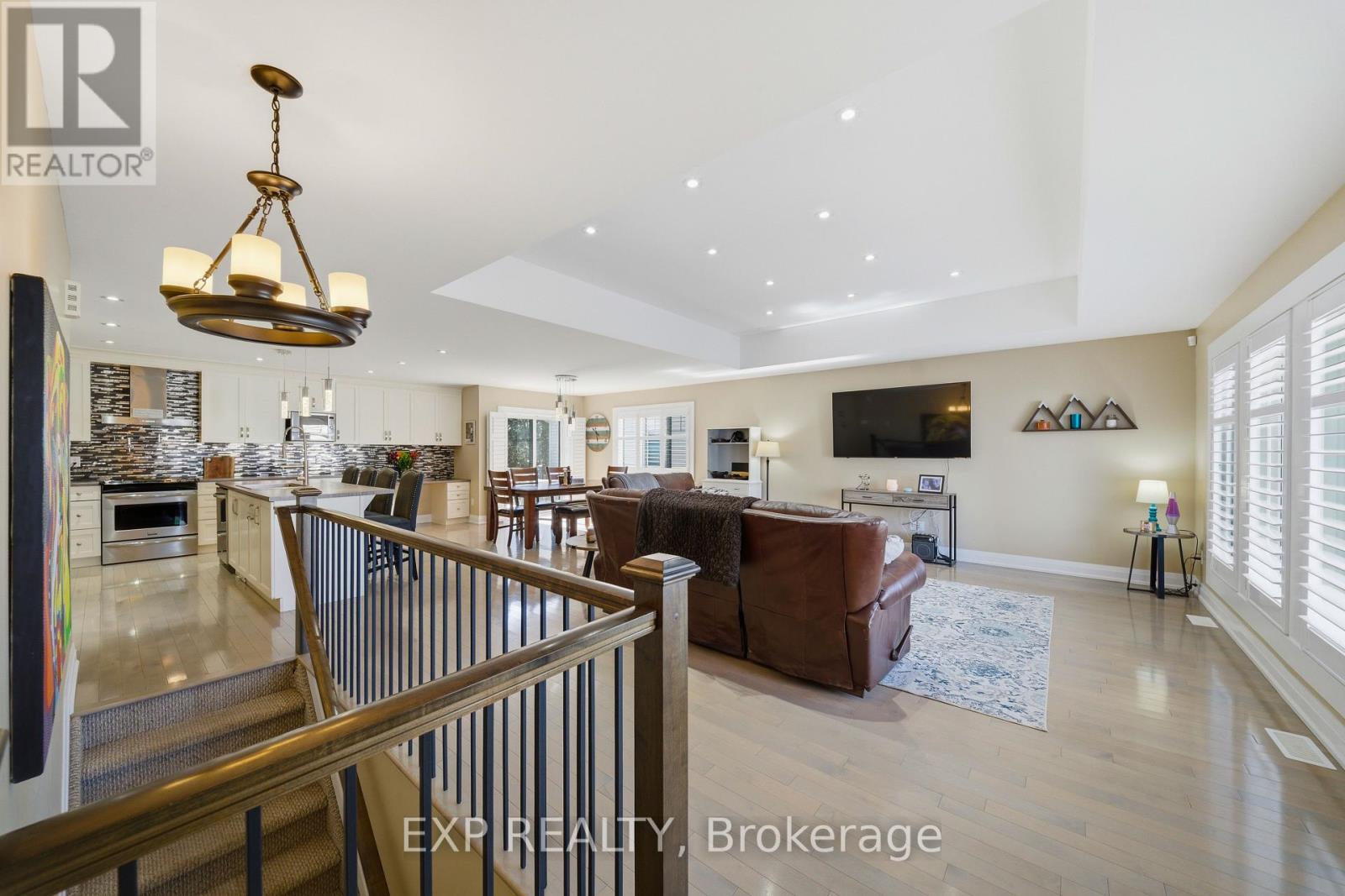 Whether you're upsizing or downsizing, 4 Provost offers the perfect balance of space.This beautifully maintained 5-bedroom, 4-bathroom bungalow is designed to adapt to any lifestyle. Step inside to a bright, functional layout featuring generous living and dining areas, enhanced by hardwood flooring, pot lights throughout, and custom-fitted blinds.The kitchen is both stylish and practical, complete with extended cabinetry, pot filler and stainless steel appliances - perfect for everyday living and entertaining.Tucked away for privacy, the main level offers three well-sized bedrooms and two full bathrooms, creating an ideal family-friendly layout.The fully finished lower level expands your living space with two additional bedrooms, two spacious recreation areas, and a 4-piece bathroom - perfect for extended family, guests, or multigenerational living.Enjoy year-round comfort and convenience with a double car heated garage with built-in shelving, along with the added peace of mind of a generator.Set on a rare pie-shaped lot, this home offers exceptional outdoor living with a finished deck, gazebo, landscaped backyard with fire pit, hot tub wiring (hot tub excluded) and a storage shed - perfect for relaxing or entertaining. (id:64974)