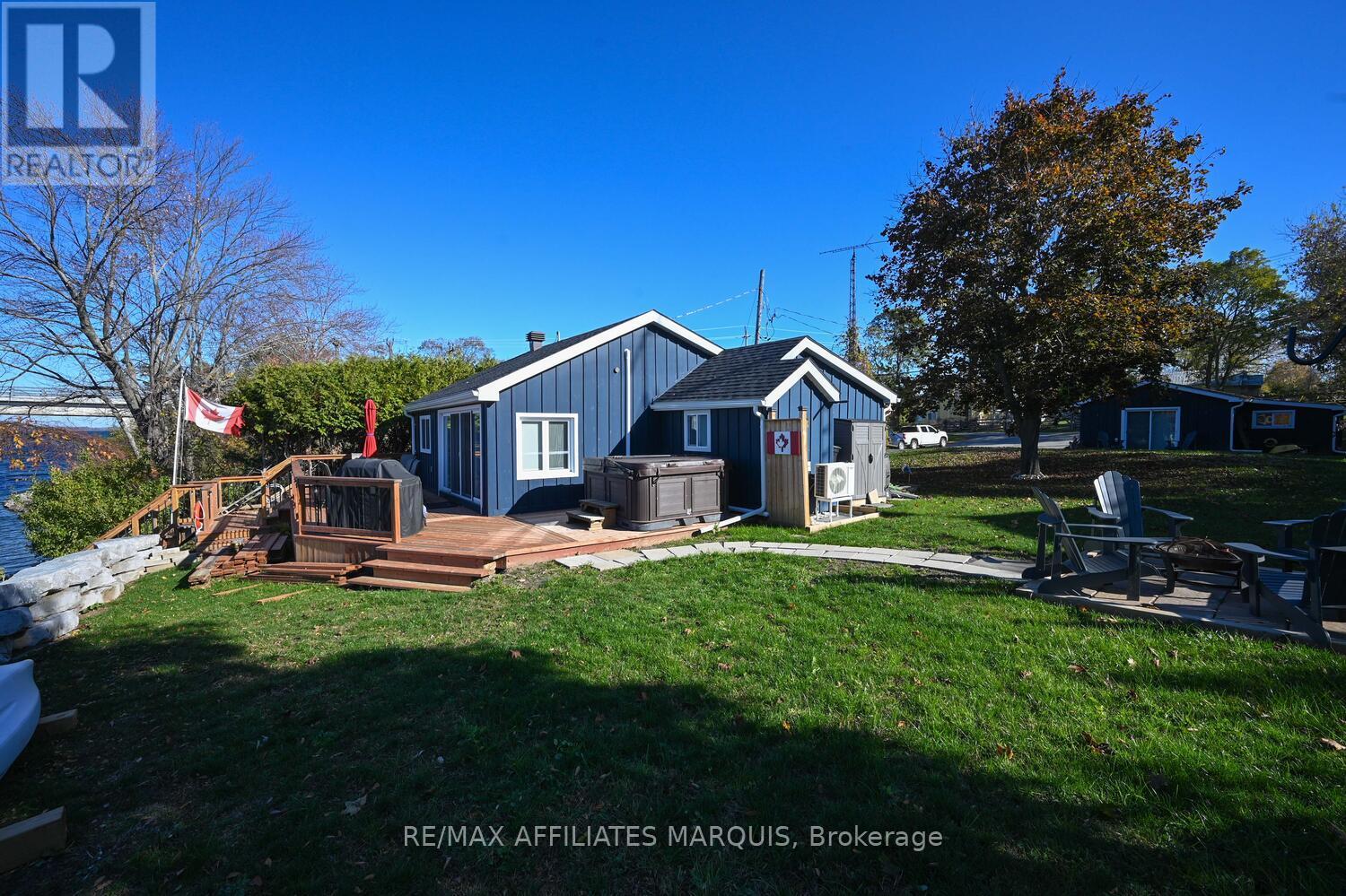 If you're searching for sunsets, pristine water, miles of boating, and a turn-key furnished waterfront getaway - welcome home. Nestled on the shores of Big Rideau Lake in the heart of Rideau Ferry Village, this charming property offers everything you could ask for in a lakeside retreat. Enjoy panoramic views of the harbour, the iconic bridge, and the picturesque village skyline, all within walking distance to CC's Waterfront Restaurant and the Rideau Ferry General Store. Imagine the kids strolling over for an ice cream cone or walking to dinner after a day on the water, then returning home to unwind in the hot tub as the sun sets over the lake. Located on a paved road just off a County Road, this property provides easy access for commuters to Perth, Smiths Falls, and beyond - a rare combination of tranquility and convenience. You'll also appreciate having high-speed fibre internet, making it easy to stay connected while enjoying lake life. Over the past three years, this property has undergone wonderful renovations, blending modern comforts with timeless cottage charm. The two-bedroom main dwelling and separate two-bedroom guest cabin offer ample space for family and guests, each designed with comfort, functionality, and relaxation in mind. A brand-new Kehoe Marine dock (to be installed this month) ensures the perfect spot for swimming, sunbathing, or mooring your boat in this protected no-wake zone. Gather around the firepit for memorable evenings under the stars, watch boats drift by from your dock, or explore the countless coves and islands of this UNESCO World Heritage waterway. Sold fully furnished, this is a true turn-key opportunity - simply grab the keys and start enjoying everything Big Rideau Lake has to offer. Opportunities like this in the heart of Rideau Ferry are rare - offering not only a coveted waterfront lifestyle but also the perfect balance of comfort, connection, and convenience. (id:64974)