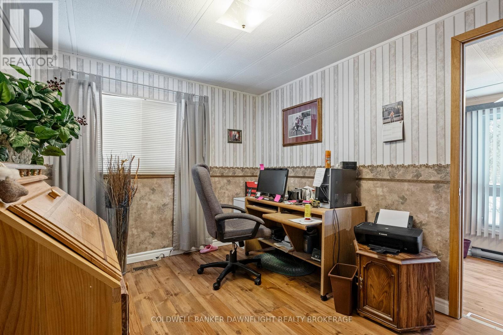 Welcome to 4 Redford Drive, located in Riverview Estates, Exeter's premier mature lifestyle community. This well maintained home offers more space than meets the eye, featuring multiple living areas designed for comfort and functionality. Inside, you'll find a bright and inviting living room with generous natural light from large front windows. The home includes two bedrooms, with the primary suite offering a walk in closet and convenient two piece ensuite. A four piece main bathroom and main level laundry add to the home's practicality. At the rear of the home, a flexible office space could easily serve as a third bedroom, while the additional living room features a cozy gas fireplace, perfect for relaxing or entertaining. The backyard offers a sense of privacy and includes a garden shed for extra storage. Recent updates include a newer furnace and central air system, ensuring year-round comfort. As part of Riverview Estates, residents also enjoy access to a spacious community centre equipped with games rooms and kitchen facilities, ideal for hosting larger gatherings and celebrations. This is a wonderful opportunity to enjoy easy, community focused living in a thoughtfully cared for home. (id:64974)
