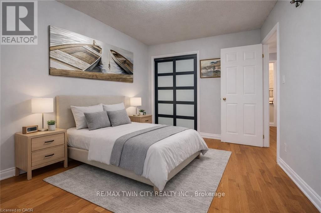SOLID BRICK BUNGALOW WITH IN-LAW POTENTIAL, IN WEST GALT'S MOST COVETED POCKET. Thoughtfully updated over the years with over $81k in recent improvements, this entirely CARPET-FREE, CORNER LOT home is truly turn-key and move-in ready. Parking allows up to 7 vehicles including garage. Step inside to a seamless open-concept flow on the main level, featuring a spacious, sundrenched kitchen, formal dining area, and a cozy living room anchored by massive windows that offer gorgeous views of the mature, tree-lined street. The primary retreat is a standout, complete with double closets, a modern ensuite with a walk-in shower, and a private walk-out to your low-maintenance backyard oasis. Two additional sizeable bedrooms, a full 4-piece bathroom, and a second backyard walk-out complete this wellappointed main floor. The lower level is beaming with potential for an in-law setup - featuring a 4th bright bedroom, an expansive rec room, a powder bath, and direct access to the garage via its own separate man door entrance. Located in the heart of West Galt, you are a 2-minute walk to the scenic Walter Bean Trail and 5 minutes from the 401, the historic Gaslight District, and more. Recent updates include: Full Bathroom Refresh (2026), all Windows, Fence & Deck (2023), Hardwood Floors (2019) (id:64974)
