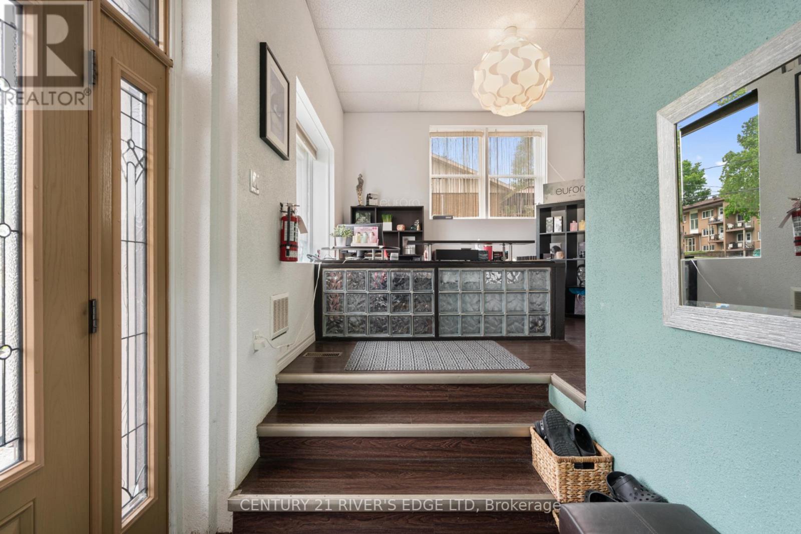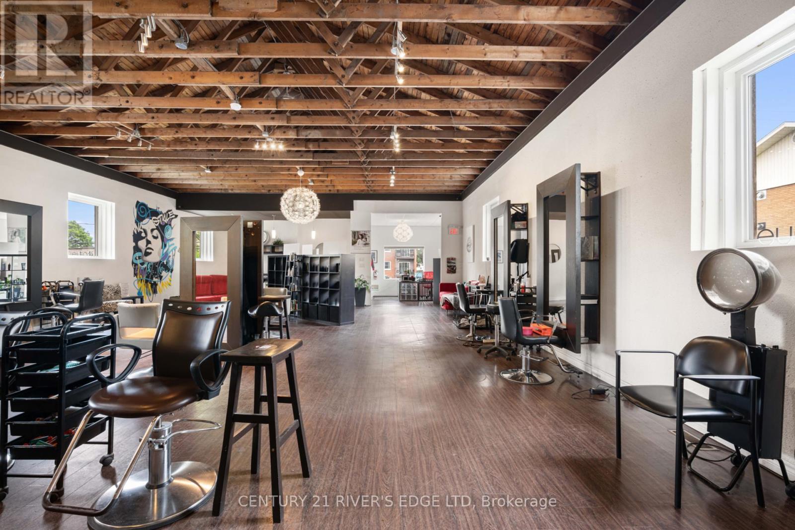 Are your looking for commercial investment space with easy access to the 401 and a steady income in place? Are you looking to start your own Spa/Hairstyling business. Selling with the business or without. Welcome to 4 Schofield Avenue, located centrally and just south of the 401. Close to schools, shopping, a good residential base and an easy walk to the downtown and riverfront area. The building is a wood frame structure on a block foundation offering approximately 3900 Sq Ft of total work space on both levels. See floor plans in Pics. Improvements to the building include roof, siding, windows and doors, wiring, plumbing and heat. The driveway goes completely around the building providing easy enter and exit with ample parking spaces. Currently the upper level and several rooms on the lower level are occupied by the "Elite Spa and Boutique", and specialized tenants, with approximate income of $3150.00 monthly, month to month rental. Its turn key offering with the work stations and accessories and related equipment included with the sale. Take the video tour and view the pictures attached to tell you more about this opportunity being offered. And if you have another use in mind, please check with the City regarding zoning and uses and make it yours. (id:64974)