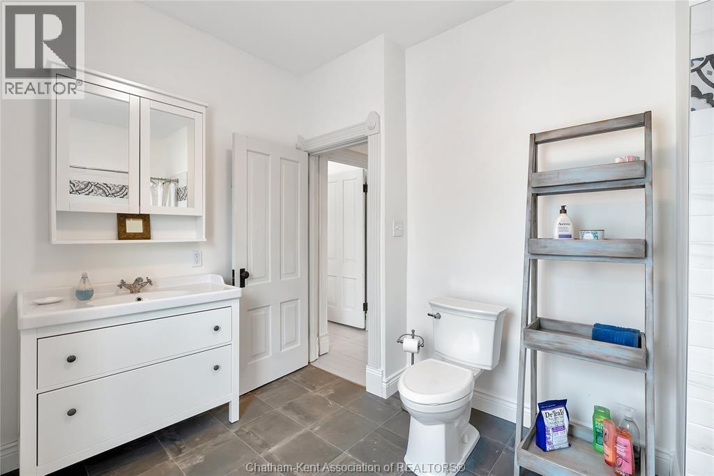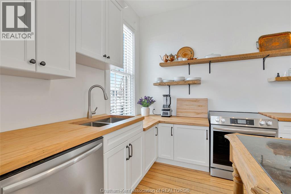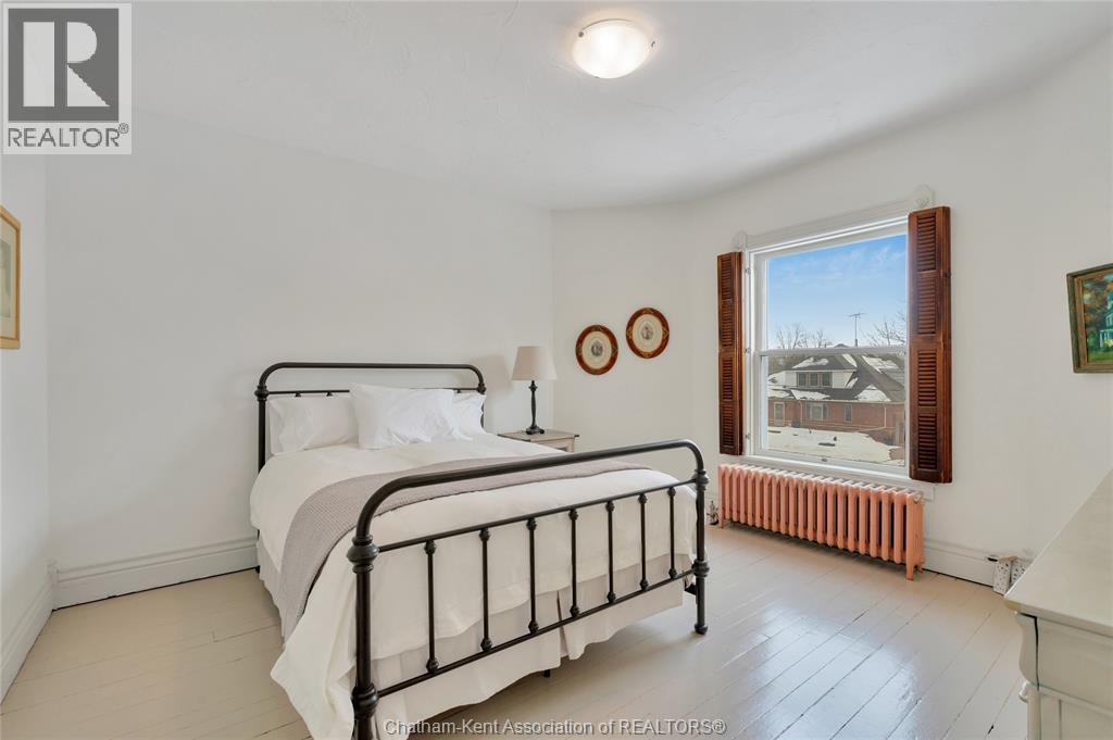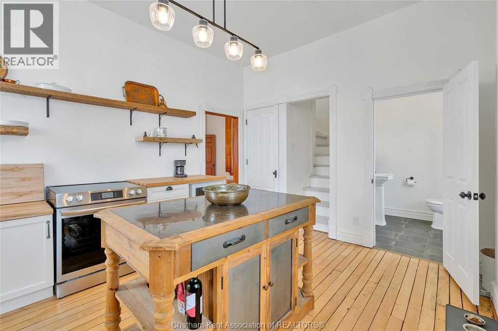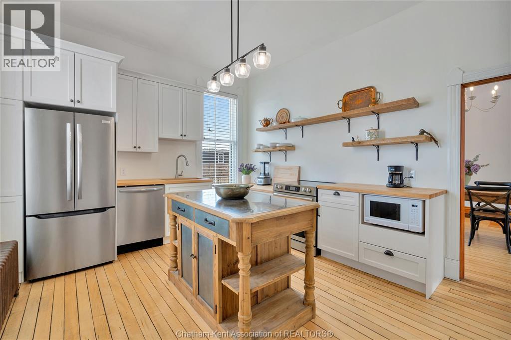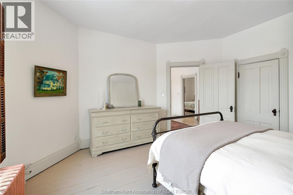 This classic Victorian home in the heart of Thamesville offers exceptional space, craftsmanship, and timeless character. Set on a fully fenced 0.63-acre lot, the property features a gated entry, mature trees, and a welcoming pillared front porch that creates an impressive first impression. Inside, soaring ceilings and original architectural details shine, including rich woodwork, elegant archways, pocket doors, and hardwood flooring throughout. The main floor offers a traditional front parlour, a comfortable living room with decorative fireplace, and a spacious dining room that flows seamlessly into a beautifully updated kitchen (August 2025). Both the main-floor powder room and upper full bathroom were also renovated in August 2025, blending modern comfort with historic charm. A newer boiler (2022) adds efficiency and peace of mind. With six bedrooms, the home offers outstanding flexibility for growing families, home offices, guests, or creative space. The unfinished attic provides excellent potential for additional living area, while the full basement offers abundant storage and utility space. Front porch shingles were replaced in 2025, enhancing curb appeal while preserving the home’s classic aesthetic. Situated on a quiet side street, the setting feels private and estate-like, yet remains within easy walking distance of Main Street shops, parks, the community centre, and pool. Properties offering this rare combination of lot size, architectural character, updates, and location are seldom available and truly best appreciated in person. (id:64974)