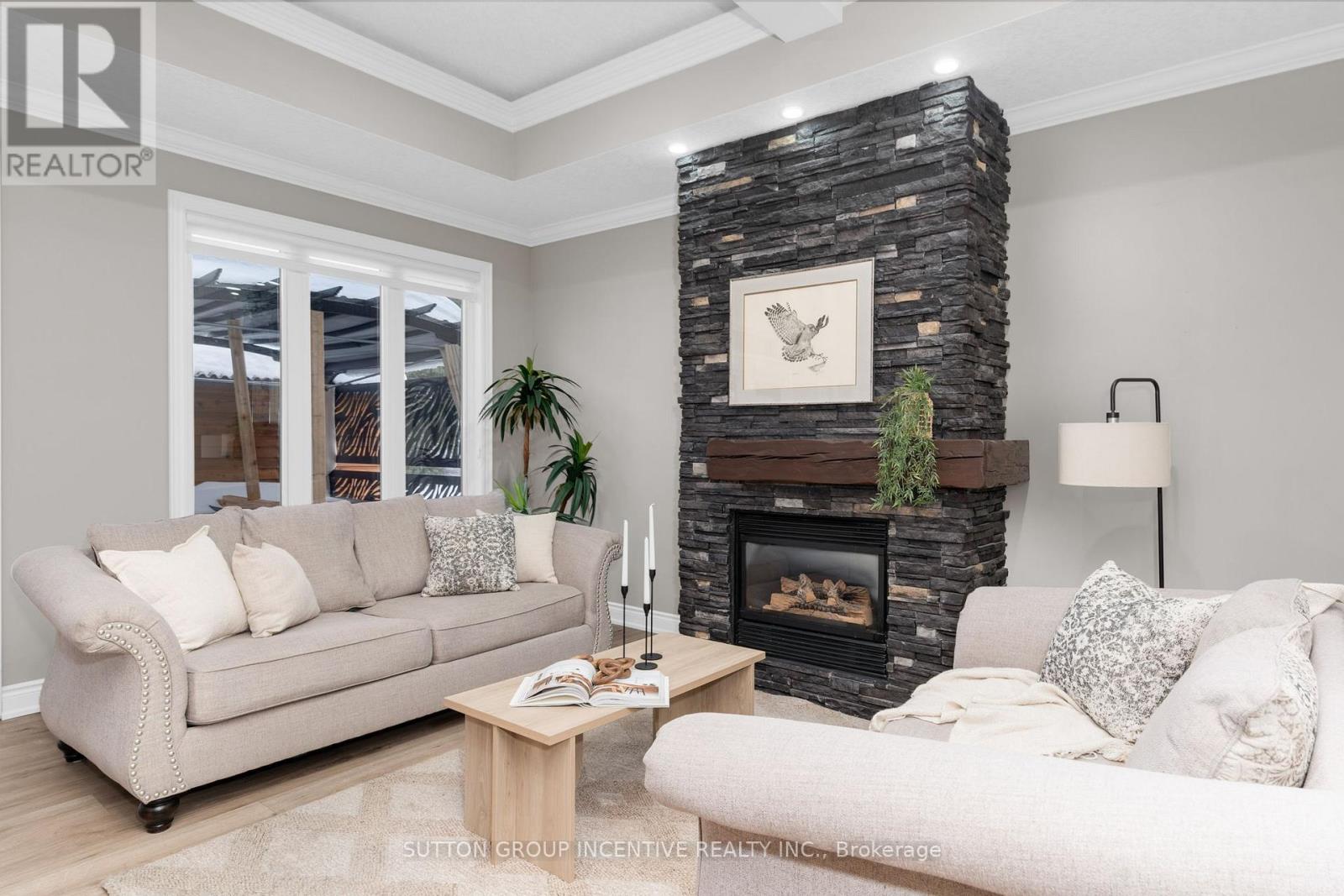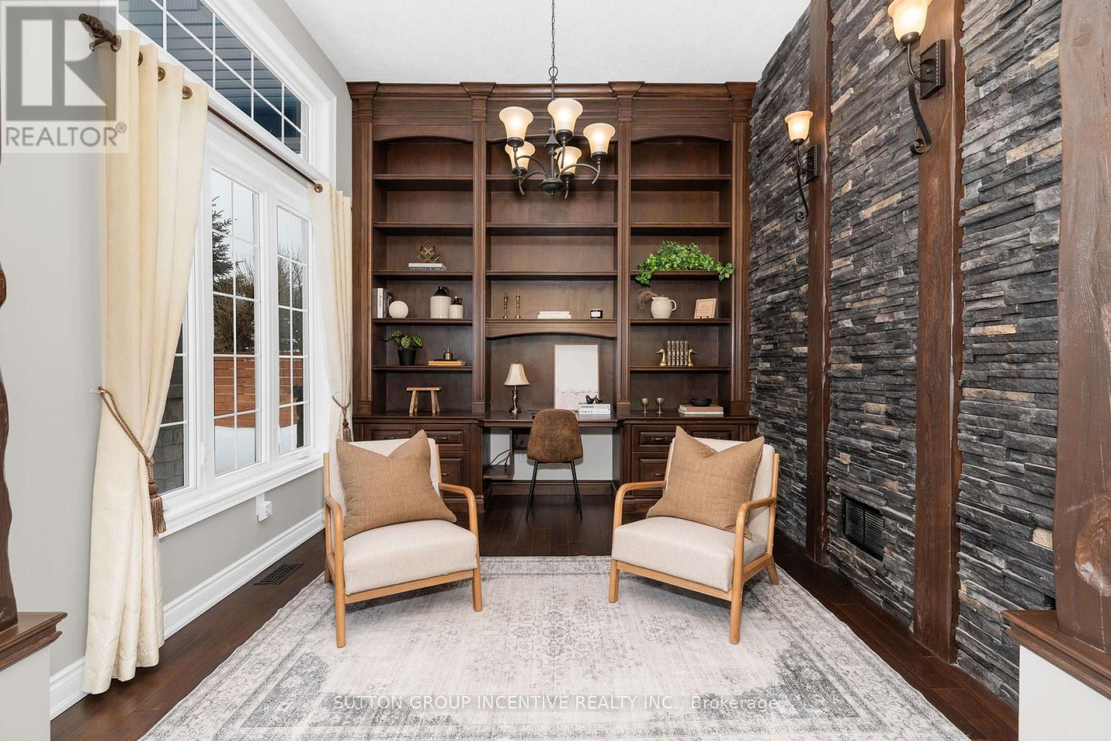 This stunning custom-built stone and stucco home offers exceptional curb appeal and style with over 100k in recent upgrades. Step inside to a grand office featuring custom cabinetry, stone accents, timber beams, and soaring ceilings - the perfect workspace to inspire productivity and creativity. An open-concept layout flows seamlessly from the kitchen through the living and dining areas, showcasing gorgeous new premium flooring (2024). The kitchen is a true showpiece with refreshed cabinetry equipped with pull down accessible shelving, quartz countertops which extend into the backsplash (2025), under-cabinet lighting, built in wall appliances, induction style stovetop and a striking coffered ceiling that adds a touch of sophistication. Step outside to the private backyard - complete with pergolas, a hot tub, fully fenced yard (2024), and a charming new cedar plank shed (2024). Inside, unwind in the oversized primary bedroom with a spacious walk-in closet and a luxurious spa-like ensuite. Two additional large bedrooms and a beautifully finished 4-piece bathroom offer plenty of space for family or guests.The lower level impresses with an expansive open-concept family room, a stylish bar, custom wine cellar, and new premium flooring throughout. A fourth bedroom, additional bathroom, and an infrared sauna complete this incredible space - ideal for entertaining or the perfect space for extended families looking for their own private area. The fully finished, heated garage with sleek epoxy flooring is the perfect spot to store your summer wheels in style! (id:64974)