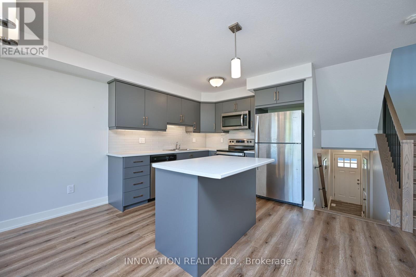 NO REAR NEIGHBOURS! ALL UTILITY COMPONENTS ARE OWNED OUTRIGHT - NO RENTAL FEES TO WORRY ABOUT! This home backs directly onto the Cataraqui Trail, one of only a few townhomes offered with this PREMIUM location.Step off your back deck and go for a jog, a leisurely walk or a bike ride. Tons of upgrades included in this price. The kitchen features a custom tile backsplash, stainless steel appliances, soft-close cabinetry, & a centre island. Afternoon sun pours in through the dining room patio doors, leading out to the rear deck and west-facing backyard-perfect for relaxing evenings. The second level includes two generously sized bedrooms with laminate flooring, along with a main four-piece bathroom. The top floor is a true owner's retreat, tucked behind double French doors and featuring a walk-in closet, and four-piece ensuite with glass tiled shower. A convenient upper-level laundry room is just steps away, complete with a stackable washer and dryer.The lower-level family room offers soaring ceilings and plenty of natural light, making it ideal for a play space or family movie nights. Additional upgrades and features include A/C, central vac rough-in, and hardwood stairs to each level. Walking distance to elementary schools, grocery stores, Canadian Tire, Starbucks, Walmart, LCBO, and more.Tarion warranty coverage is in place until April 2028 for added peace of mind. (id:64974)