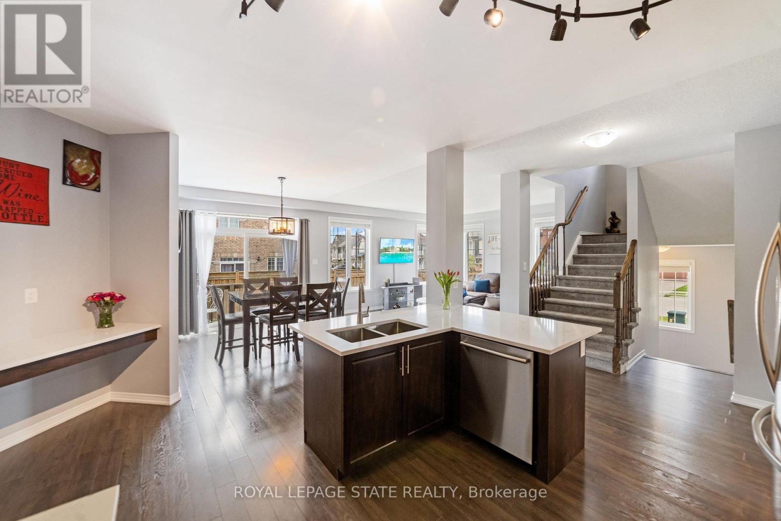 Welcome to this beautifully maintained & charming four-bedroom, three-bathroom home, ideally situated on a spacious corner lot, highlighted by a classic wrap-around porch. From the moment you arrive, the striking double front-door entry sets the tone for the warm & inviting interior. Inside, a bright open-concept main level flows seamlessly, creating a cohesive & functional layout ideal for modern family living. Neutrally painted throughout, the home features stylish laminate flooring across the main level & updated carpet installed in 2025 on the upper floor, adding comfort & continuity throughout. A versatile dining room provides flexibility to serve as a secondary family room or play area, while a dedicated office provides the perfect space for working from home. The heart of the home is the sleek, contemporary kitchen, complete with quartz countertops(2025), a walk-in pantry, & a built-in coffee nook. Large sliding glass doors extend the living space outdoors to a spacious, unspoiled backyard-a blank canvas with endless potential for entertaining or gardening. Interior access to the two-car garage from the kitchen adds everyday convenience. Upstairs, 4 bedrooms feature comfort & privacy for the entire family. The spacious primary bedroom is a true retreat, featuring two walk-in closets & a well-appointed ensuite with a soaker tub, double sinks, & a separate shower. The 1,200+ sq. ft. unfinished bsmt provides outstanding future potential & is already equipped with an entertainment system including a projector, screen, & sound system. Additional valuable features throughout the home include a built in central vacuum, an air exchanger, & a wired-in alarm system, providing both comfort & peace of mind. Ideally located close to schools, parks, & shopping, this exceptional home combines thoughtful upgrades, functional design, & a prime location. This is a fantastic opportunity to own a truly move-in-ready family home in one of the area's most sought-after communities. (id:64974)