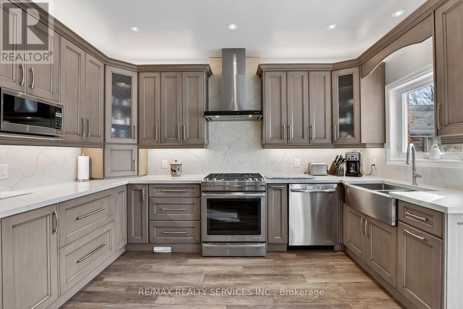 Welcome to one of Caledon's most sought-after neighbourhoods of Valleywood. Ideally located just off Highway 410, this home offers exceptional convenience for commuters while being close to excellent schools, scenic nature trails, the local library, and a large community park complete with soccer fields and a playground.This beautifully-maintained raised bungalow offers just over 1,500 sq ft on the main level, featuring an open-concept living and dining area designed for comfortable and effortless entertaining. The living room impresses with a soaring cathedral ceiling, creating a bright and inviting space to gather with family and friends.The renovated kitchen is a true showpiece, boasting custom modern cabinetry, quartz countertops, a centre island with breakfast bar for casual meals, and abundant storage. A Walk-out to the deck extends your living space outdoors, perfect for Summer barbecues (gas hook-up) and relaxing evenings.The main floor features three bedrooms, including a primary retreat complete with a private 3-piece ensuite. A renovated 4-piece bathroom serves the additional bedrooms. Convenient main floor laundry with direct access to the two-car garage adds to the home's functional layout.The fully finished basement provides additional living space, featuring a spacious rec room with a gas fireplace and a wet bar with full-size fridge, ideal for entertaining or family movie nights. A 4th bedroom and a 3-piece bathroom offer flexibility for guests or extended family, while an additional unfinished area presents the perfect opportunity to create a fifth bedroom, if desired. With above-grade windows and ample storage, the lower level feels bright and open. Situated on a quiet court, this property offers parking for four vehicles in the driveway and no sidewalk to maintain, an added convenience year-round. An exceptional opportunity for a growing family or downsizers seeking the ease of main floor living without compromising on space. (id:64974)