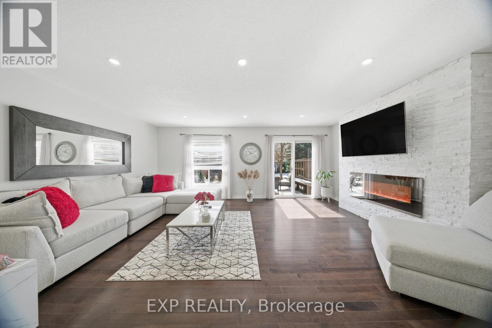 Welcome to The Boulevard, where opportunities are rare and demand is high, for good reason. Ideally situated for both convenience and lifestyle, this exceptional townhome is just minutes from a major commuter route and within walking distance to an array of amenities including shopping, restaurants, grocery stores, banks, theatres, and picturesque walking trails right outside your door. Located within close proximity to the University of Guelph and nearby places of worship, this home is perfectly positioned for families, professionals, and investors alike. Step inside to a spacious open concept main level featuring beautiful flooring throughout, a stylish kitchen designed for entertaining, and a bright, expansive living room with a walkout to a private deck-perfect for relaxing or hosting guests. The fully finished basement offers incredible versatility with a complete in-law suite, including a full kitchen, two bedrooms, a 3-piece bath, abundant pot lights, large windows for natural light, and its own laundry. Upstairs, generously sized bedrooms provide comfort for a growing family, while the primary suite impresses with a walk-in closet and private ensuite. Convenient upper-level laundry adds to the home's thoughtful design. Enjoy a landscaped backyard ideal for outdoor living, plus the added benefit of a low condo fee, making this exceptional home as affordable as it is desirable. Don't miss your chance to call this sought-after community home. (id:64974)