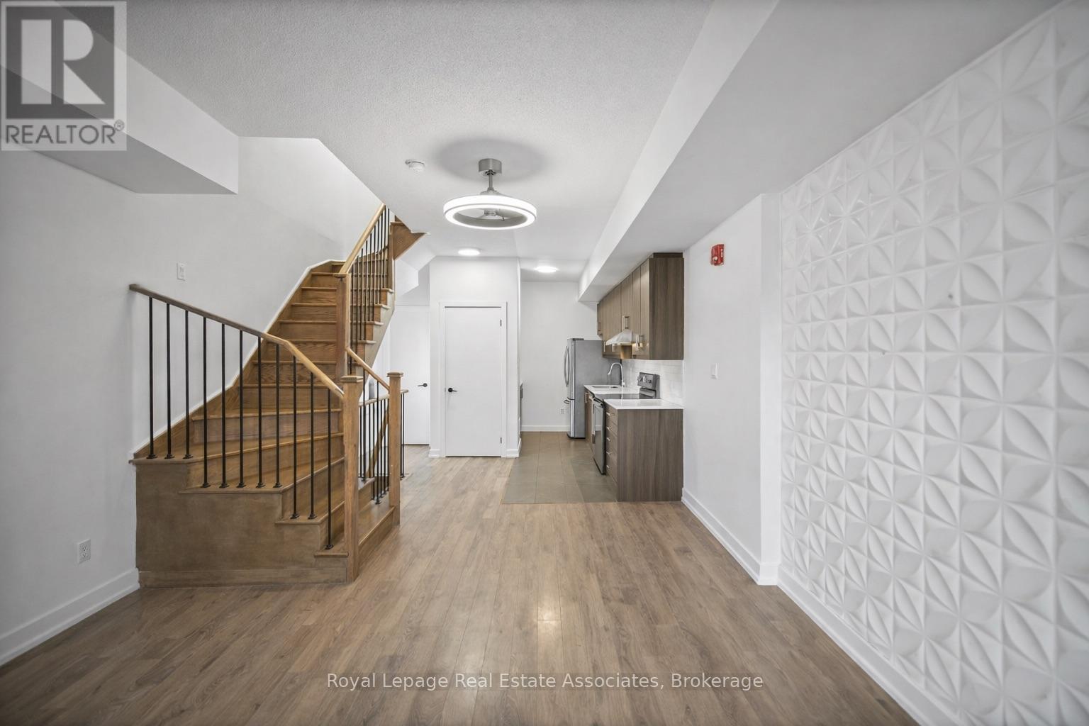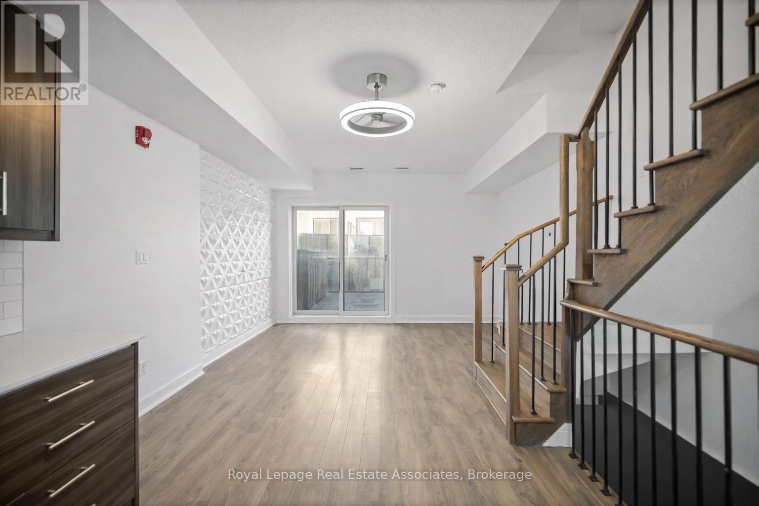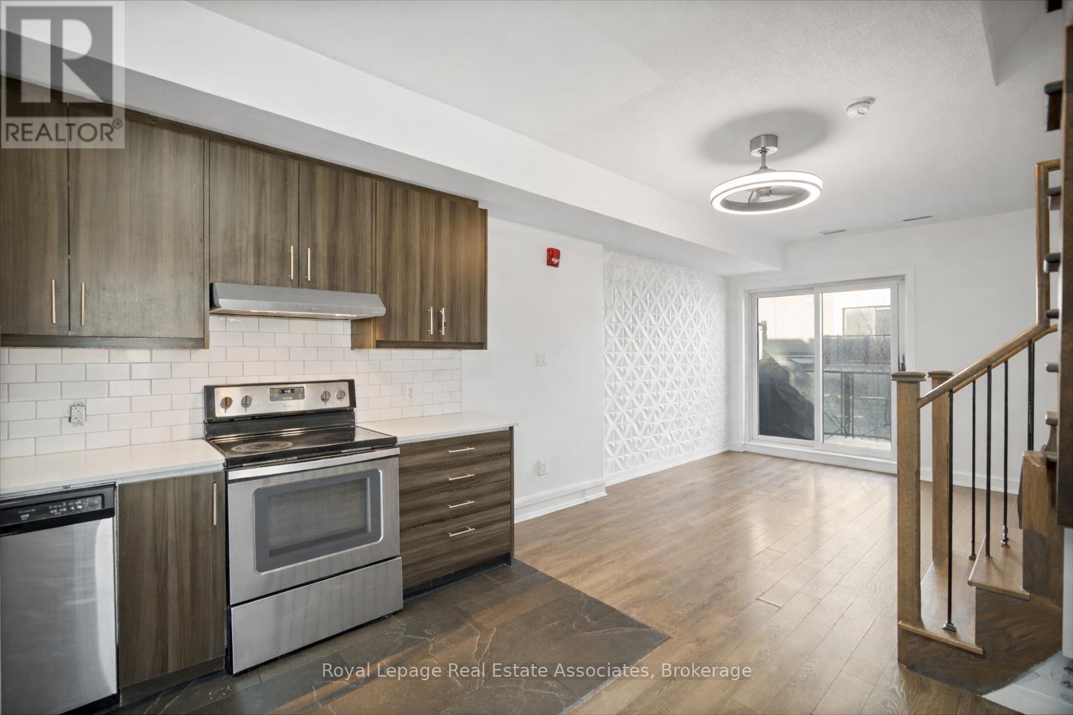End unit 3-storey townhome offering 3 bedrooms, 3 bathrooms, and 1,334 sq ft of living space. The sun-filled open concept main floor features 9' ceilings and a bright, functional layout. The kitchen includes stainless steel appliances and a convenient nook for additional counter space and storage. The home has been freshly painted and features hardwood floor & tile throughout. The primary bedroom includes a walk-in closet and a fully renovated 4-piece ensuite, while the second and third bedrooms offer flexible space for family, guests, or a home office. Additional features include underground parking, locker and maintenance fees that cover: water, garbage removal, window cleaning, snow removal, and landscaping. Conveniently located near the UP Express and with quick access to Highways 401 and 400. (id:64974)