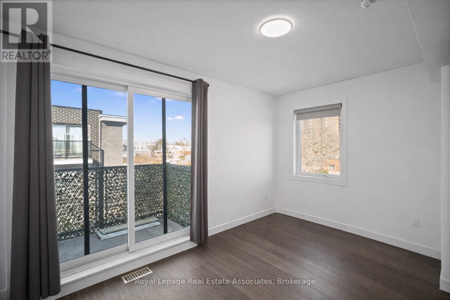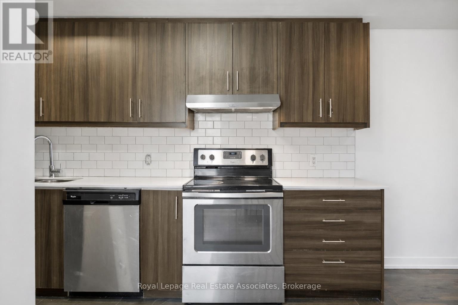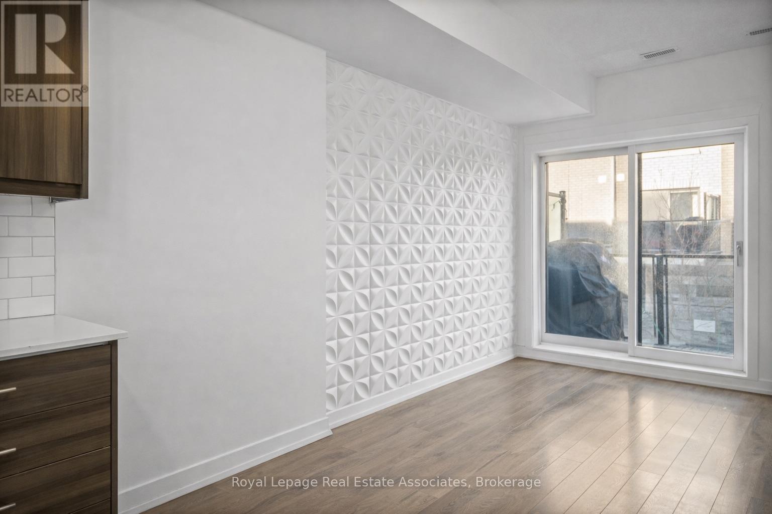 End unit 3-storey townhome offering 3 bedrooms, 3 bathrooms, and 1,334 sq ft of living space. The sun-filled open concept main floor features 9' ceilings and a bright, functional layout. The kitchen includes stainless steel appliances and a convenient nook for additional counter space and storage. The home has been freshly painted and features hardwood floor & tile throughout. The primary bedroom includes a walk-in closet and a fully renovated 4-piece ensuite, while the second and third bedrooms offer flexible space for family, guests, or a home office. Additional features include underground parking, locker and maintenance fees that cover: water, garbage removal, window cleaning, snow removal, and landscaping. Conveniently located near the UP Express and with quick access to Highways 401 and 400. (id:64974)