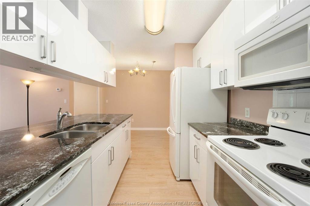 WATERFRONT CONDO, TOP FLOOR! Features an open concept kitchen with updated cupboards and quartz countertops, Liv rm with updated flooring, patio with views of the River. Primary bedrm with a 4 pce ensuite, 2nd bedrm. with updated 4 pce. adjacent bath, in-suite laundry and storage room. Updated furnace and C/A. (id:64974)
