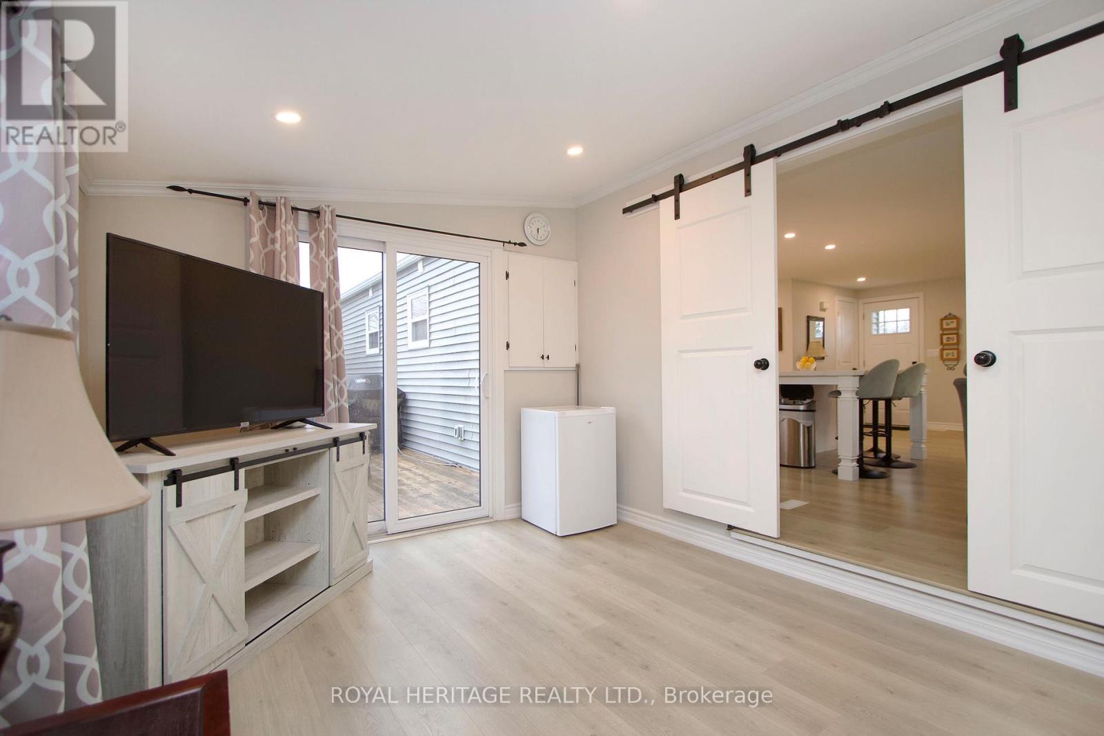 Beautifully Remodeled Bungalow in The Sought After Adult Community of Wilmot Creek on The Shores of Lake on Ontario. Landscaped Interlocked Walk Way Welcomes You to Walk Into a Bright and Spacious Open Concept Living Space, Perfect for Entertaining. Home is Neutral, Warm Colors. Beautiful Built-Ins in Living Room Allow For Loads of Storage. Gas Fireplace and Pot Lighting. Stainless Steel Appliance, Quartz Countertops, Ceramic Backsplash and Large Island Complete the Open Concept Kitchen. Barn Doors Open to Extra Living Space Overlooking Backyard With Walkout to Deck and Hot Tub. Bathrooms Have Heated Flooring. Programable Thermostat. This Home is Move In Ready. Smoke Free . Maintenance/Lease 1300.00 ( + House Taxes 159.69 ) Per Month- Include Use of Golf Course, 2 Heated Swimming Pools, Gym, Tennis /Pickleball Courts. With Lots of Activities to Participate In, Don't Wait to Live This Amazing Lifestyle . Pet Friendly. (id:64974)