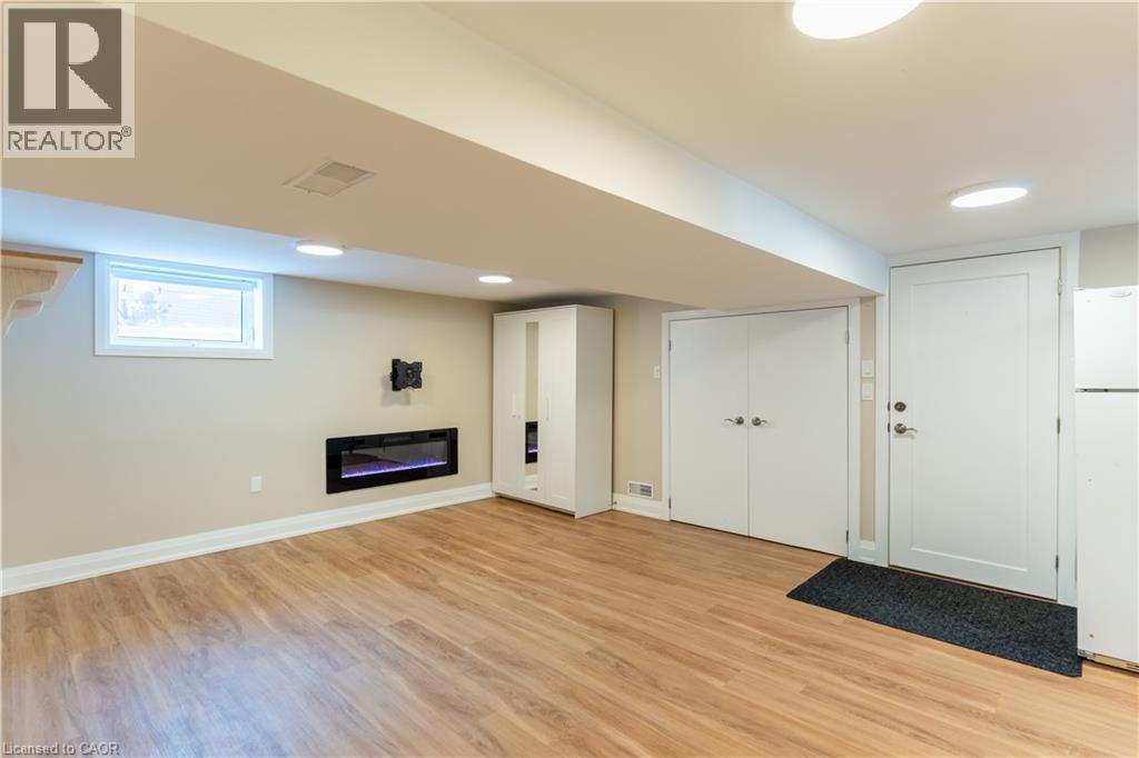 Welcome to 40 Concord Ave in the heart of Dundas! This bright and beautifully finished lower-level unit offers a modern 2 bedroom, 1 bath layout in a quiet, established neighbourhood. The space features a spacious open living area with updated flooring, pot lights, and a sleek electric fireplace, creating a warm and inviting atmosphere. Two generously sized bedrooms include large custom closets, while the updated bathroom offers a clean, contemporary finish. In-suite laundry is included for everyday convenience, along with a private separate entrance. Plenty of street parking available out front on the quiet court. Located just minutes from Dundas Driving Park, great schools, downtown Dundas shops and restaurants, McMaster, and quick highway access. (id:64974)