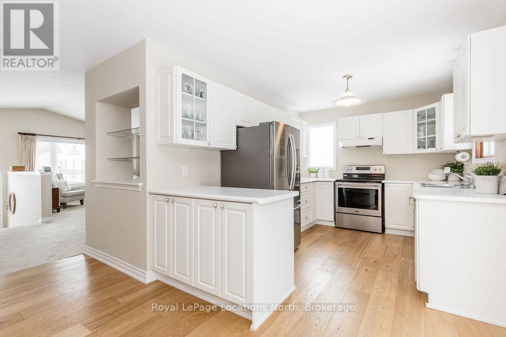 Welcome to this beautifully maintained raised bungalow set on a generous 75 x 145 ft lot in a sought-after location just steps from the golf course. This 3+1 bedroom, 2 bathroom home has been exceptionally cared for and offers a functional layout ideal for families, retirees, or anyone looking for comfortable main floor living with space to grow.The main level features vaulted ceilings and oversized windows that fill the home with natural light. Hardwood flooring flows through the kitchen and dining area, while the spacious primary bedroom offers large closets and a private ensuite with a walk-in glass shower. The bright kitchen includes newer stainless steel appliances and convenient access to the large rear deck, perfect for entertaining or enjoying quiet evenings outdoors.The lower level is partially finished with pot lights, an additional bedroom, and a bathroom rough-in already in place. The large unfinished area offers excellent potential for additional living space depending on your needs.Major updates have already been completed, including the roof (2021), furnace and A/C (2018), windows (2012), newer stainless steel fridge and stove, 200 amp electrical service, and a large rear deck. A move-in ready home in a fantastic location with the flexibility to grow and enjoy for years to come. (id:64974)