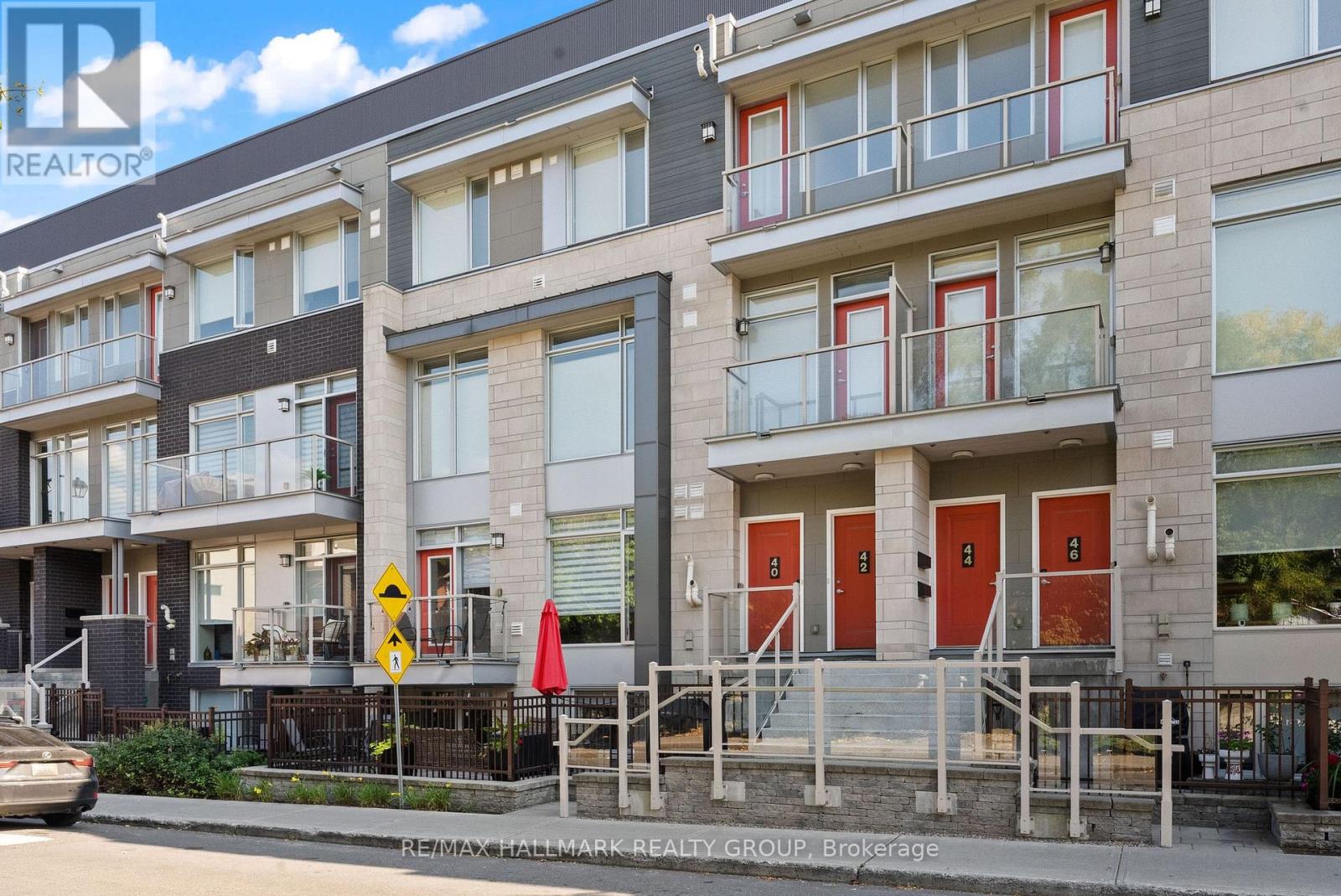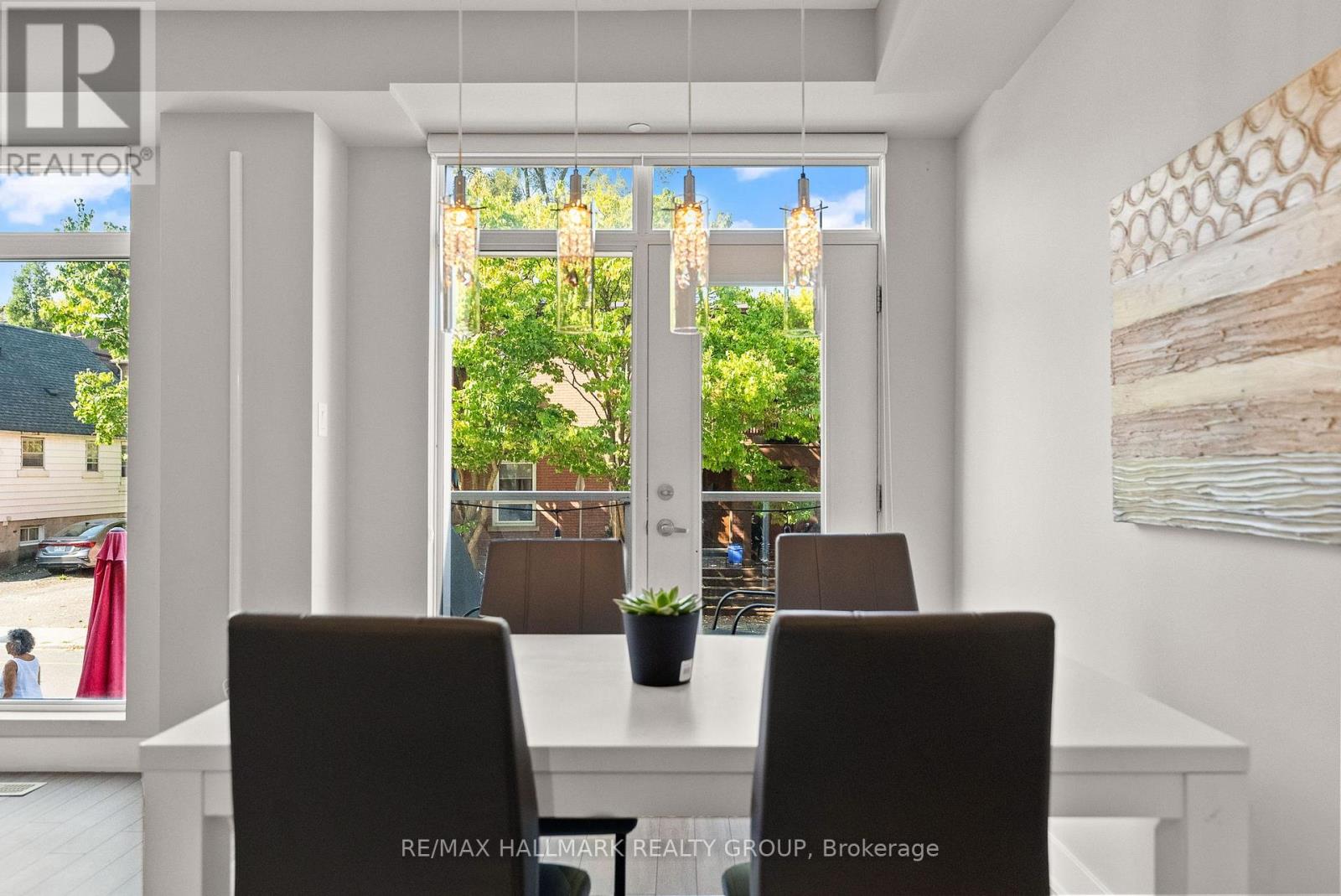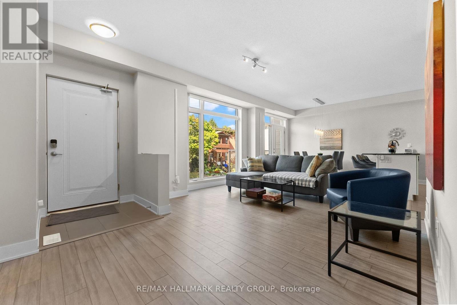 Welcome to beautifully appointed modern 2 bedroom 2.5 bath townhome in the heart of the Glebe just steps away from TD Place. Live the lifestyle you have been waiting for just steps away from the Canal, restaurants, cinema & boutique shopping. Convenient access to transit right outside your front door. 1 underground parking space, convenient balcony off the kitchen/dining area & a patio terrace with a natural gas hook up for your BBQ. This townhome boasts over 1200 ft of finished space & features high end finishes. The kitchen has quartz countertops, stainless steel appliances & a large island with a breakfast bar. Gleaming hardwood flooring & ceramic tile throughout the main floor. Spacious primary has oversized windows, a large walk in closet & a 3 Pc ensuite. Generously sized 2nd bedroom & another 4 Pc bathroom on the lower level. This is the perfect layout for 2 roommates each with their own bathroom. In suite laundry. Just move in & enjoy! This property is turnkey. (id:64974)