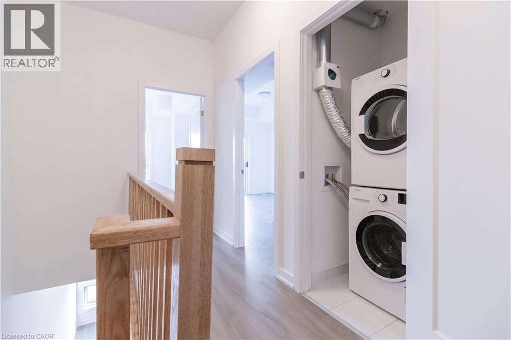 Welcome to this brand new 2-bedroom condominium townhome in Kitchener’s sought-after Parkside community, just steps from McLennan Park and Elmsdale Park. This multi-level upper unit features an open-concept living, dining, and kitchen area with a private balcony and powder room on the main level. The second storey offers two well-sized bedrooms, including a comfortable primary suite, along with a full bathroom—providing great separation of space. Modern finishes include quartz countertops, Whirlpool/Blomberg appliances, soft-close cabinetry, and laminate flooring throughout. Conveniently located minutes to HWY 7/8, with public transit at your doorstep and a short walk to Laurentian Power Centre for shopping, dining, and everyday essentials. (id:64974)