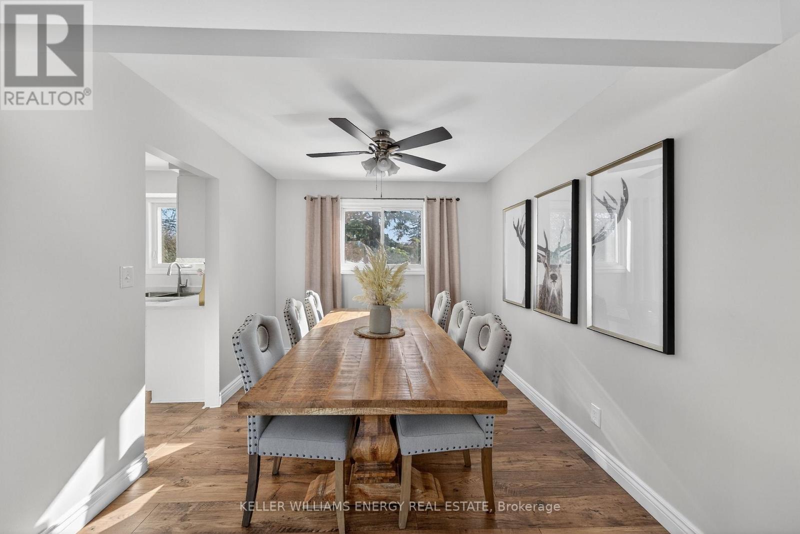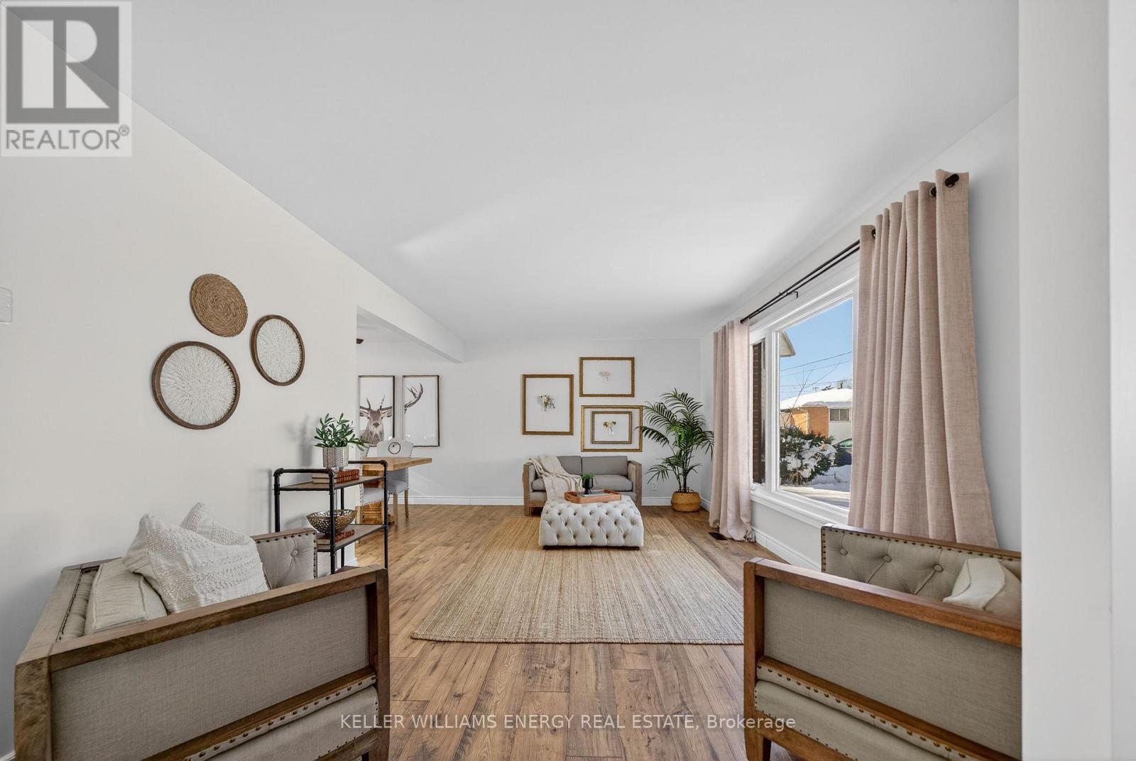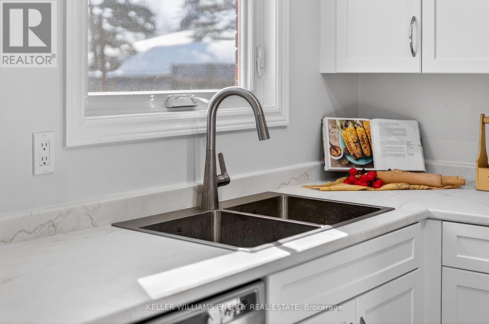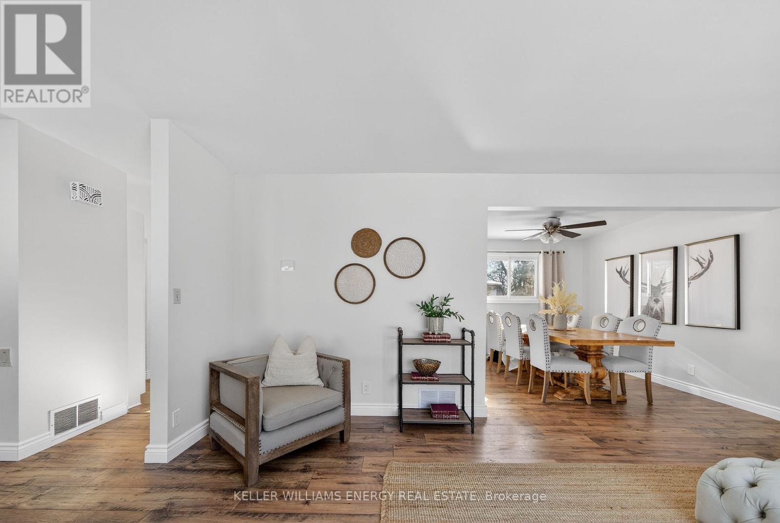 See Video & Virtual Tour links. Welcome to this beautifully updated 4-bedroom, 1.5-bath home, located on a quiet, family-friendly street in a desirable West-end Belleville neighbourhood. This move-in-ready property offers thoughtful upgrades throughout. The fully updated kitchen (2025) is the heart of the home, showcasing new stylish cabinetry, modern countertops, a deep sink with updated faucet, built-in microwave, and a breakfast bar-perfect for everyday living and entertaining. The spacious living room features ample seating space and a large bay window that fills the home with natural light. The dining room flows into both the living room and kitchen, ideal for family meals and gatherings. A convenient main-floor 2-piece bathroom, located near the carport entrance, has been updated with a new vanity and fixtures. Upstairs, you'll find four generously sized bedrooms and a refreshed 4-piece bathroom with a new vanity, vinyl flooring, and fixtures (2025), a newer bathtub and surround. Throughout the freshly painted home, all-new water-resistant laminate flooring (2025) provides a bright, cohesive finish. Additional updates include multiple newer windows (2020 & 2025). The hot water tank is owned and there is central air conditioning. Fibre optic internet is available-ideal for video conferencing, home security systems, and gaming. Enjoy a fantastic lifestyle location with walkable access to the Belleville waterfront trail, Zwick's Waterfront Park, great schools, convenience stores, box stores, quick dining options, and more. Simply unpack and enjoy-this is a well-maintained, thoughtfully upgraded home in an excellent Belleville location. (id:64974)