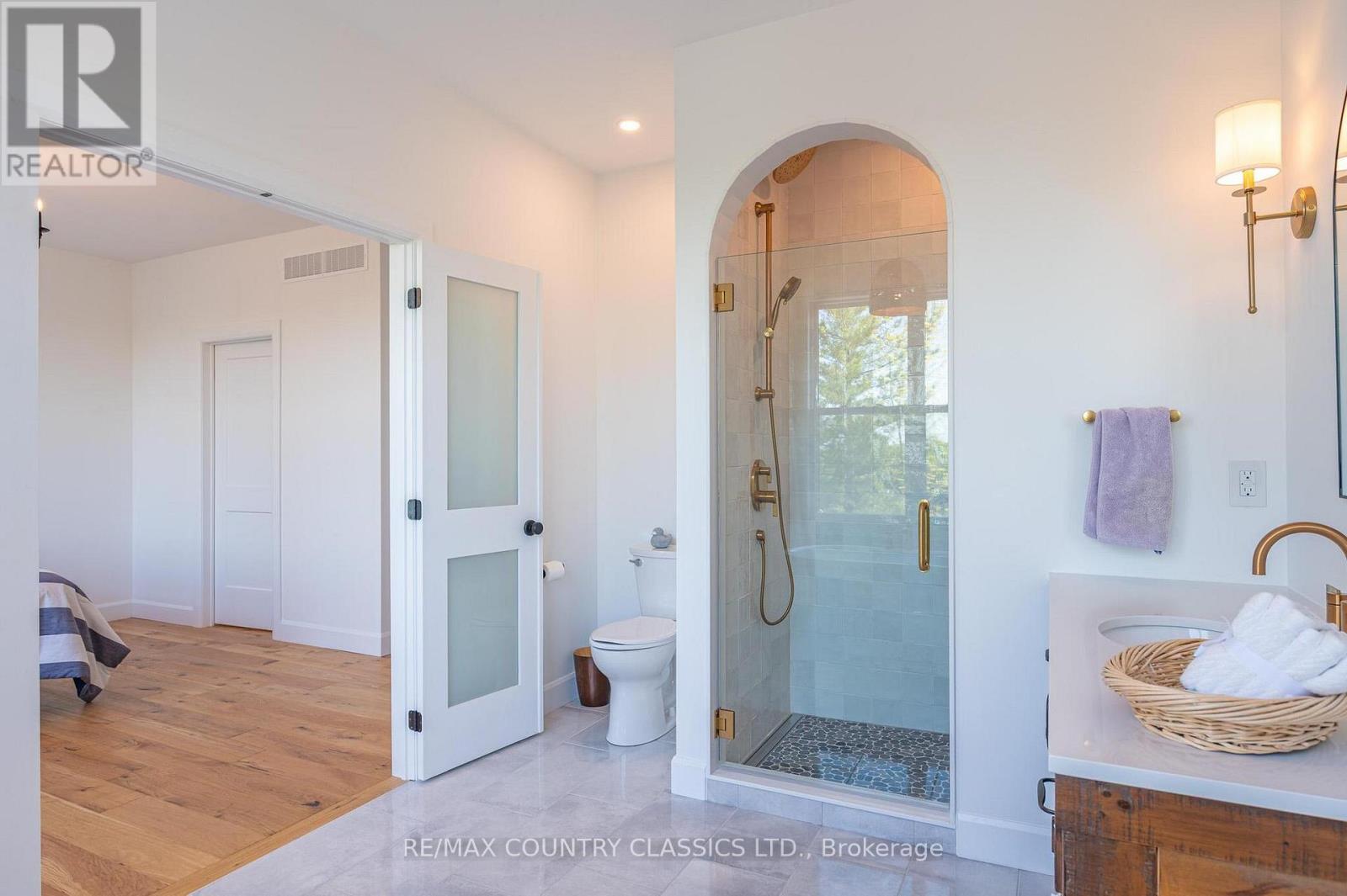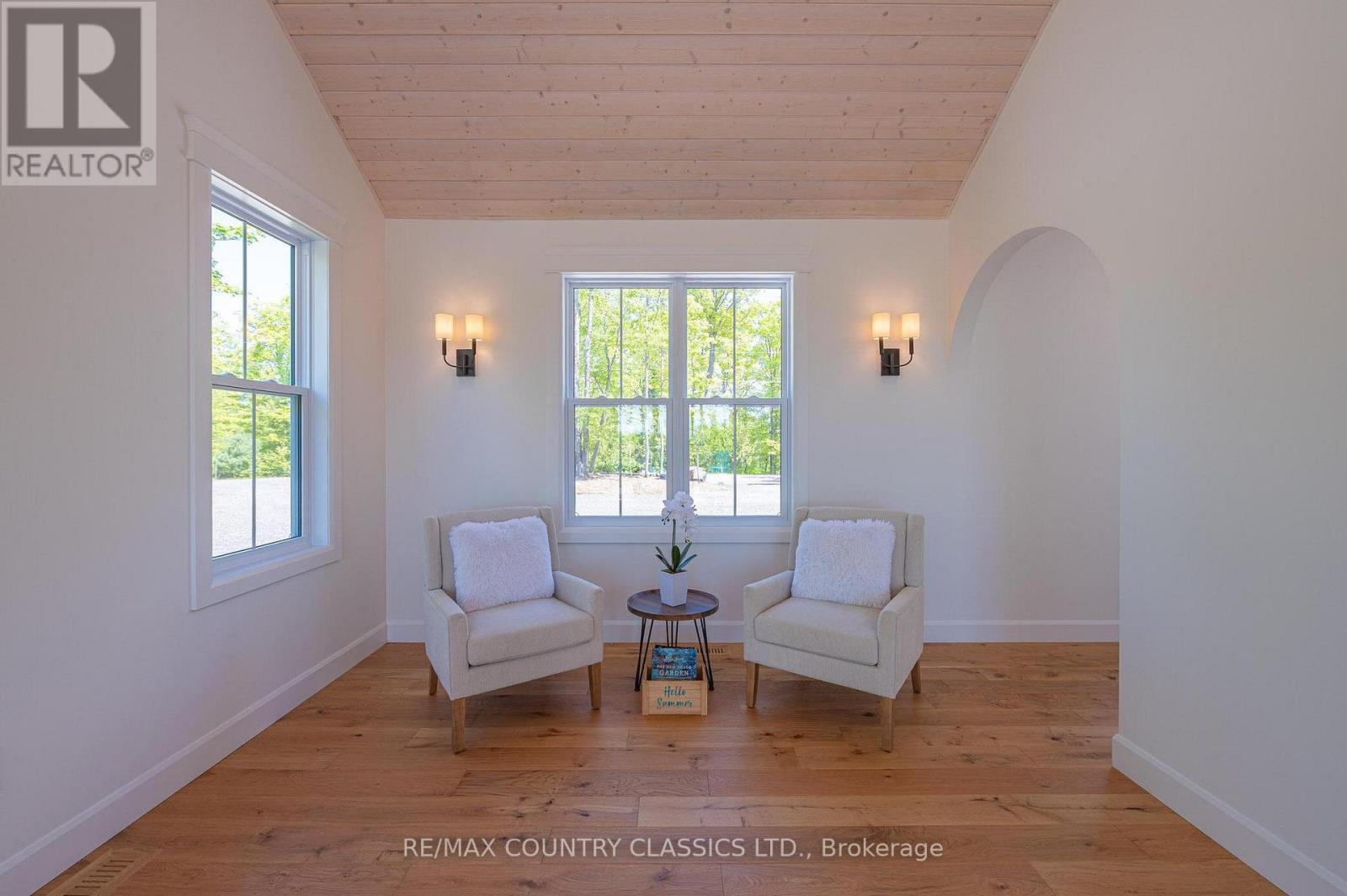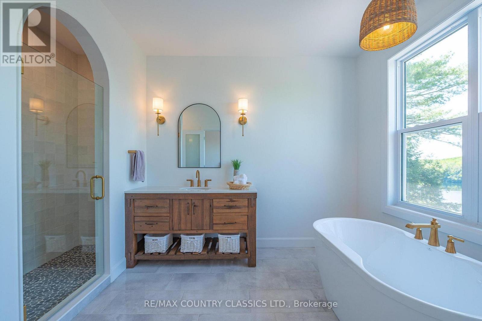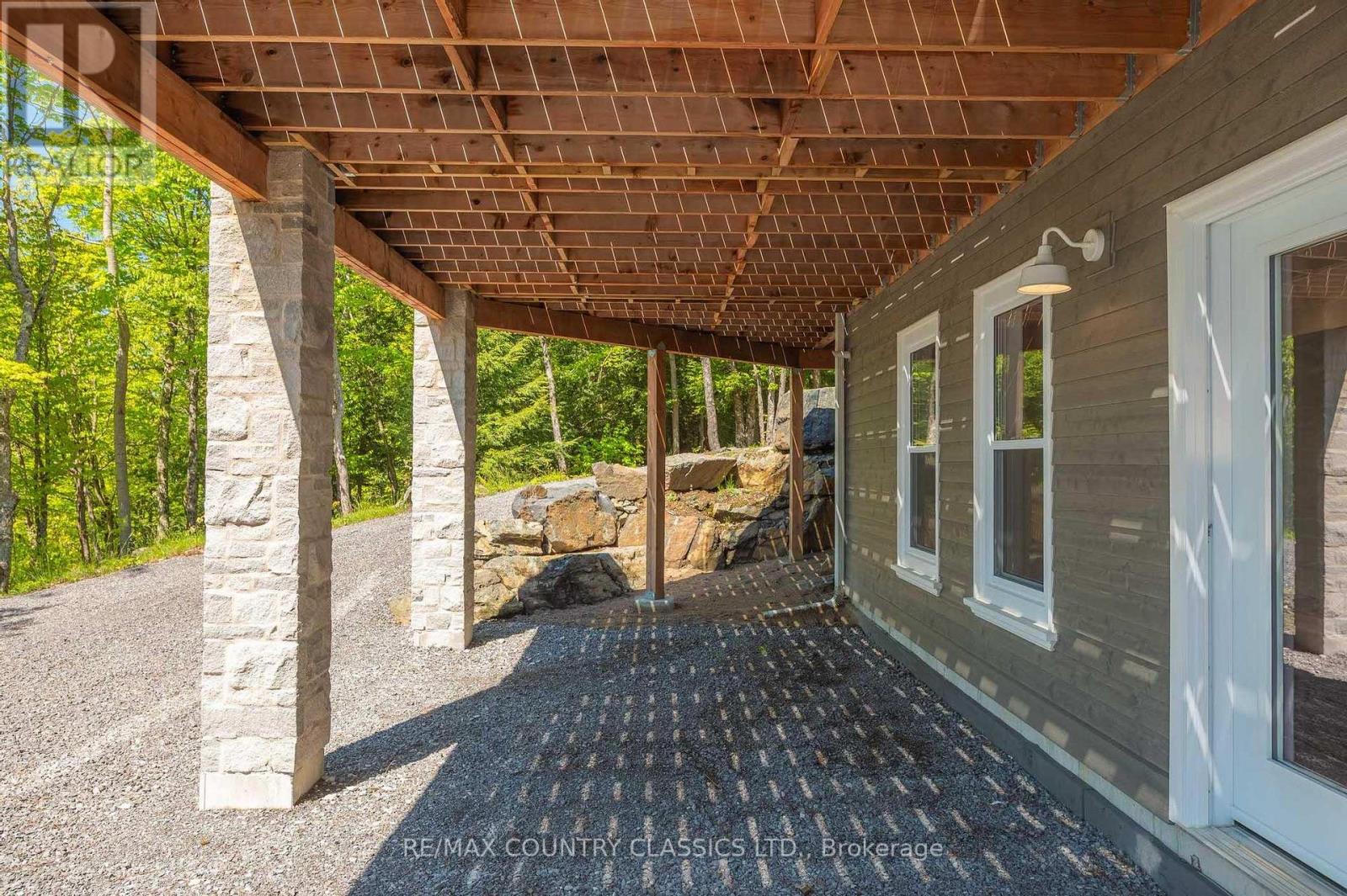 Luxury Lakeside Living at Chandos Lake Estates. Welcome to your dream retreat on the pristine shores of Chandos Lake. Nestled within the exclusive Chandos Lake Estates, this brand-new five-bedroom home offers the perfect blend of modern elegance and natural beauty. Perched on an elevated lot, the property boasts breathtaking panoramic views of the lake, with expansive windows and multiple outdoor living spaces designed to capture every sunrise and sunset. The thoughtfully designed layout features spacious, light-filled interiors, high-end finishes, and seamless indoor-outdoor flow--ideal for both entertaining and quiet relaxation. The gourmet kitchen opens to a grand living area with vaulted ceilings and a stone fireplace, while the primary suite offers a private sanctuary with lake views, a spa-inspired ensuite, and walk-in closet. Four additional bedrooms provide ample space for family and guests. Step outside to enjoy excellent waterfront access, complete with a private dock, deep swimming water, and plenty of space for boating and lakeside activities. Whether you're hosting summer gatherings or enjoying peaceful mornings by the water, this property delivers an unparalleled lakeside lifestyle. Located just minutes from local amenities yet surrounded by nature, this is a rare opportunity to own a slice of paradise in one of North Kawartha's most sought-after communities. (id:64974)