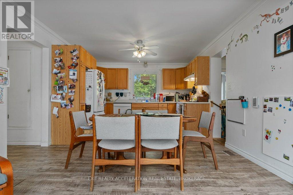 Along the Napanee River waterfront sits this all-brick bungalow that offers a warm and welcoming place to call home. The main level features two bedrooms, including a primary suite complete with its own four-piece ensuite. A bright sitting area off the kitchen opens onto a spacious deck, where you can enjoy views of the large backyard and the peaceful river beyond. The lower level expands the living space with three additional bedrooms, a full four-piece bathroom, and a generous family and recreation room that is perfect for entertaining, hobbies, or movie nights. A walkout from this level provides direct access to the backyard and riverfront. The attached one-car garage includes convenient inside entry to the front foyer, while a 16 x 24 workshop adds even more versatility, offering space for projects, a drive shed for yard equipment, or secure storage for your boat with large access doors at both ends. Located close to schools, the hospital, and other amenities, this riverfront property combines comfort, function, and an enviable setting. (id:64974)