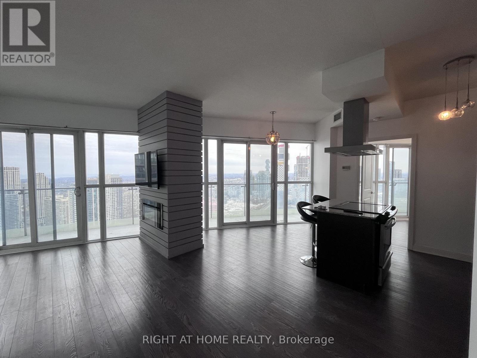 Location, Location, Location! Experience luxury living at the iconic Marilyn Monroe Condos in the heart of Mississauga. This bright and spacious 2-bedroom, 2-bathroom suite features an open-concept layout with granite countertops, stainless steel appliances, floor-to-ceiling windows, and a wraparound balcony showcasing unobstructed panoramic views of the city. The unit also boasts laminate flooring throughout, a fresh new paint job, and custom feature wall with Fireplace and TV. The open and airy layout makes entertaining a breeze while enjoying balcony access from the living room and both bedrooms. This building is located in the heart of it all steps to the upcoming HURONTARIO LRT, Square One Shopping Centre, restaurants, and much much more. (id:64974)