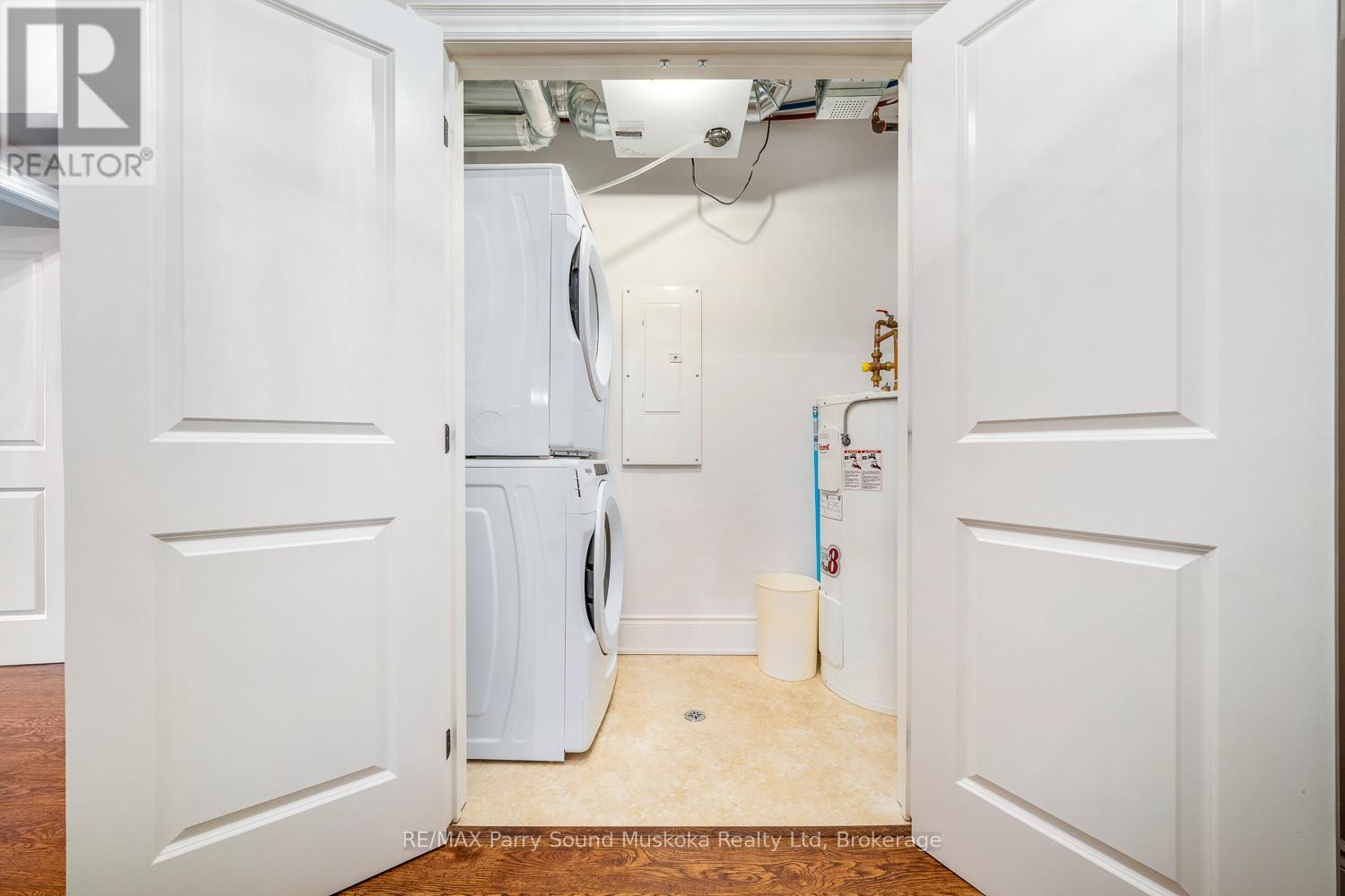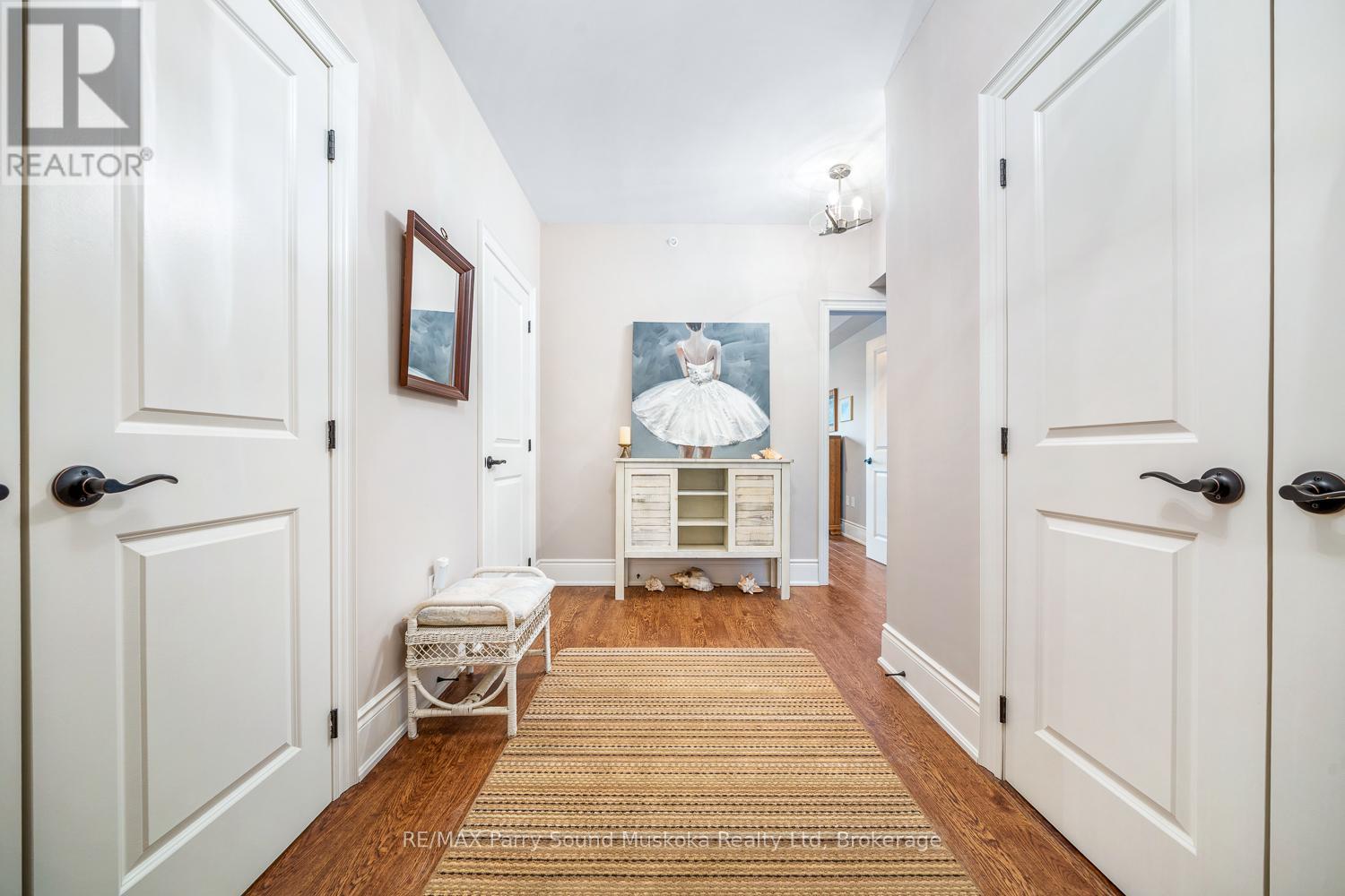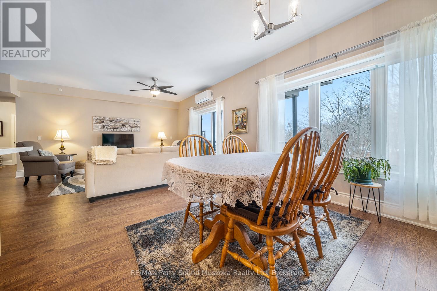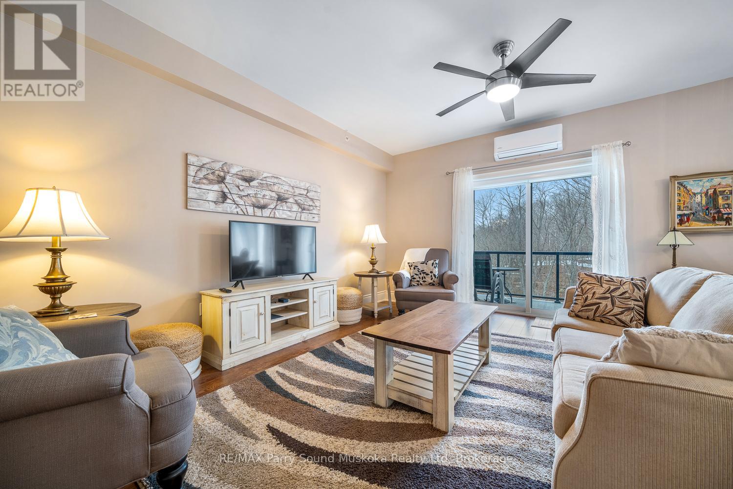 Easy, low-maintenance living with this well-appointed 2-bedroom, 2-bathroom "The Keystone's" condo offering 1,156 square feet of thoughtfully designed space. Inside, the layout offers a comfortable flow between living, dining, and kitchen areas, ideal for both everyday living and hosting guests. The two full bathrooms add convenience and flexibility, while the generous primary suite serves as a relaxing retreat. Year-round comfort is ensured with an in-floor radiant heating system powered by natural gas, as well as air conditioning throughout the unit. Situated to capture beautiful views of Georgian Bay, the private balcony provides the perfect setting to unwind, entertain, or simply take in the ever-changing scenery. In-suite laundry, elevator access, underground parking, and an exclusive storage unit all make this unit carefree living. Whether you're looking to downsize, invest, or enjoy a carefree lifestyle close to the water, this condo offers a great combination of space, comfort, and scenic surroundings in one of Parry Sound's most desirable waterfront communities. (id:64974)