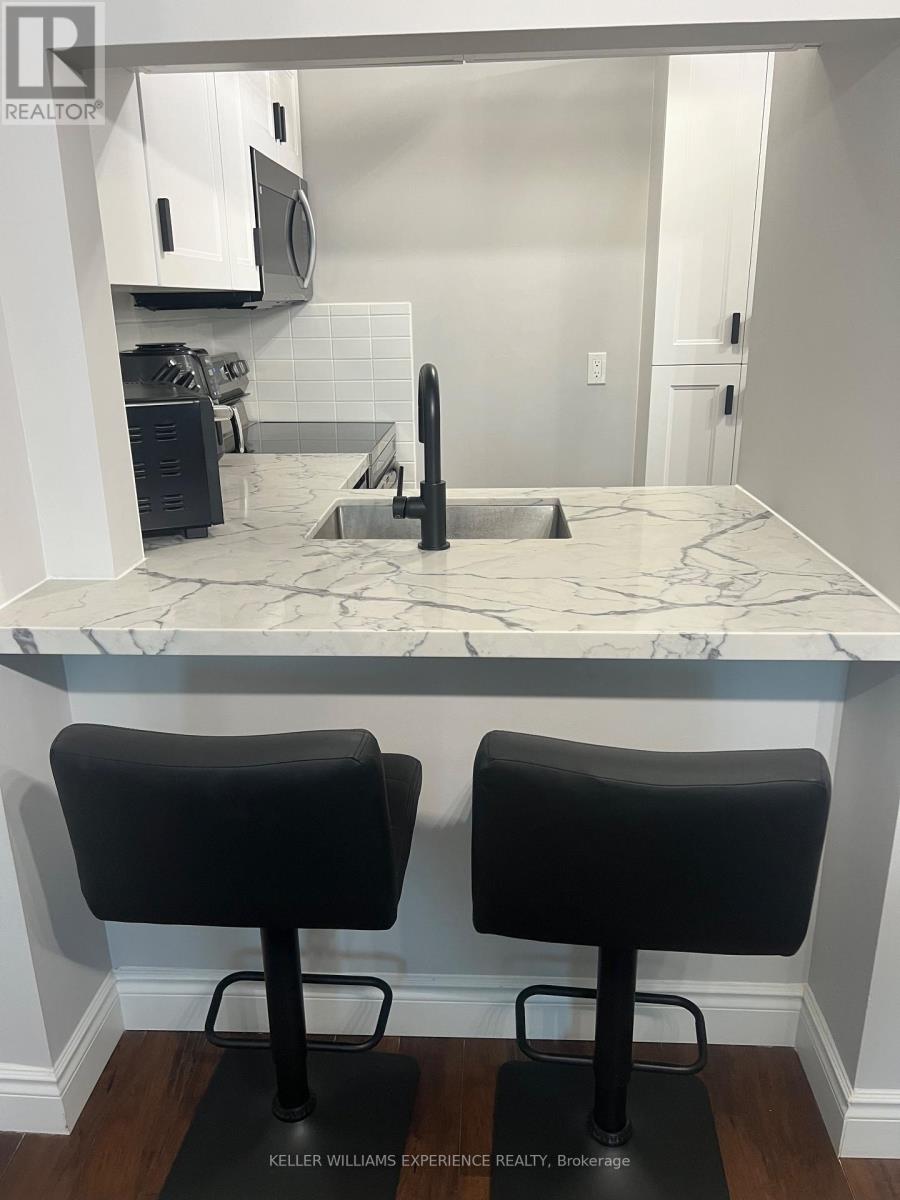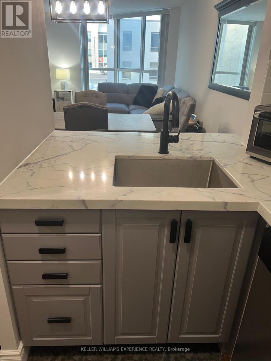 TURN-KEY recently renovated condo ideally located downtown Barrie, steps to the sparkling waterfront. Full size stainless steel fridge, stove and SS microwave and dishwasher. New kitchen cabinets and pantry, quartz countertops and an open concept eating area with under-mount sink. In suite laundry and a modern renovated bathroom featuring sizeable quartz counter space and under-mount sink. This condo boasts large windows in the main area and also in the primary bedroom. Additional conveniences include underground parking, a storage locker and access to impressive building amenities such as an indoor pool, sauna, hot tub, exercise room, party room, and library/game room. The area offers many independently, owned shops and boutiques, delectable, restaurants, trendy bars, vivacious waterfront and many parks and trails. (id:64974)